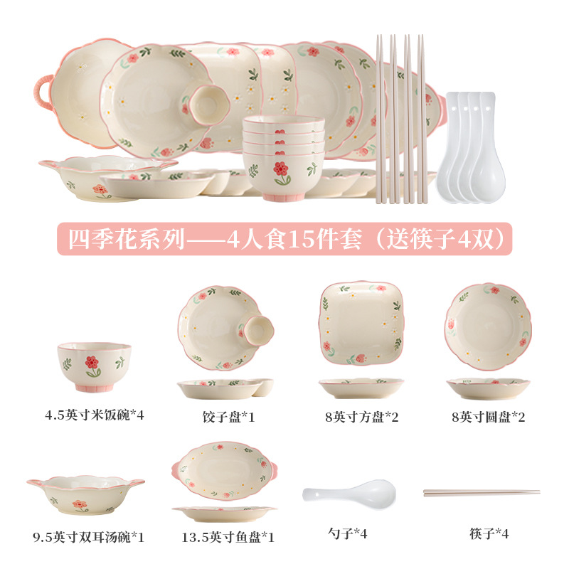 • 4인용 15개 세트에는 젓가락 4쌍이 포함되어 있습니다. [고온 언더글레이즈 색상, 파손시 보상, 무료 재발급]