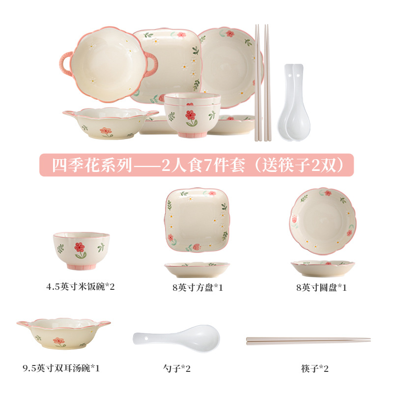 • 2인용 7종 세트에는 젓가락 2쌍이 포함되어 있습니다. [고온 언더글레이즈 색상, 파손시 무료 재발급]