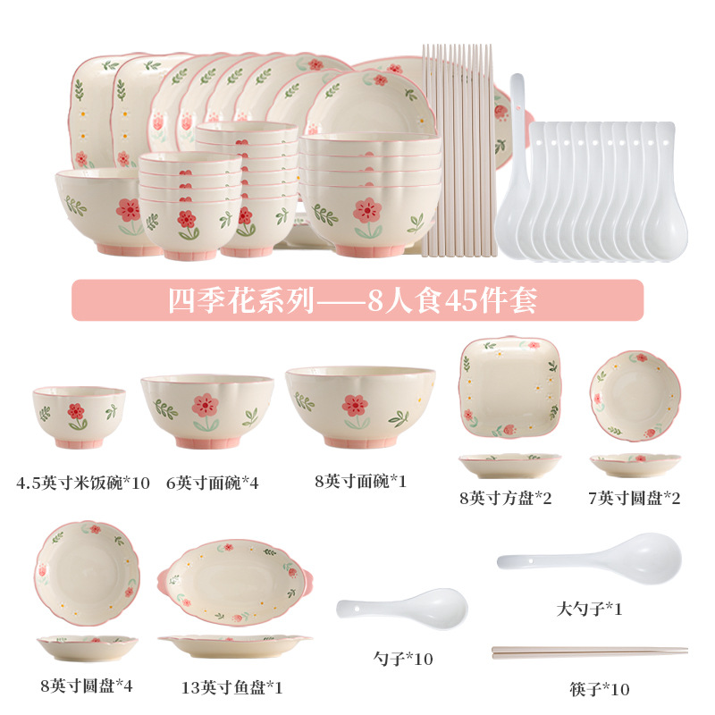 • 8인분 45개 세트 [고온 언더글레이즈 컬러, 파손시 보상 보장, 무상 재발행]