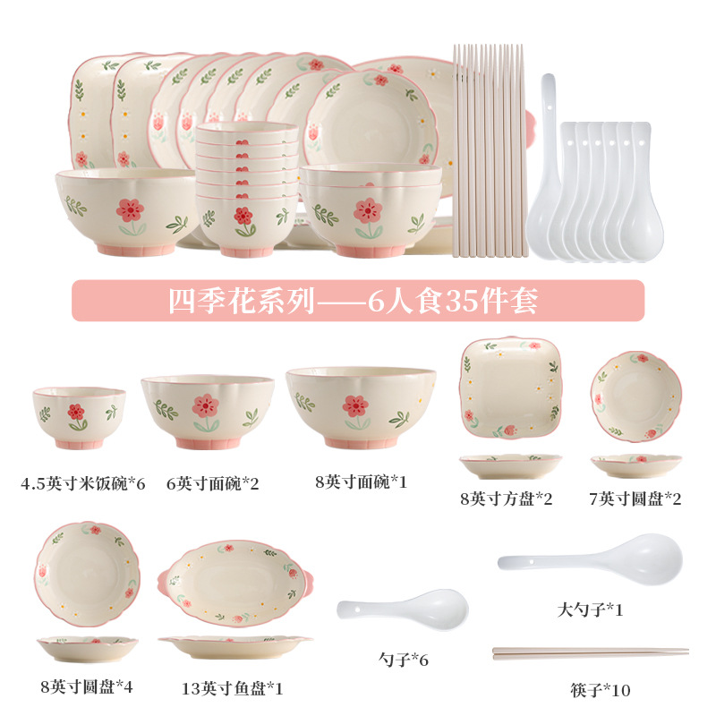 • 6인용 35개 세트 [고온 언더글레이즈 색상, 파손시 보상, 무료 재발행]