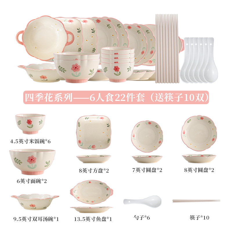 • 6인용 22개 세트에는 젓가락 10쌍이 포함되어 있습니다. [고온 언더글레이즈 색상, 파손 시 무료 교체 보장]