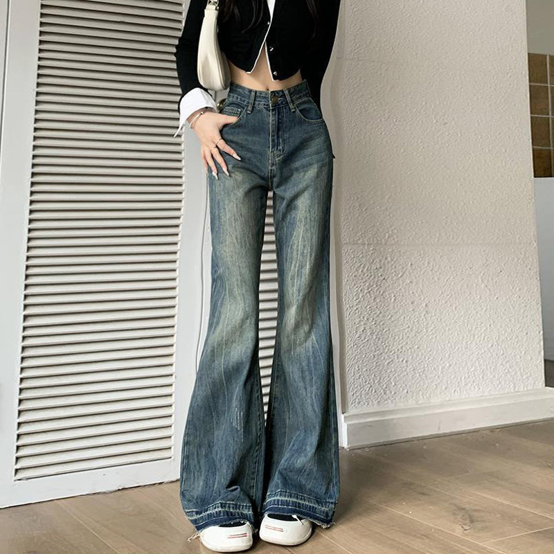 여성용 로우 엣지 플레어 청바지, 아메리칸 디자인, 플러스 사이즈, 슬림핏, 뚱뚱한 mm 말굽 바지, 스트레이트 하이웨이스트 마이크로 플레어 팬츠스토어 가기