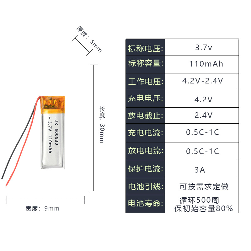 리튬 배터리 500930 폴리머 리튬 배터리 110mAh 미용 기기 리튬 배터리 블루투스 스피커 충전식 배터리