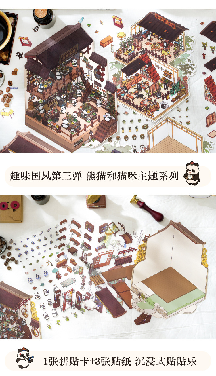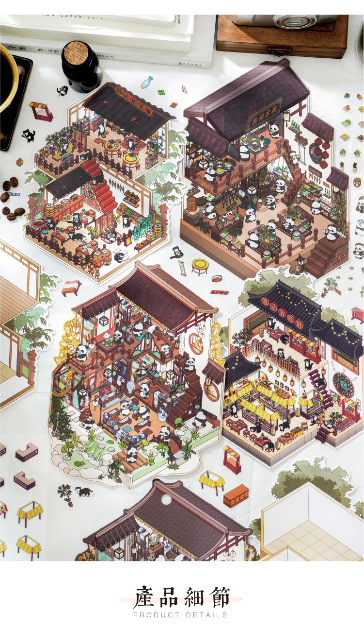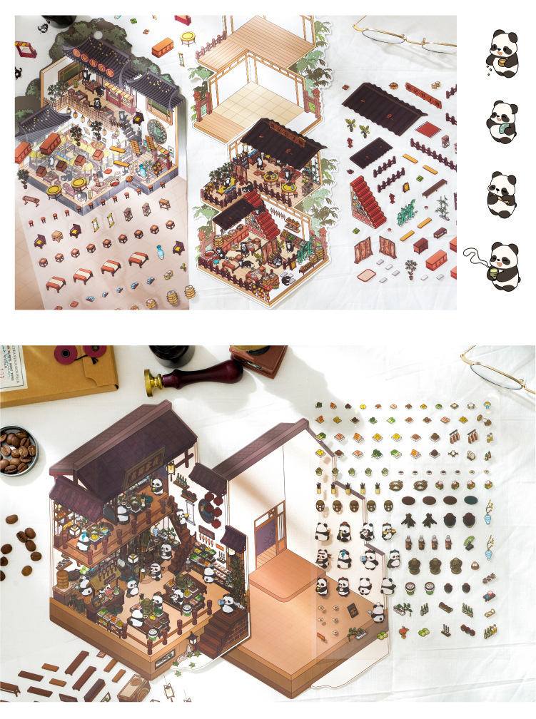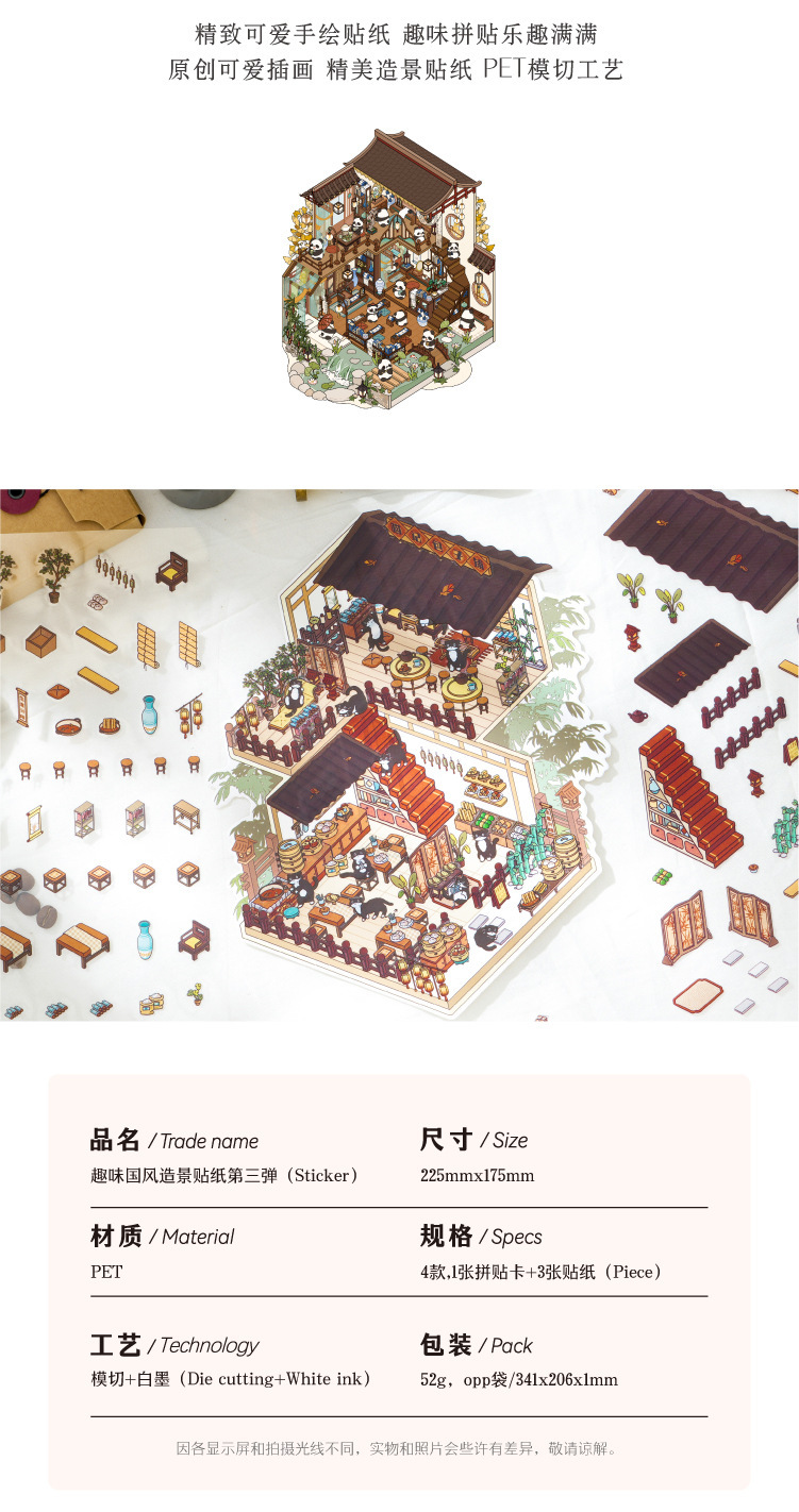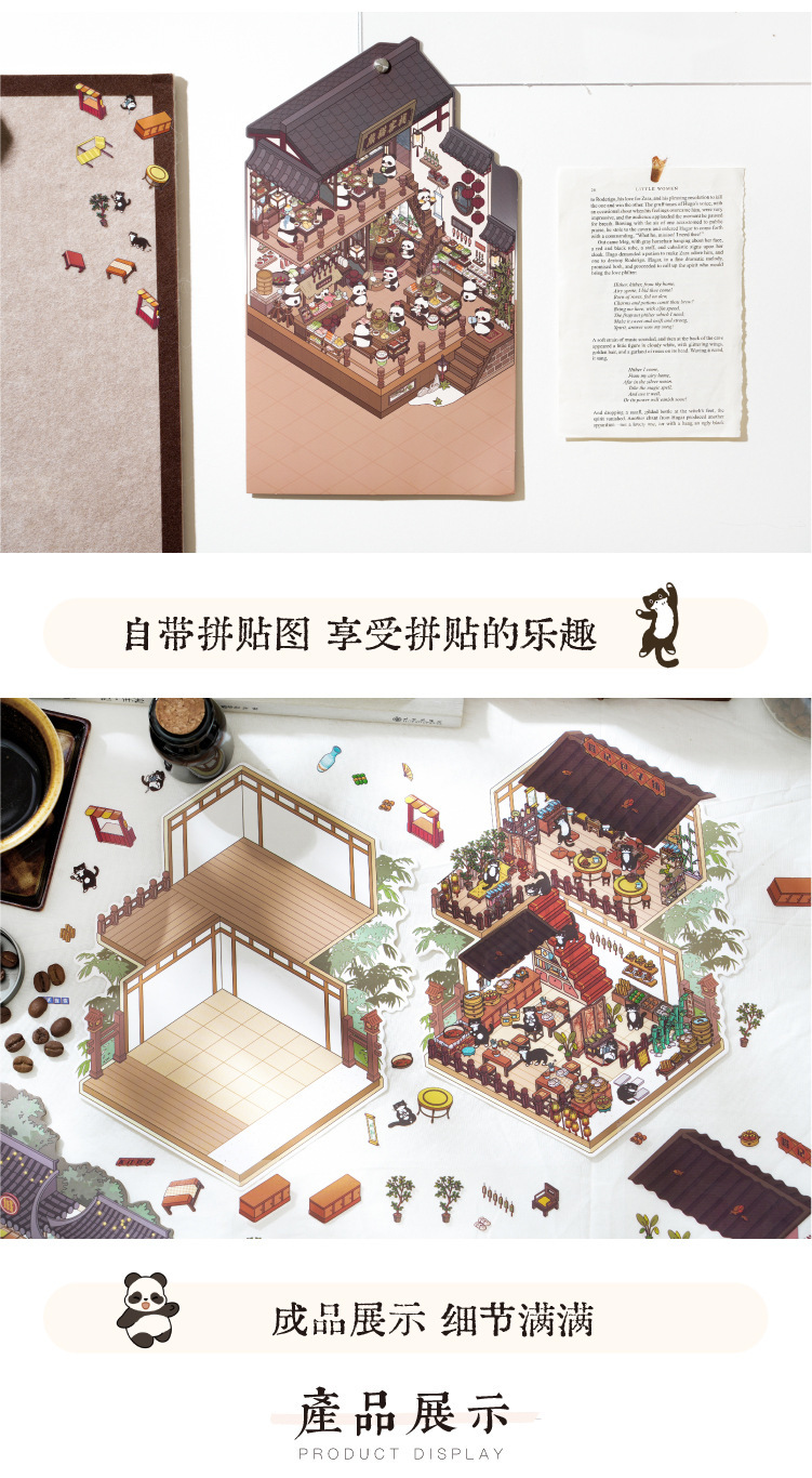 황혼의 미니어처 2 층 조경 스티커 흥미로운 국가 스타일 3 폭탄 비주얼 3D 스택 3 차원 오두막 손 계정 스티커