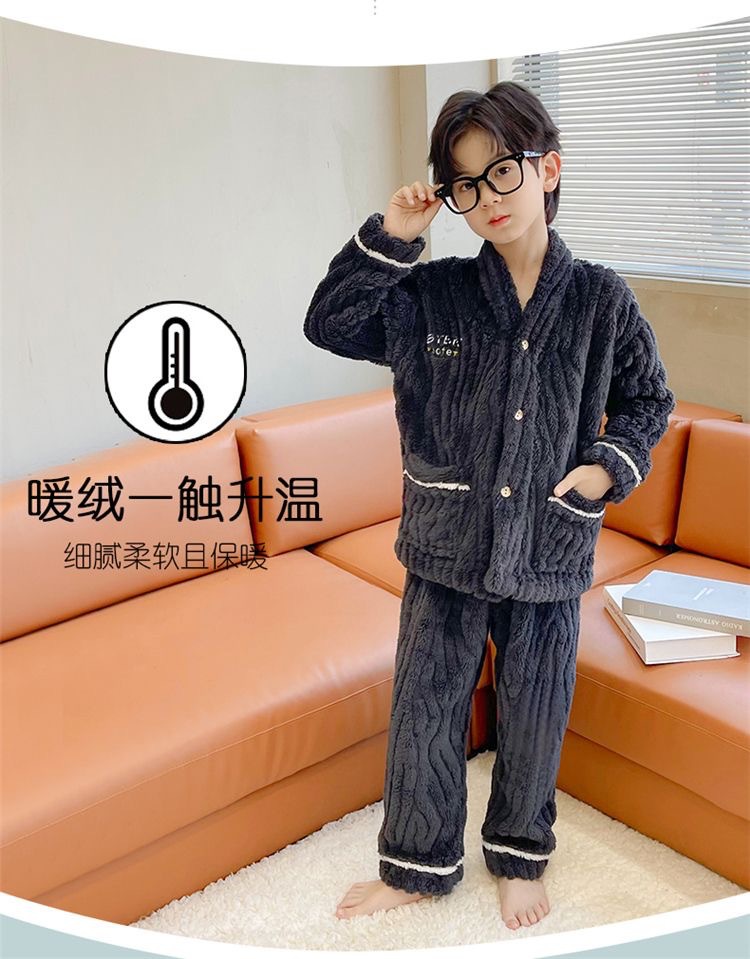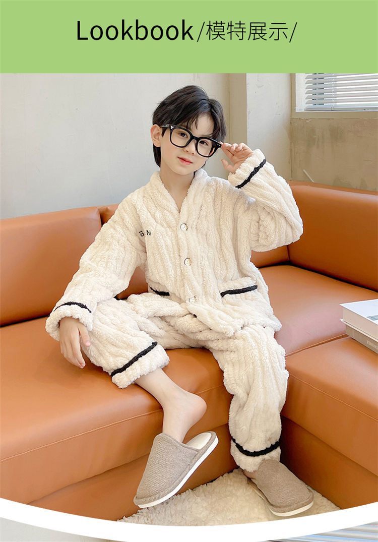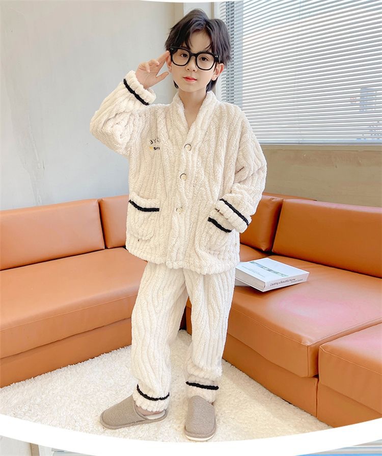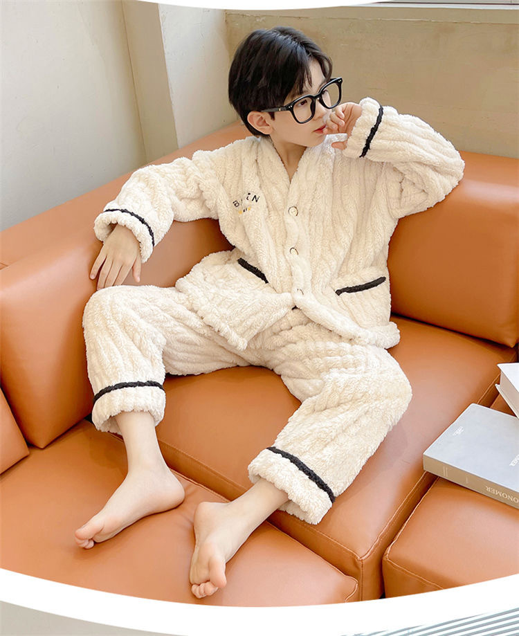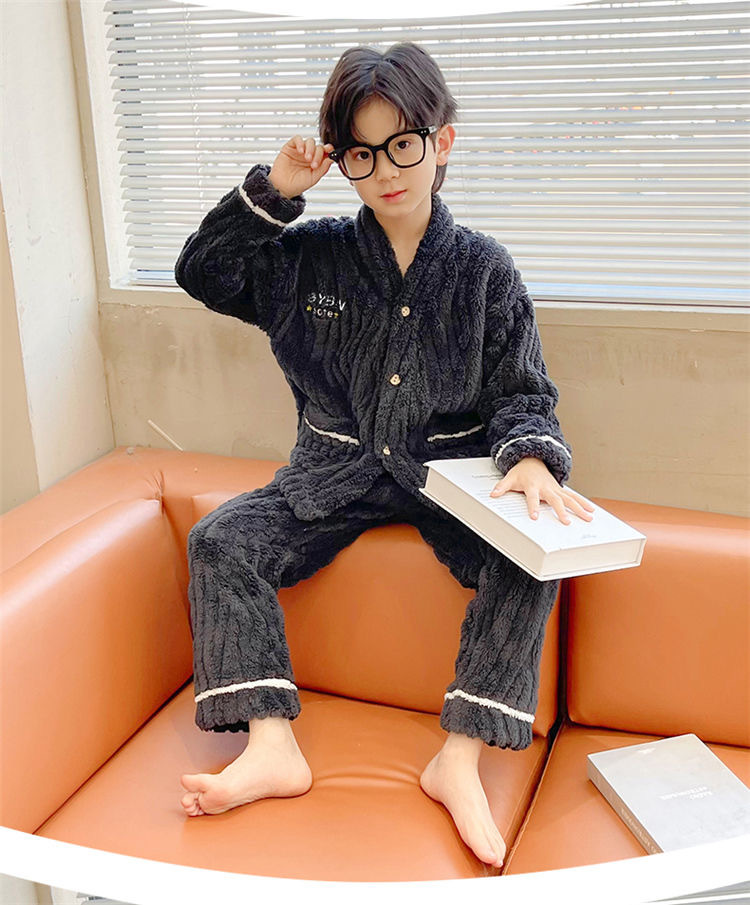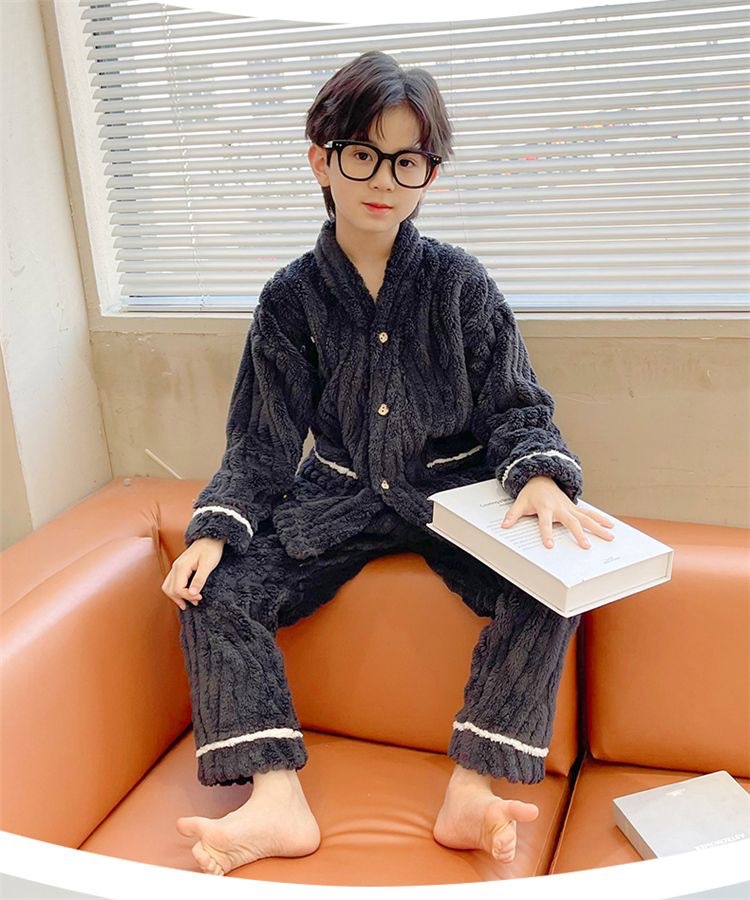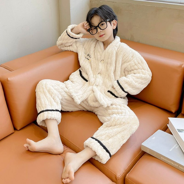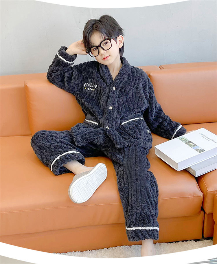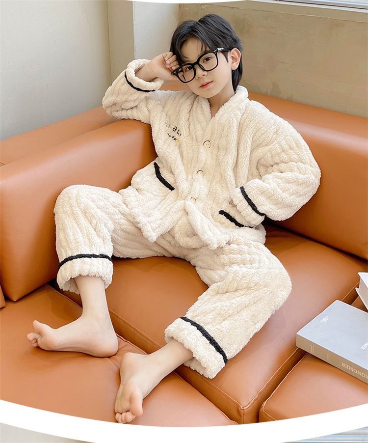 소년을위한 어린이 산호 양털 잠옷 중대형 어린이 및 어린 소년 카디건 홈 옷을 위해 두꺼운 기모 플란넬