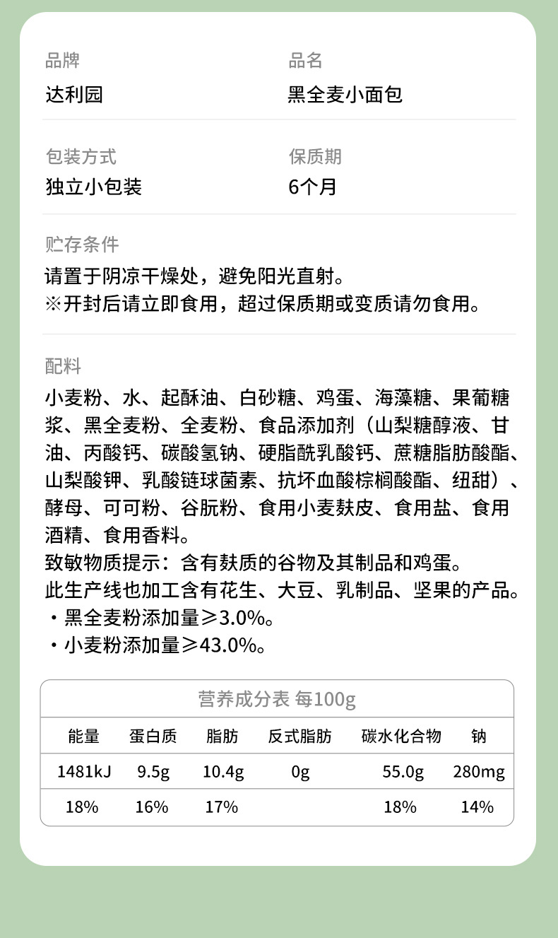 [달리 위안 호밀 빵 400g] 아침 식사 간식 서양 케이크
