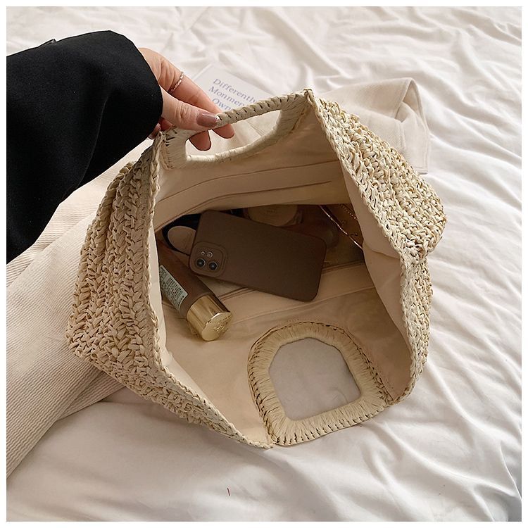 반원형 휴대용 밀짚가방, 부채꼴 손잡이 밀짚가방, 손으로 짠 가방, 다용도 달 모양 비치백, 토트백스토어 가기