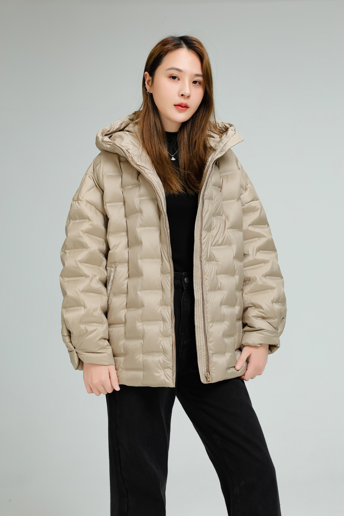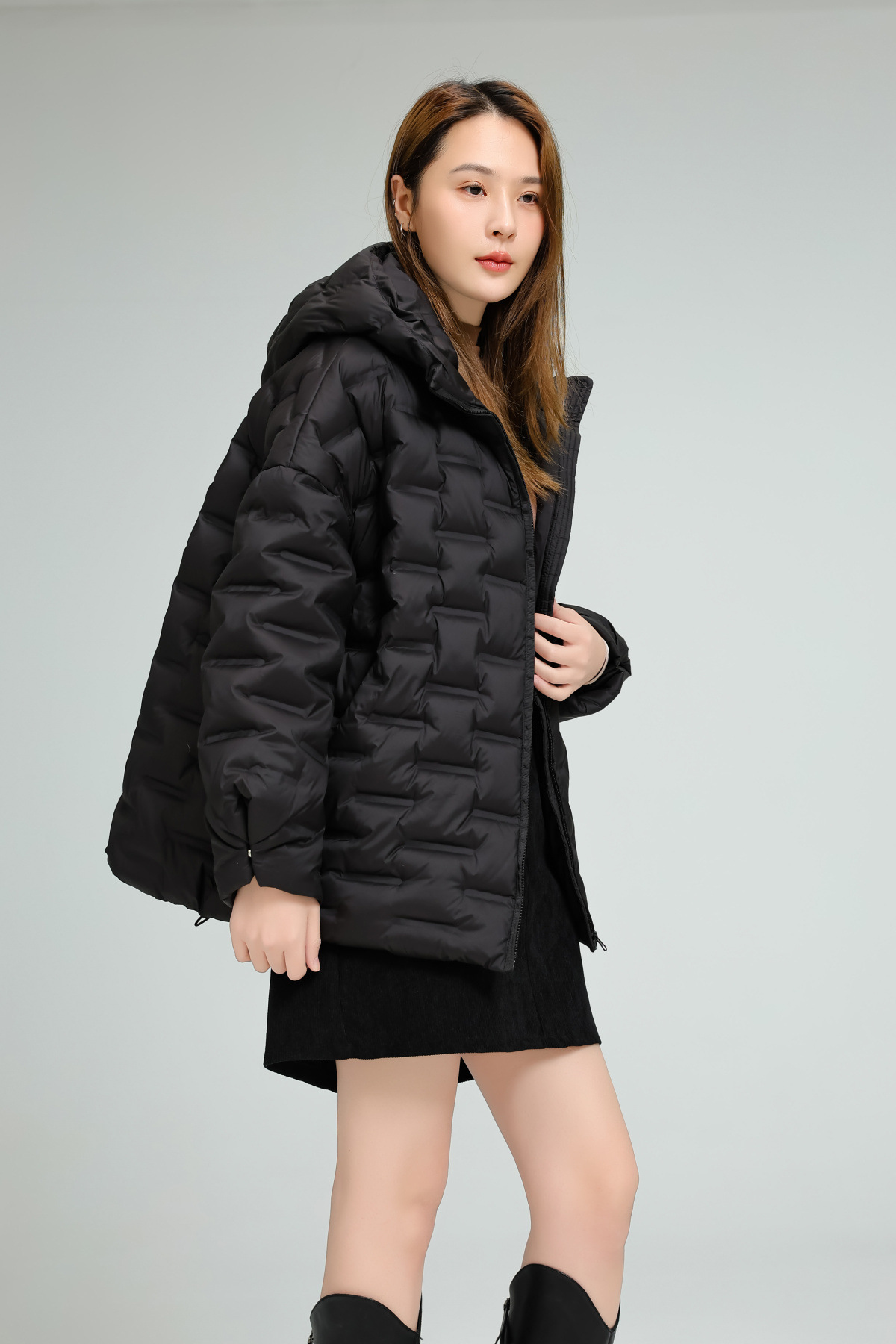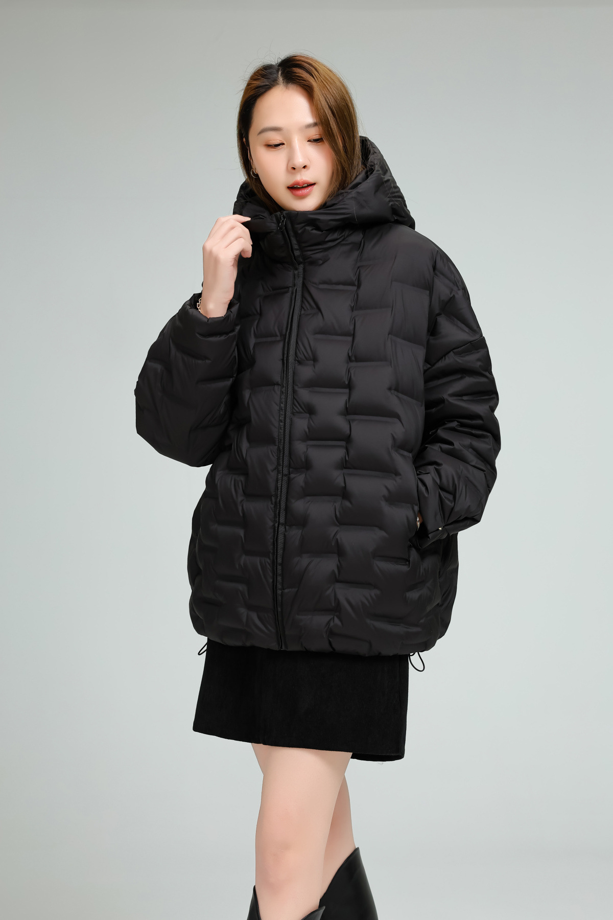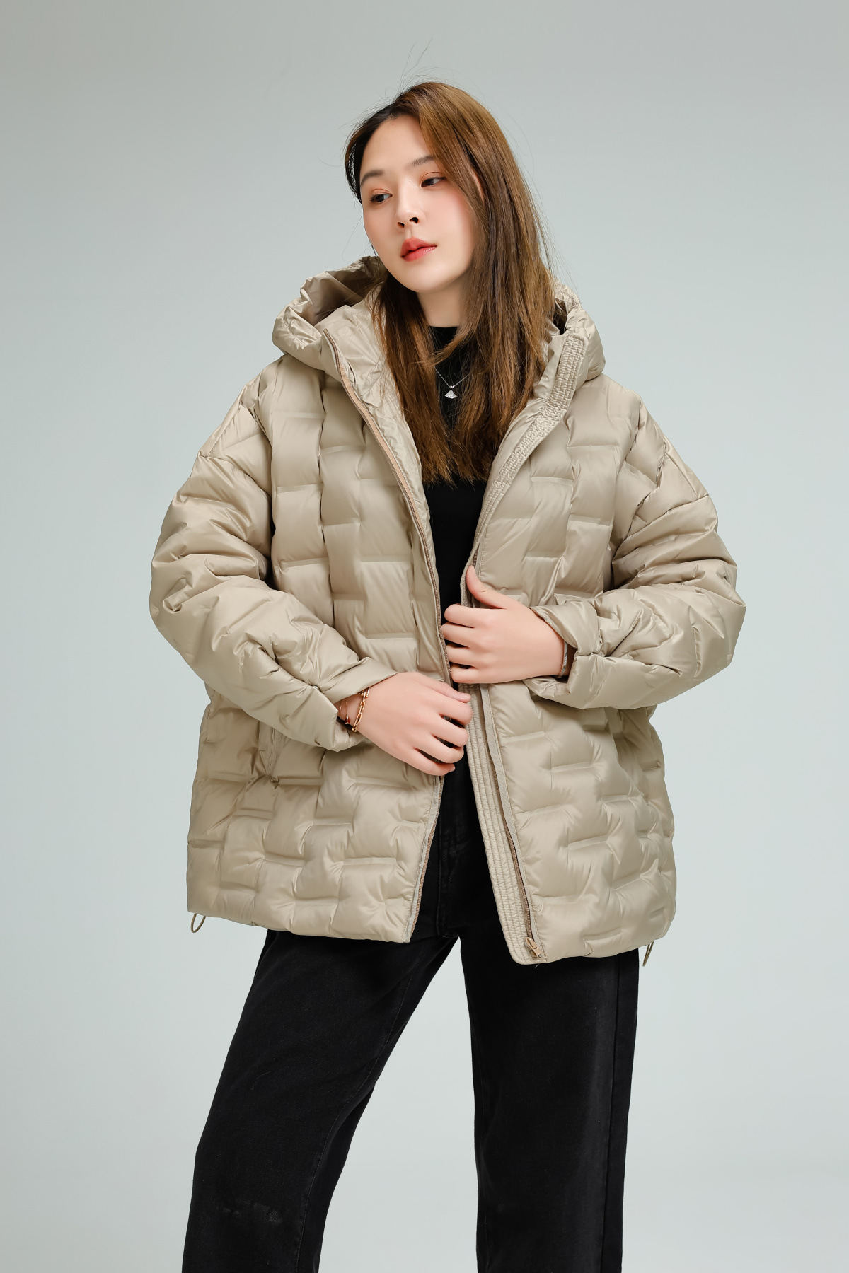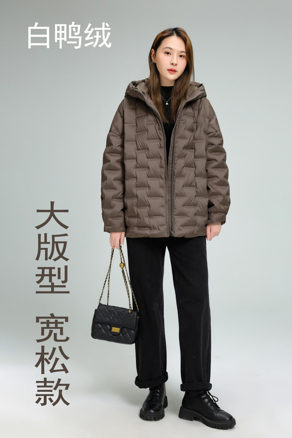2025 겨울 신상 패션 대형 사이즈 루즈핏 유럽 스타일 수출용 후드 화이트 덕다운 패딩 여성용 코트스토어 가기
