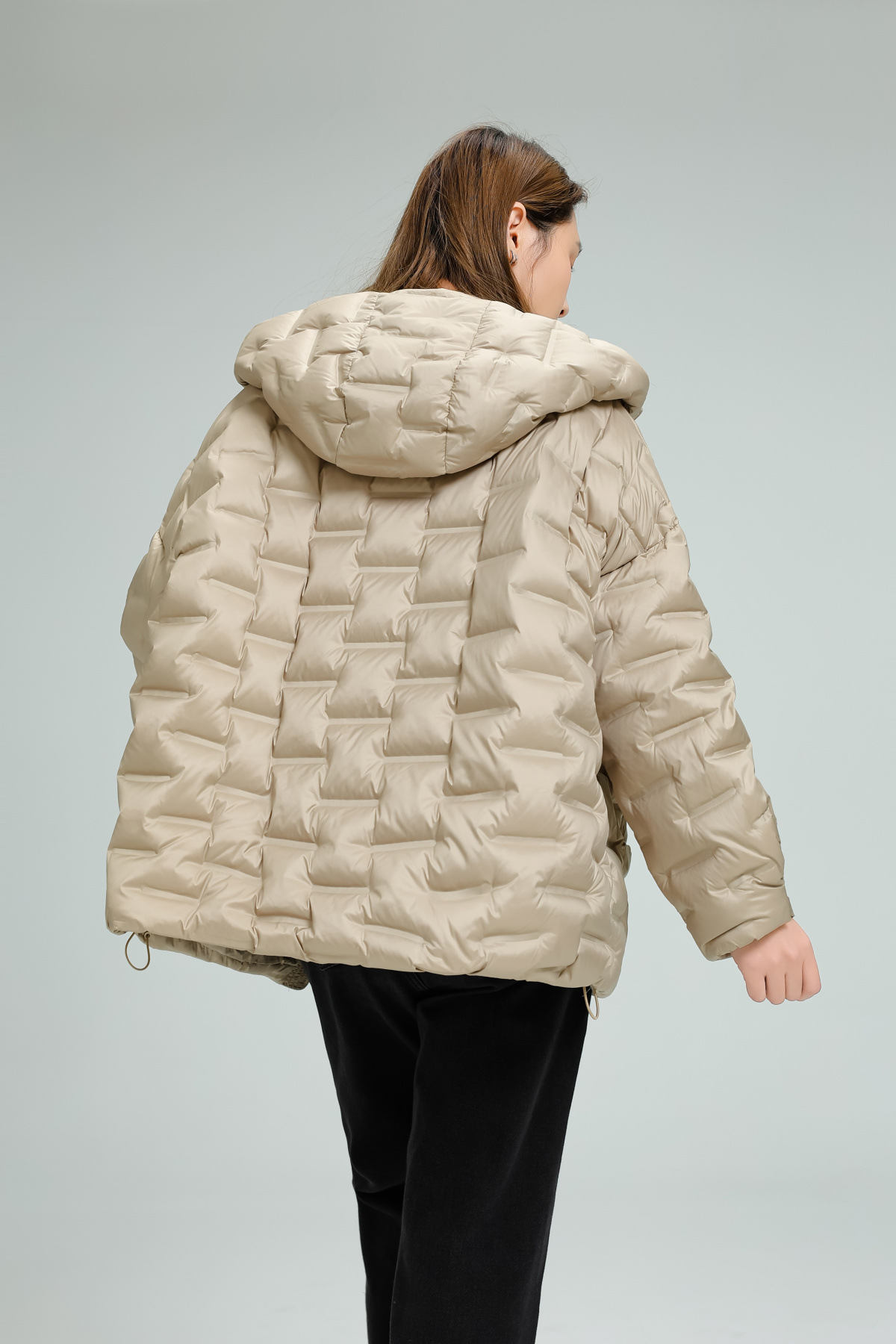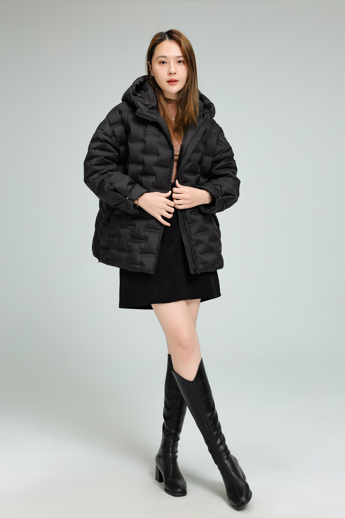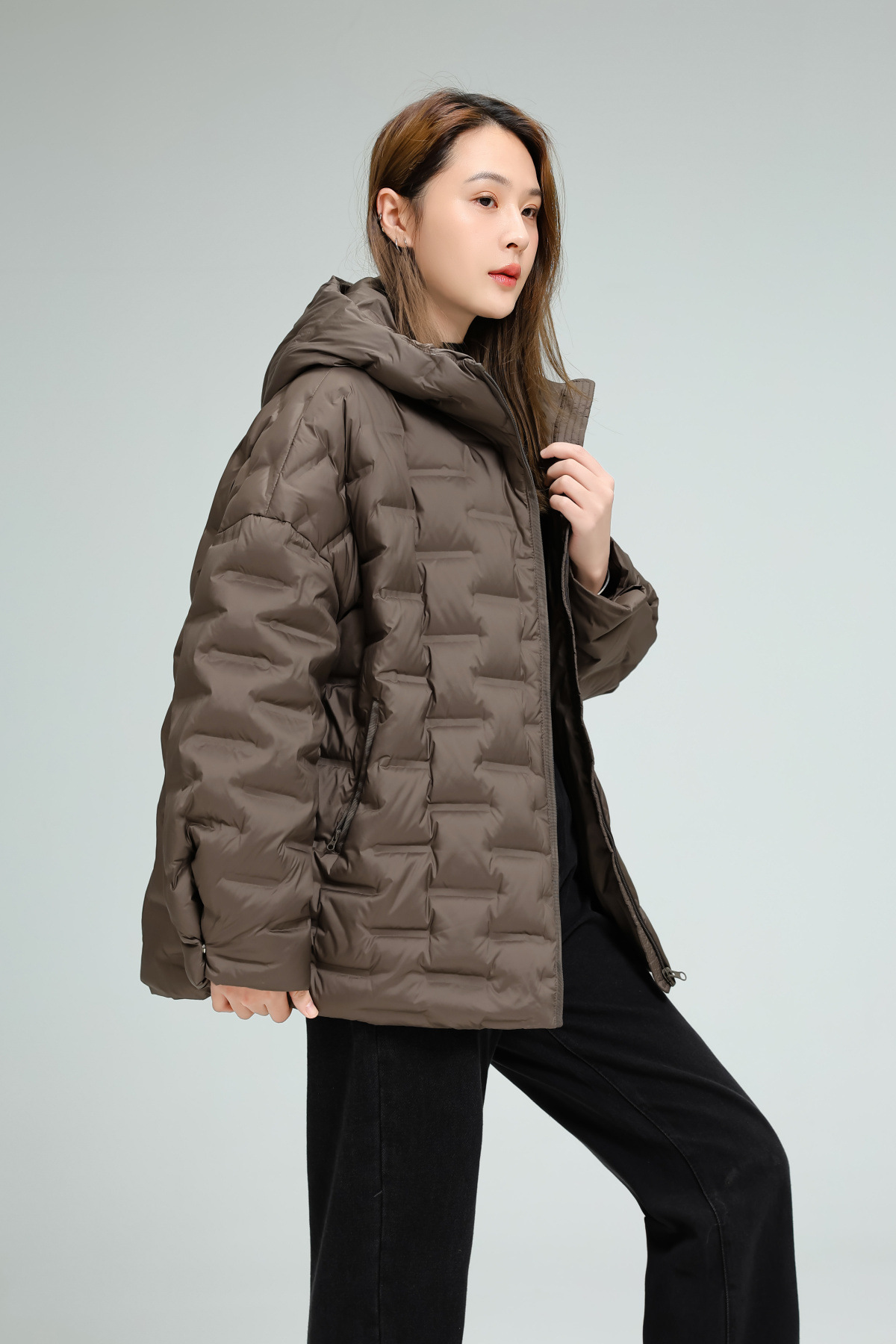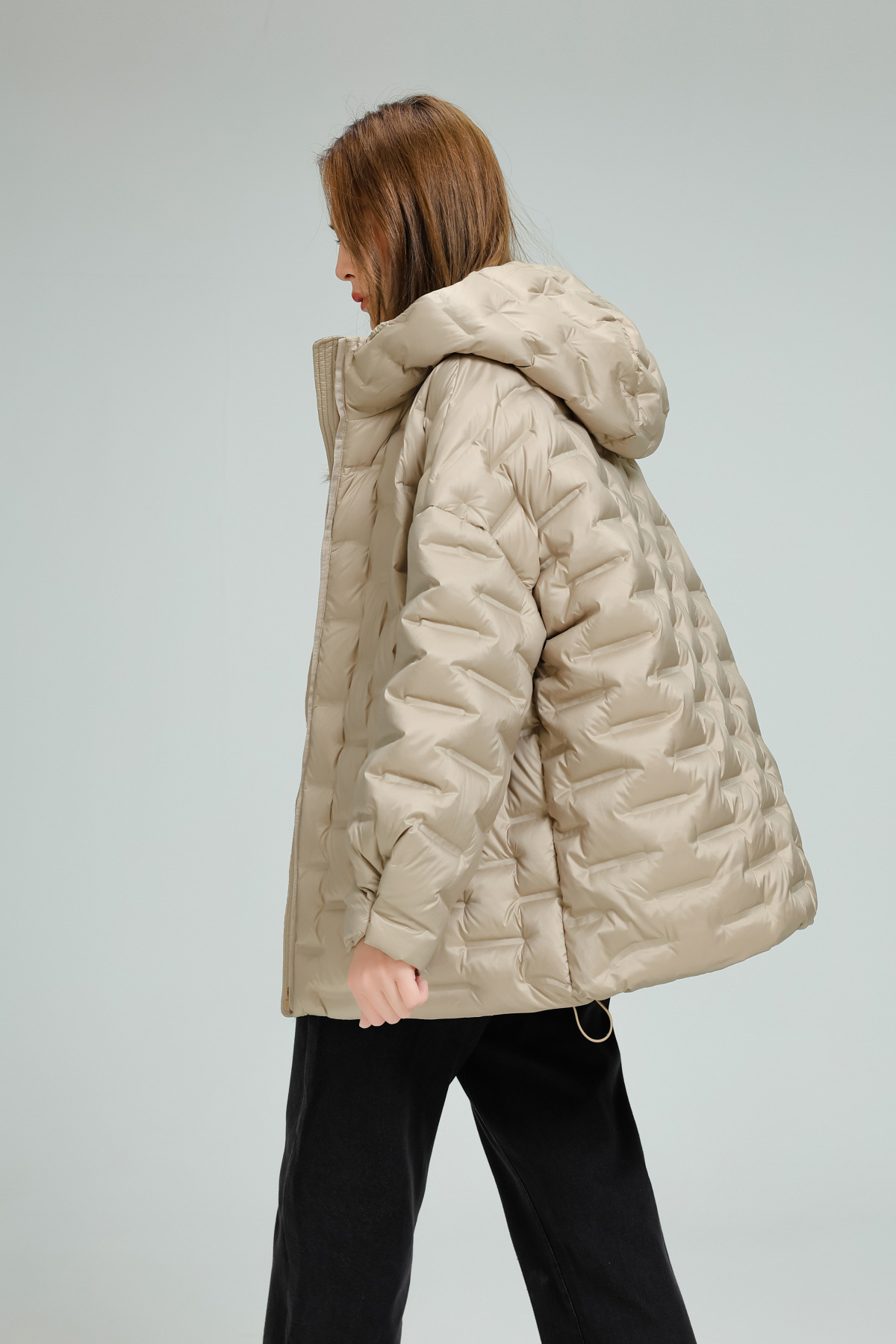 2025 겨울 신상 패션 대형 사이즈 루즈핏 유럽 스타일 수출용 후드 화이트 덕다운 패딩 여성용 코트스토어 가기
