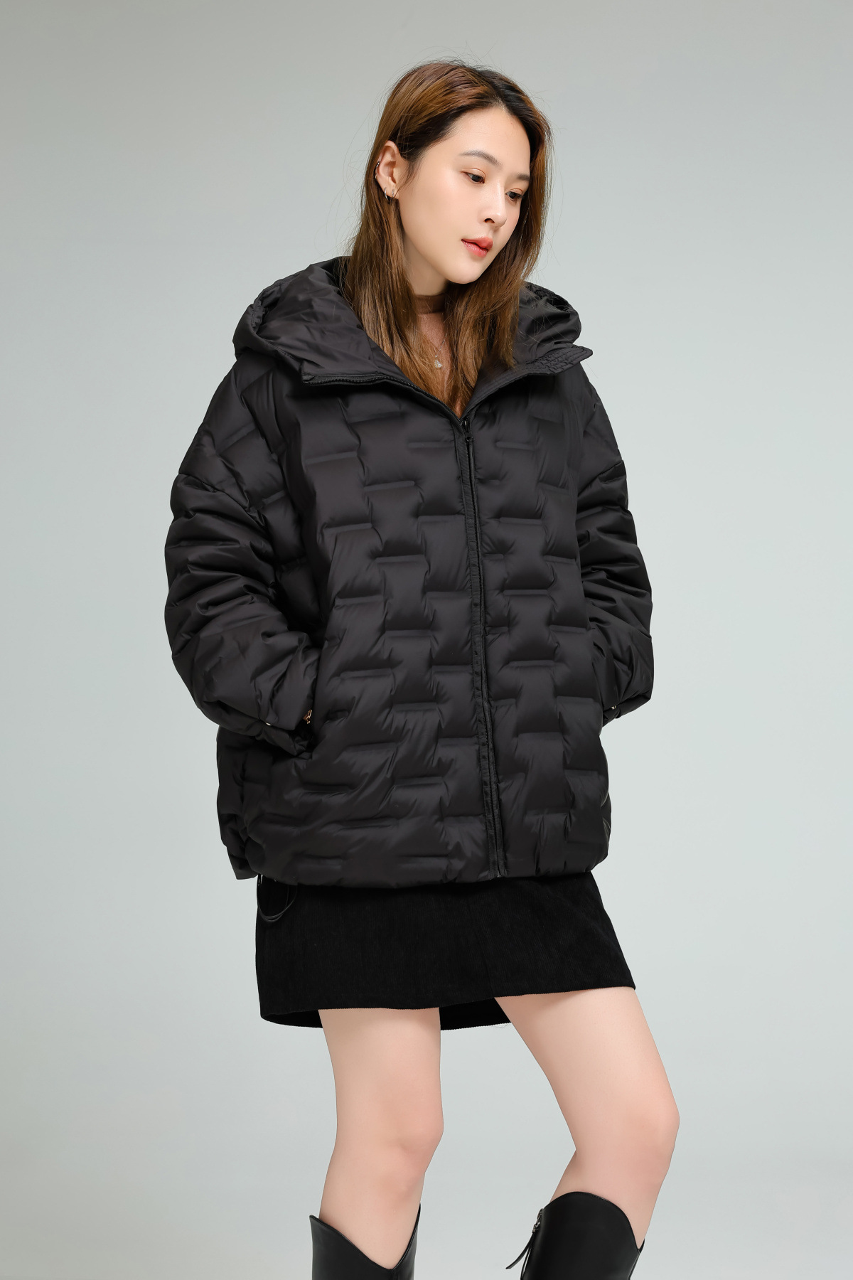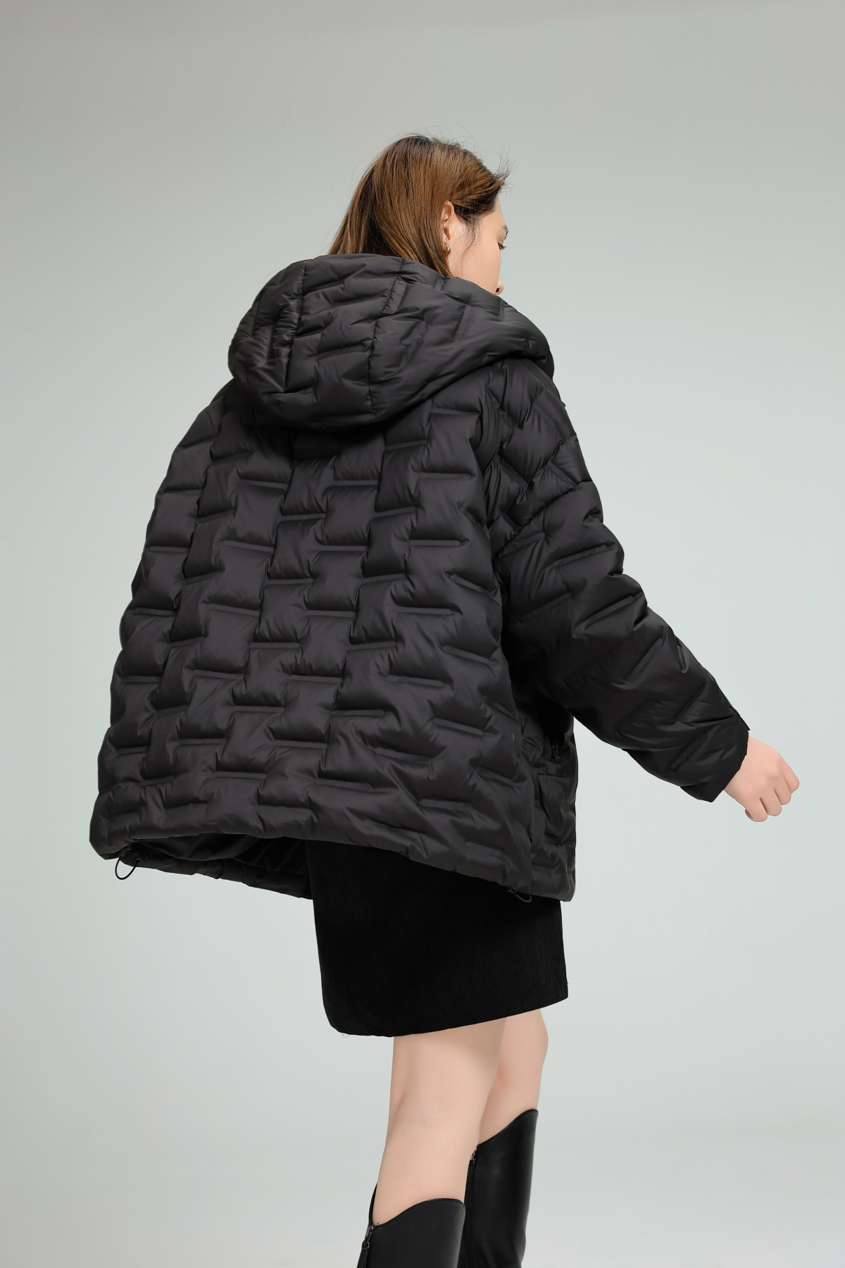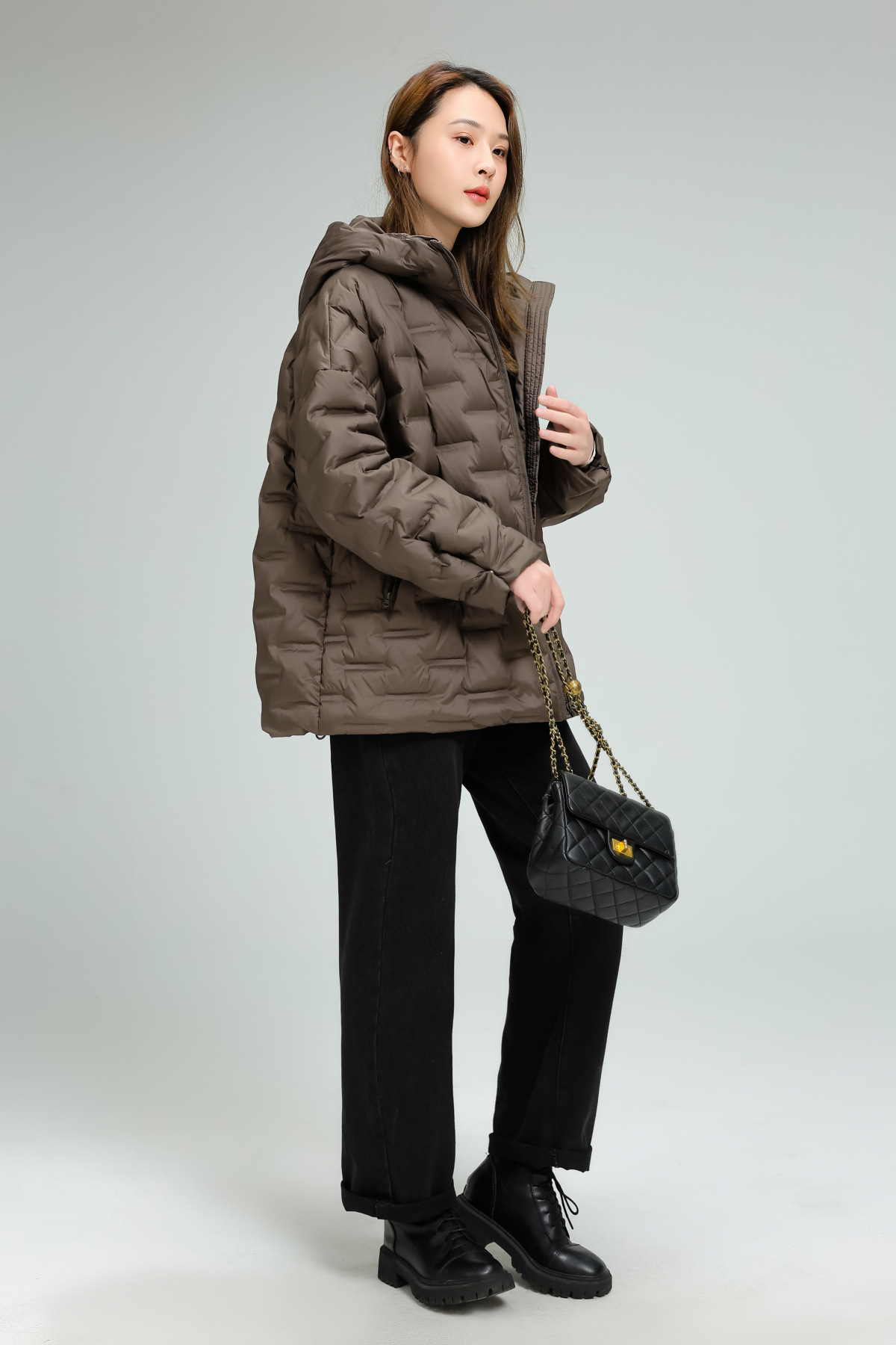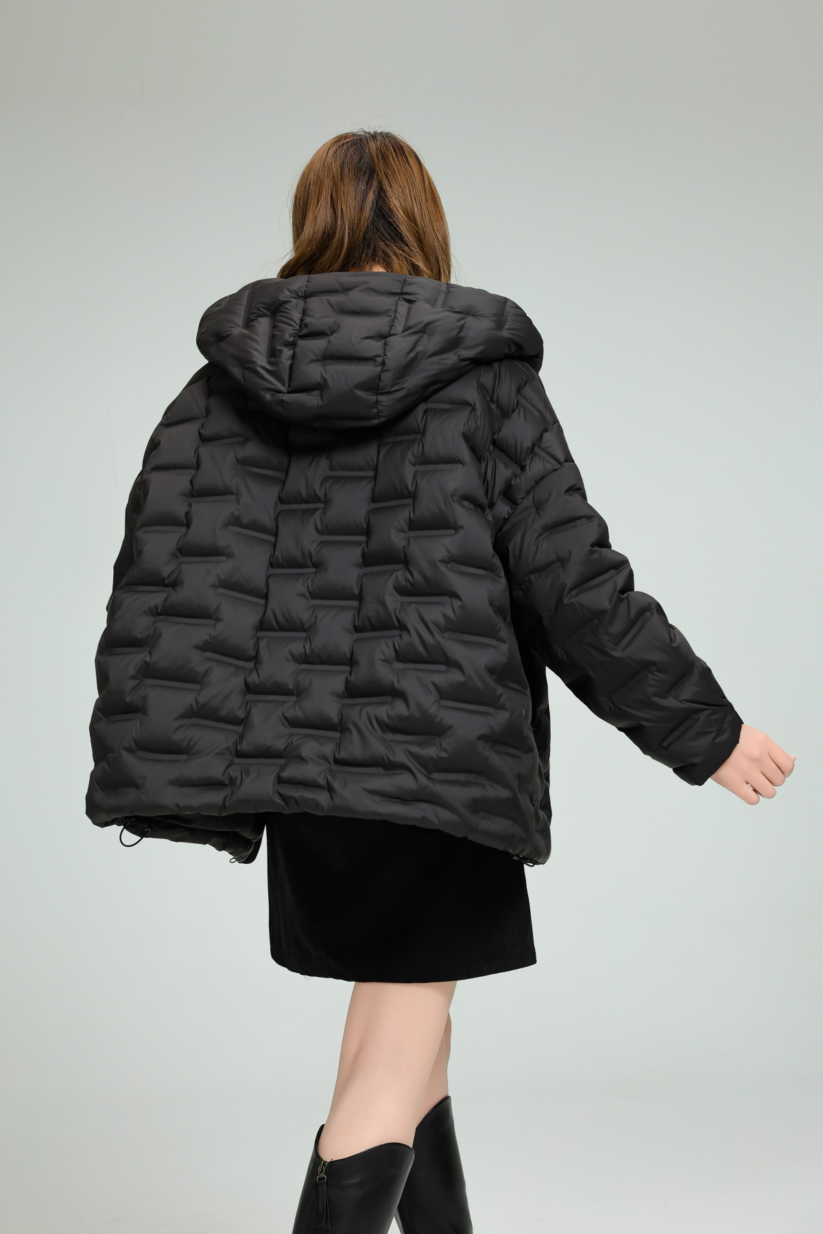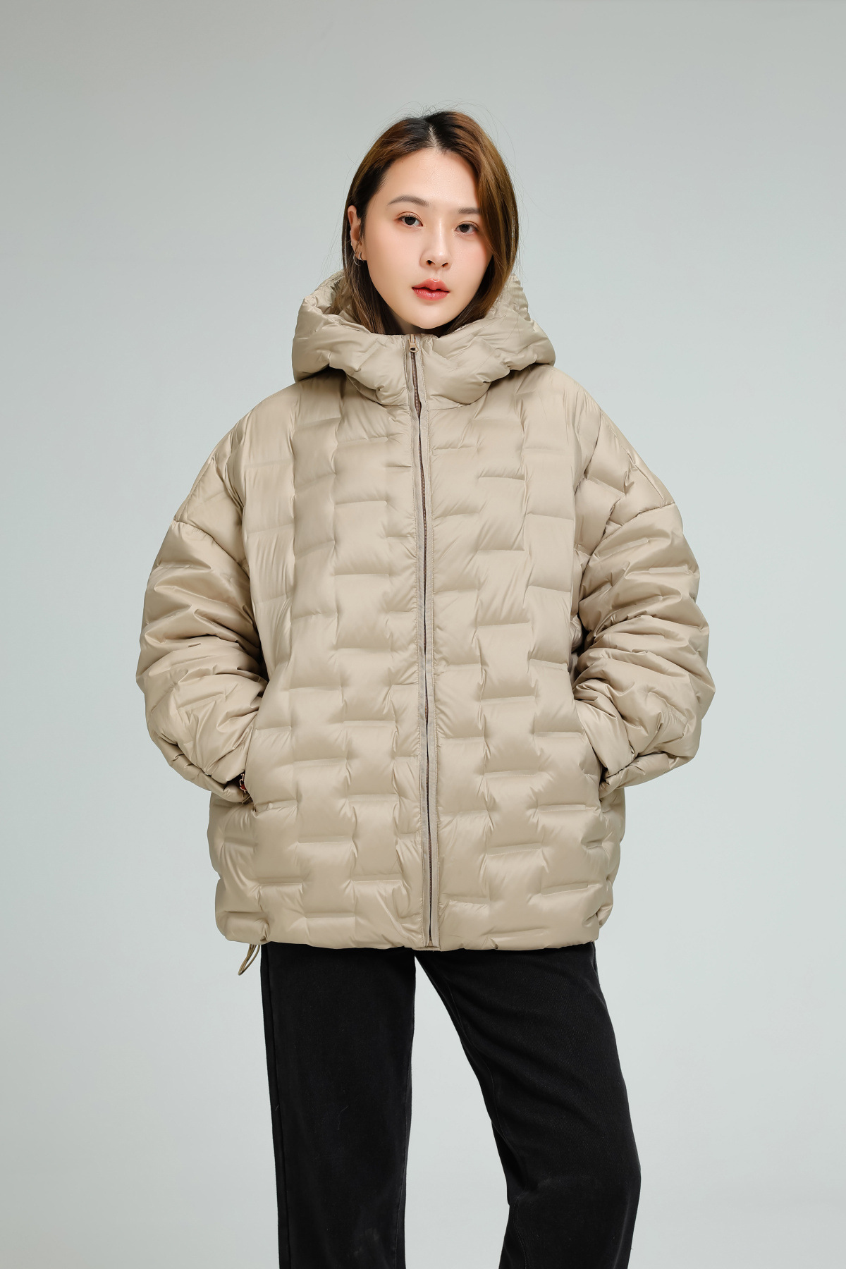 2025 겨울 신상 패션 대형 사이즈 루즈핏 유럽 스타일 수출용 후드 화이트 덕다운 패딩 여성용 코트스토어 가기