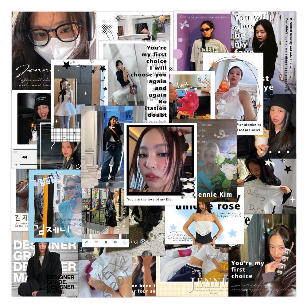50 골드 제니 크리에이티브 스티커 스타일 높은 색상 가치 스타 주변 휴대 전화 쉘 장식 방수 DIY 스티커