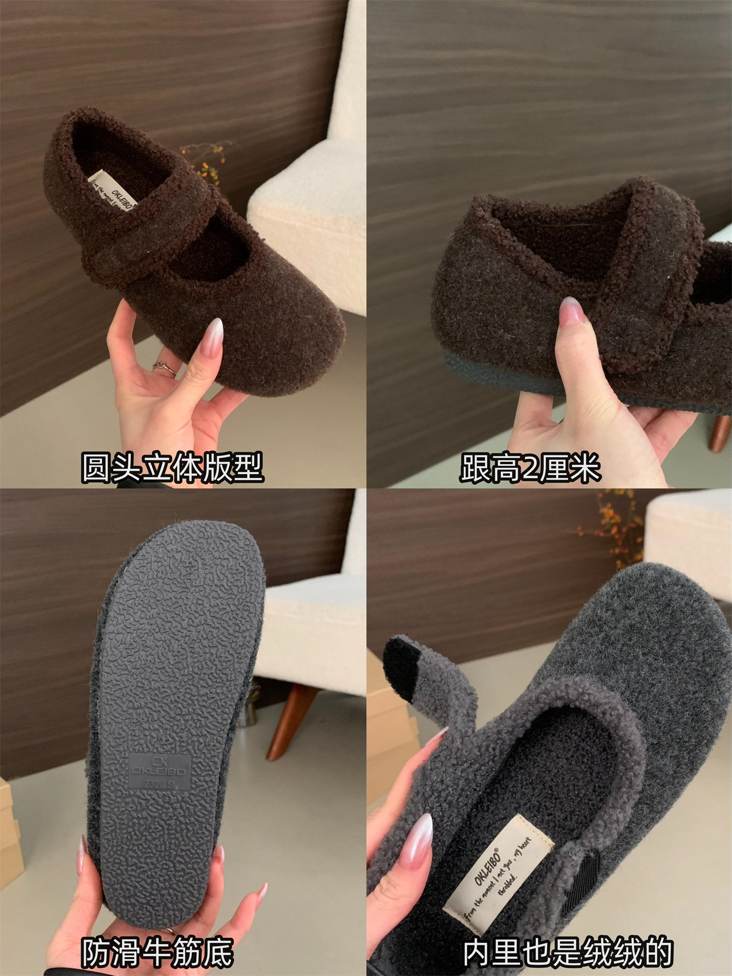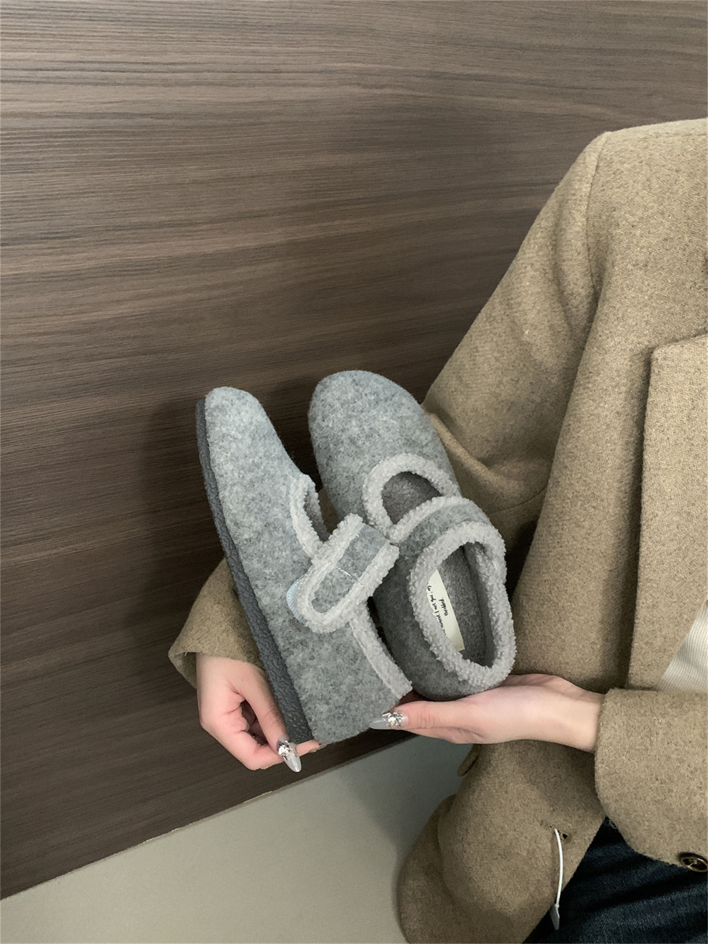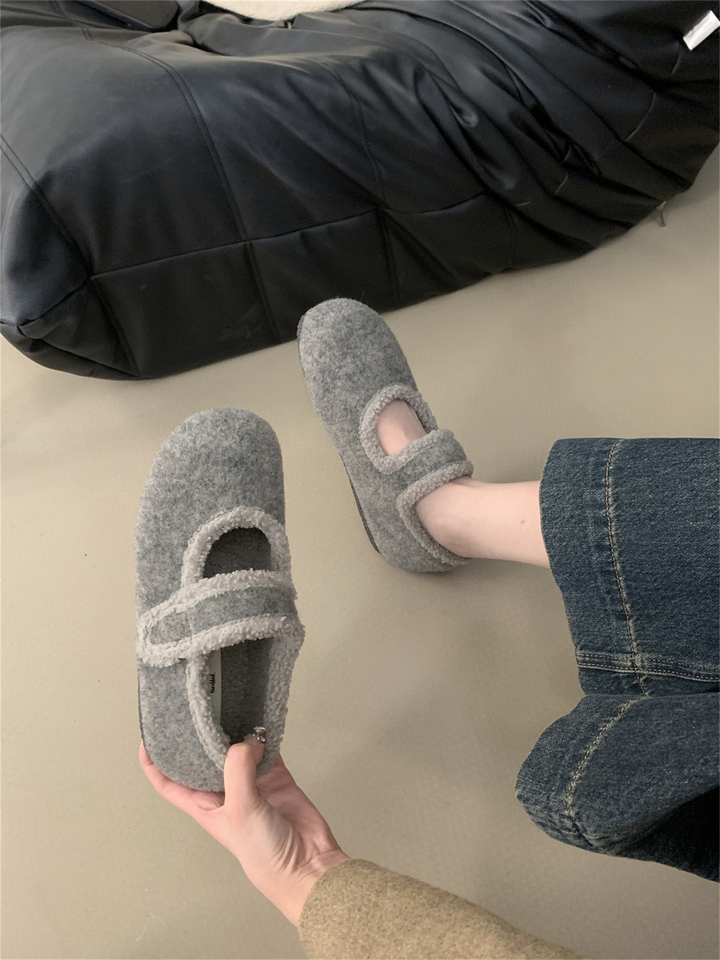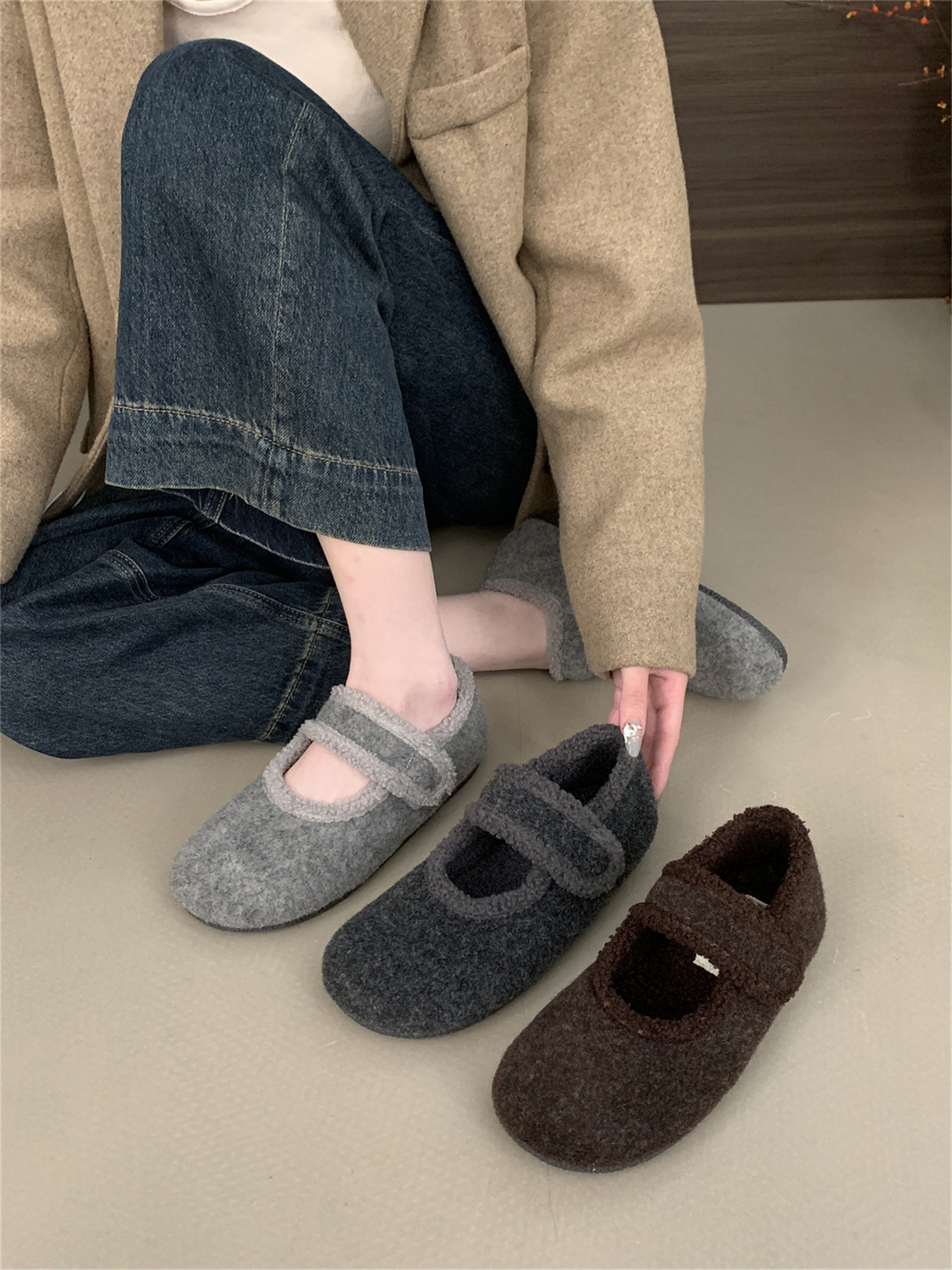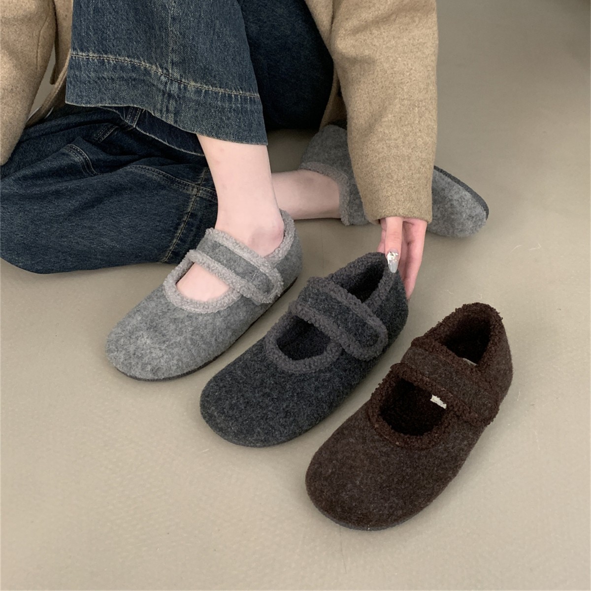 TikTok 폭발 모직 및 푹신한 신발 따뜻한 푹신한 신발 Mary Jane 신발 2024 Winter New