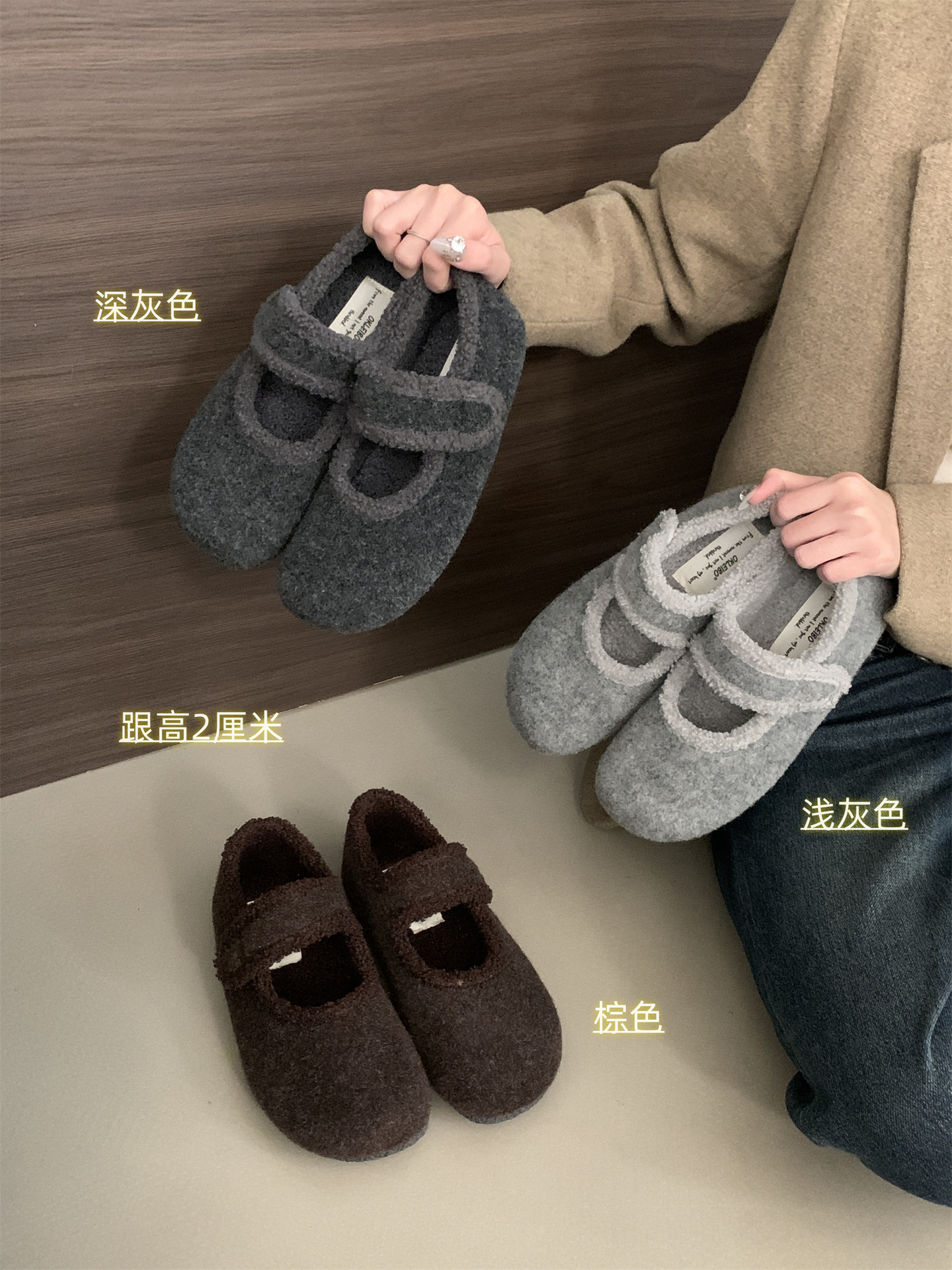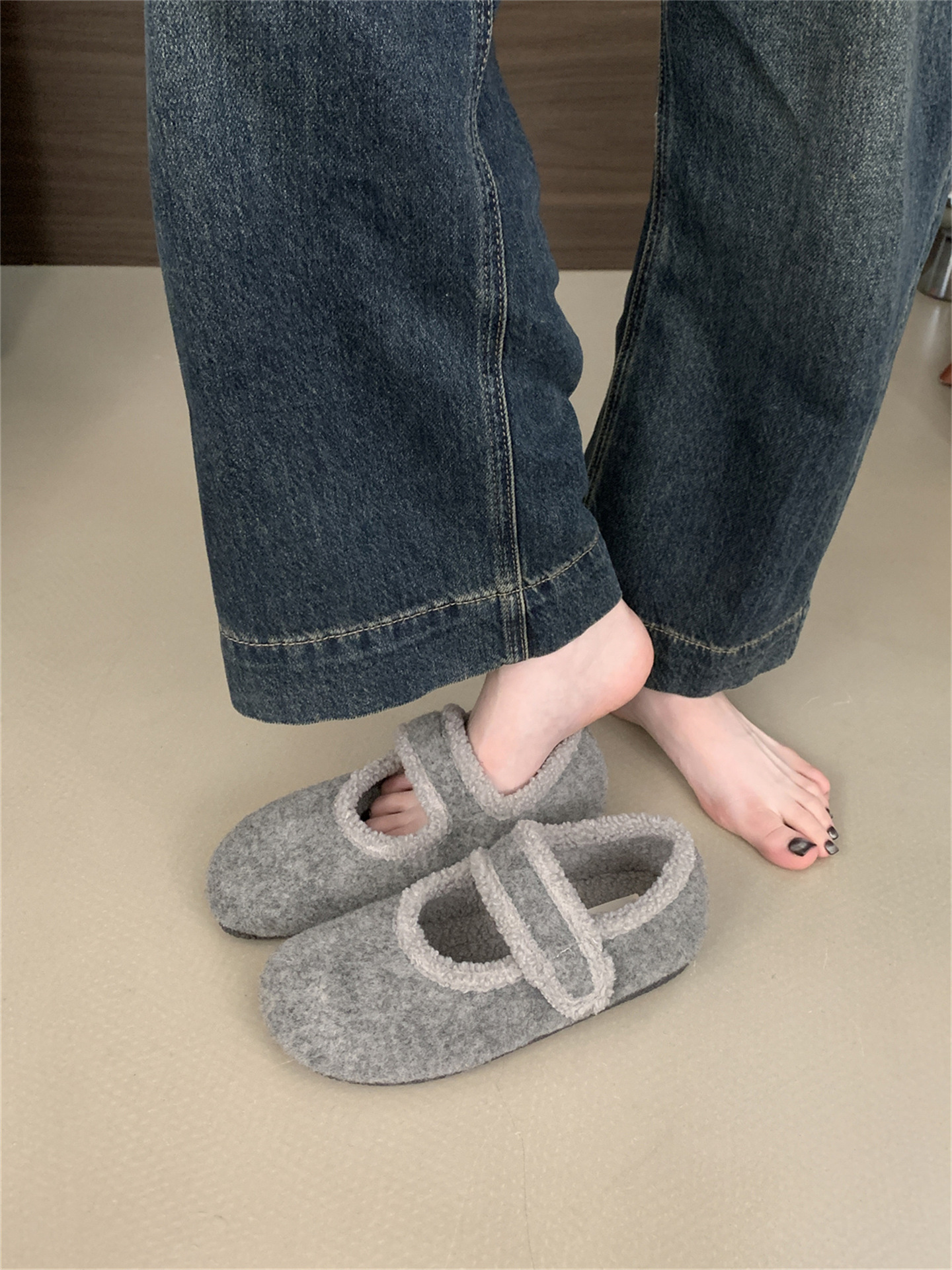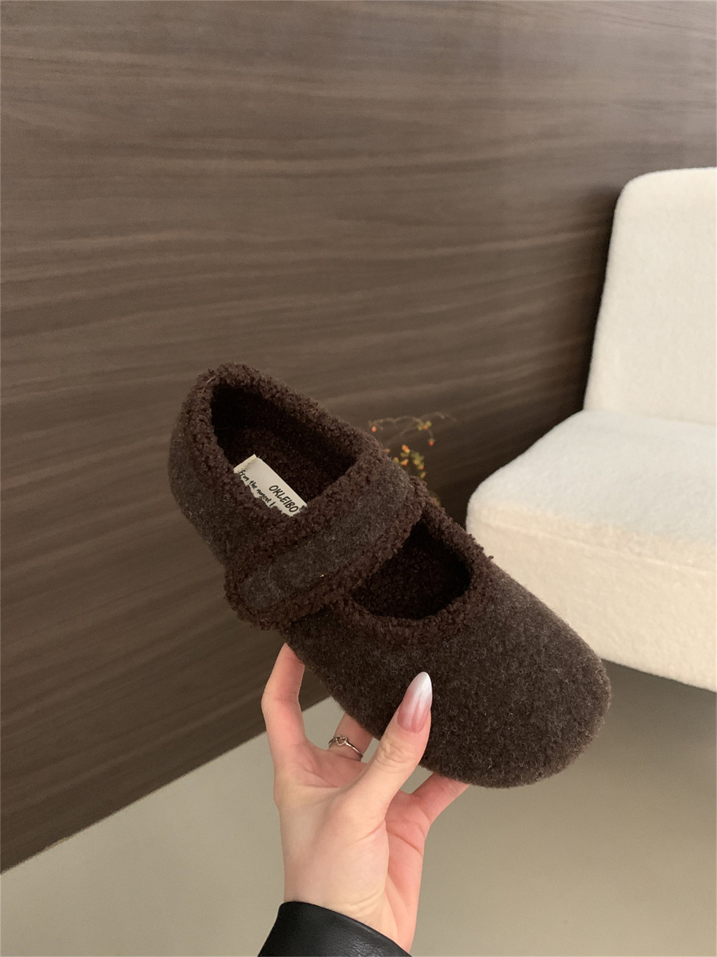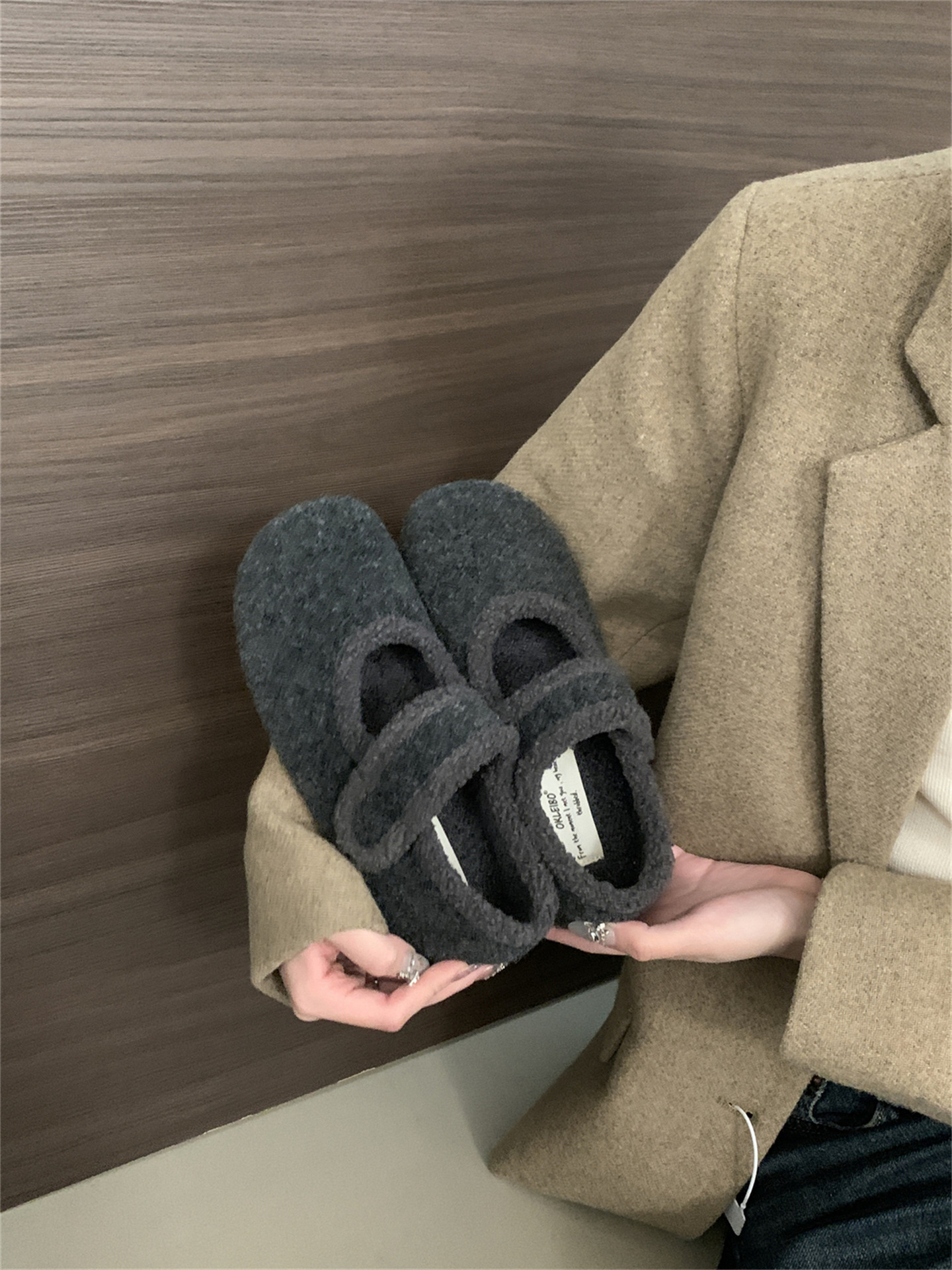 TikTok 폭발 모직 및 푹신한 신발 따뜻한 푹신한 신발 Mary Jane 신발 2024 Winter New