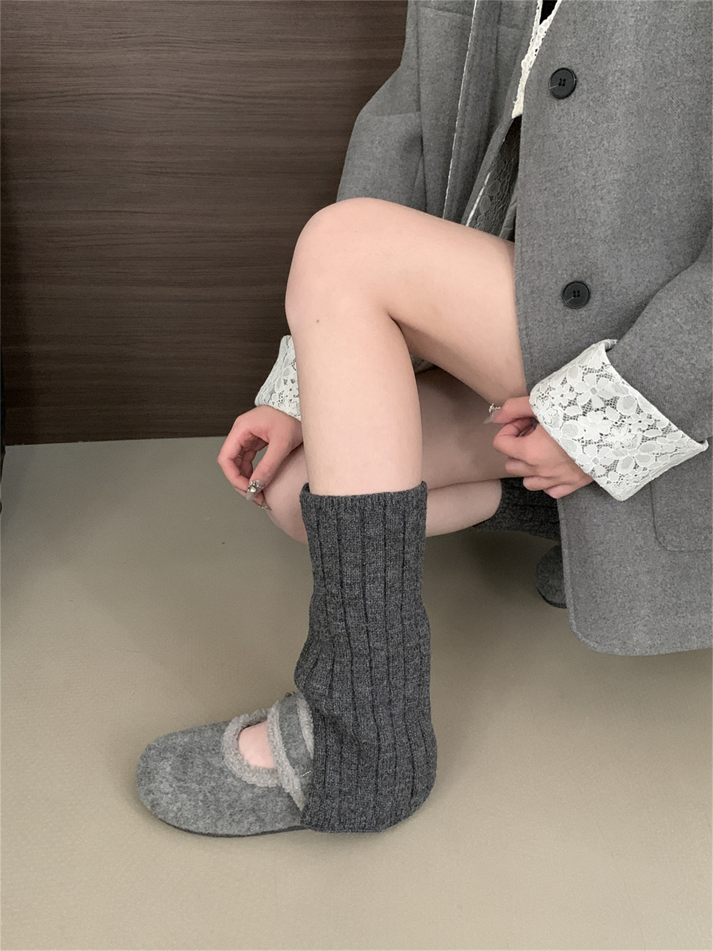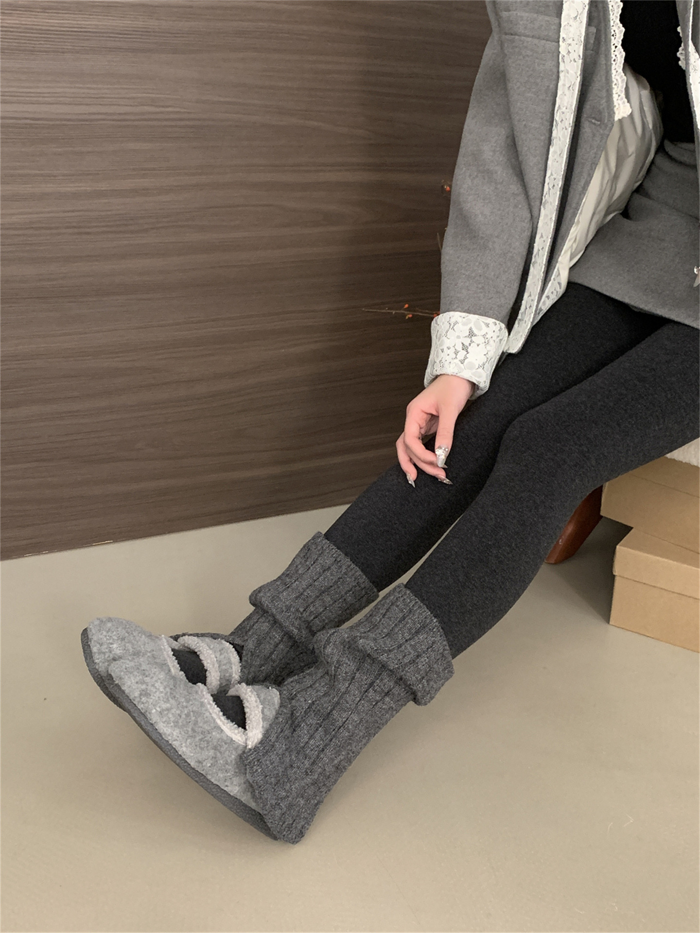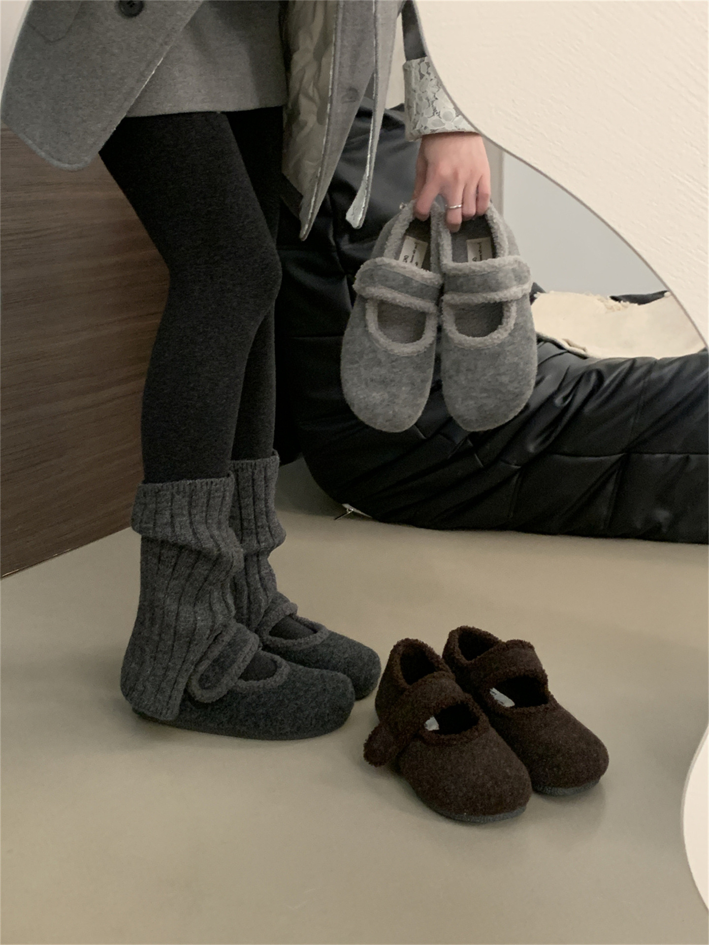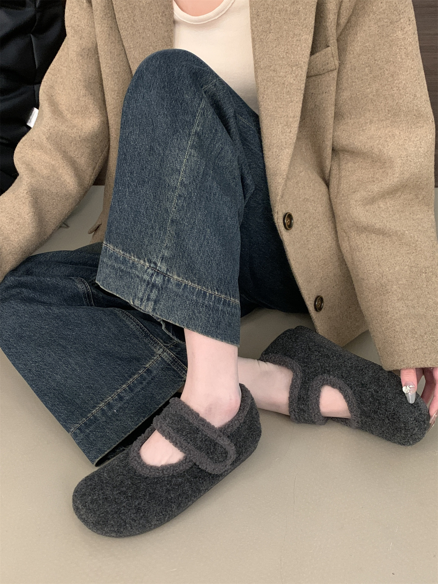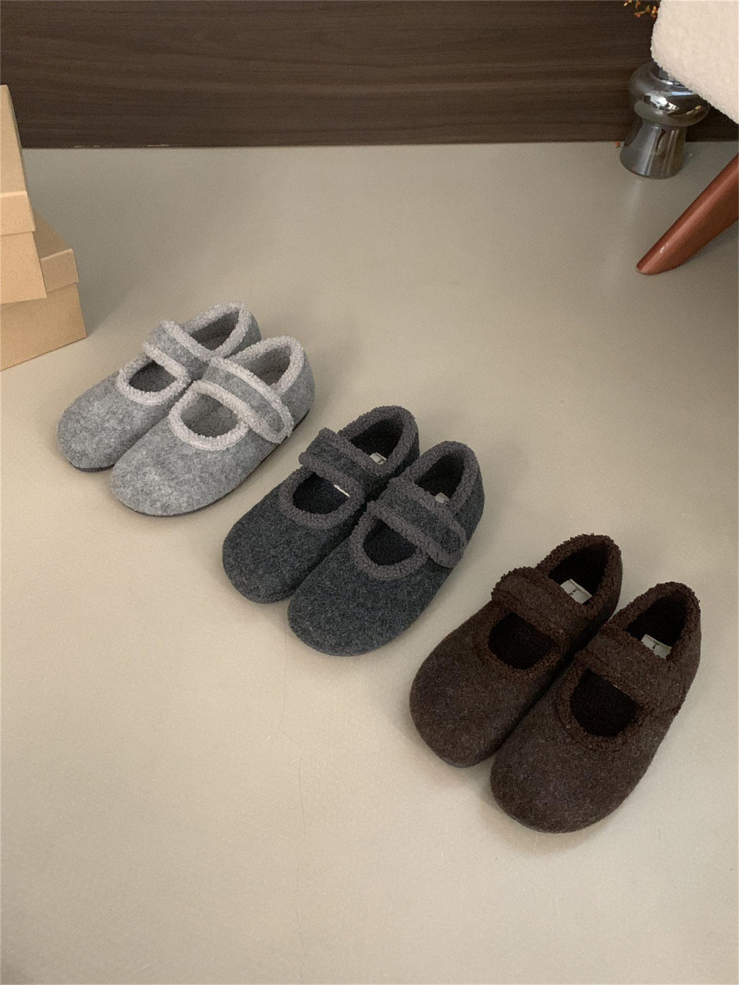 TikTok 폭발 모직 및 푹신한 신발 따뜻한 푹신한 신발 Mary Jane 신발 2024 Winter New