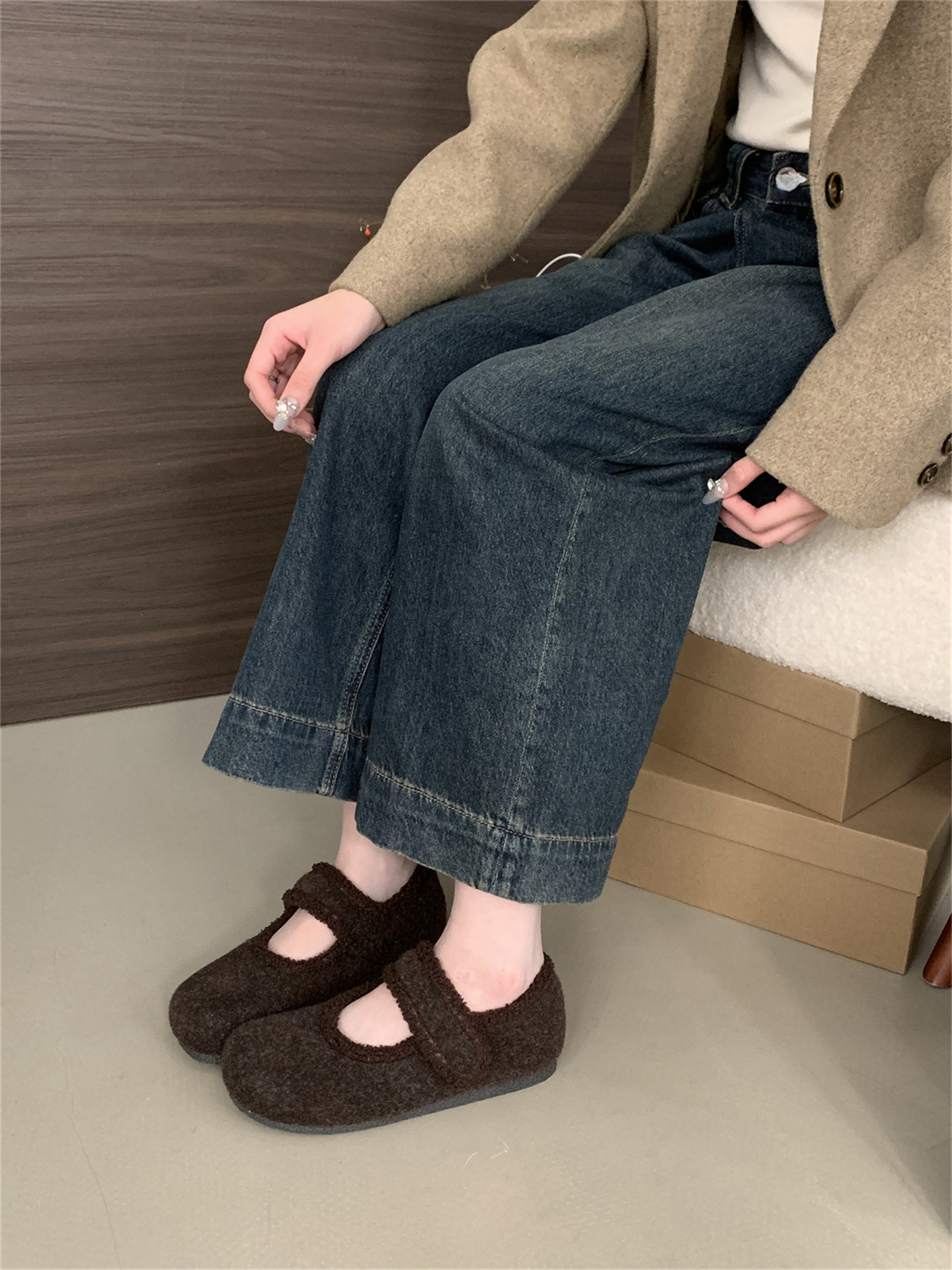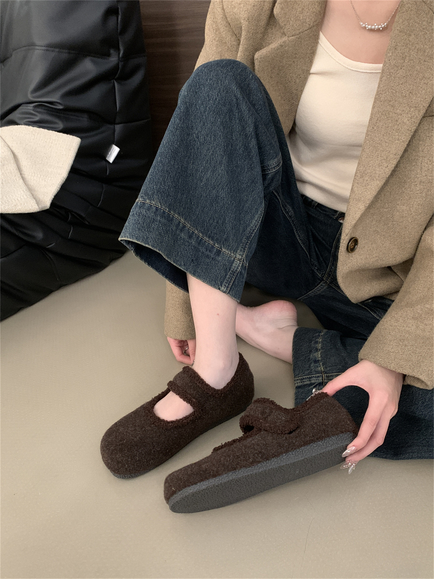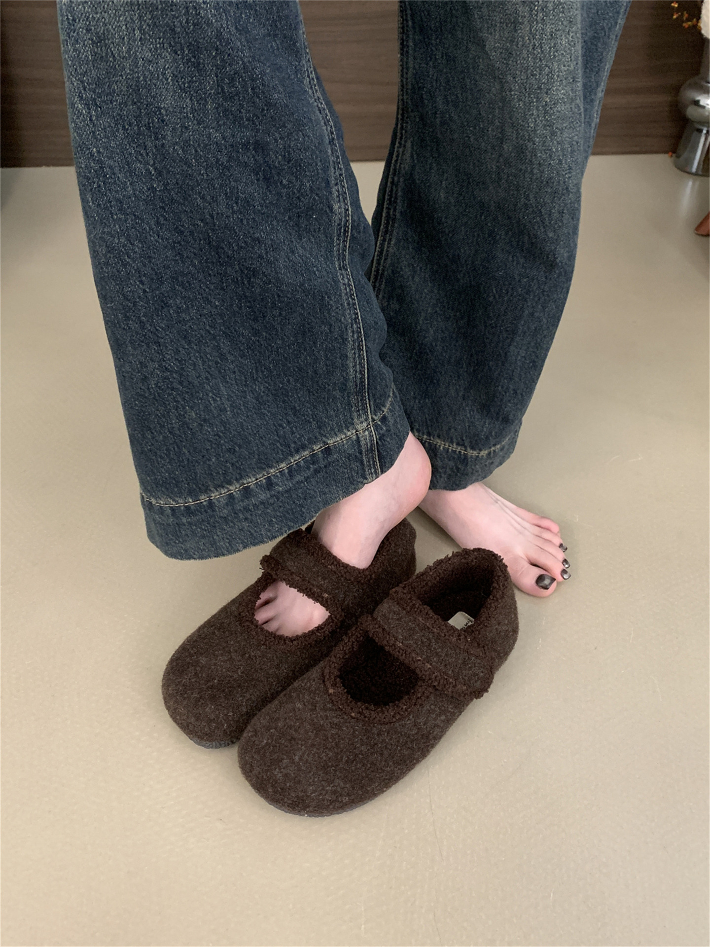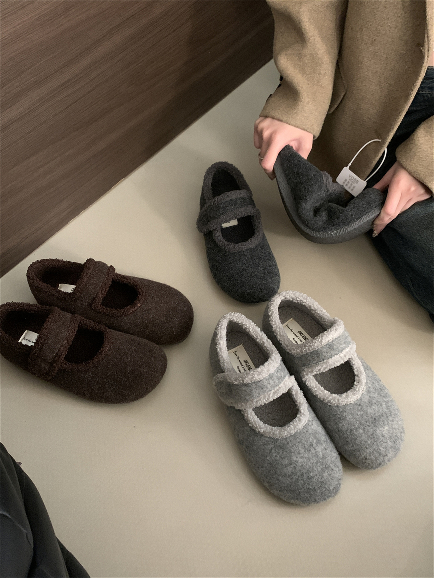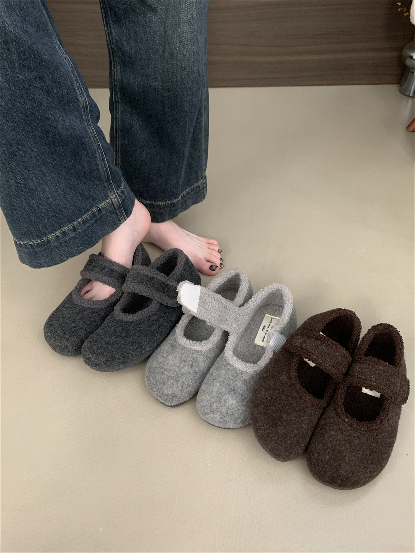 TikTok 폭발 모직 및 푹신한 신발 따뜻한 푹신한 신발 Mary Jane 신발 2024 Winter New스토어 가기