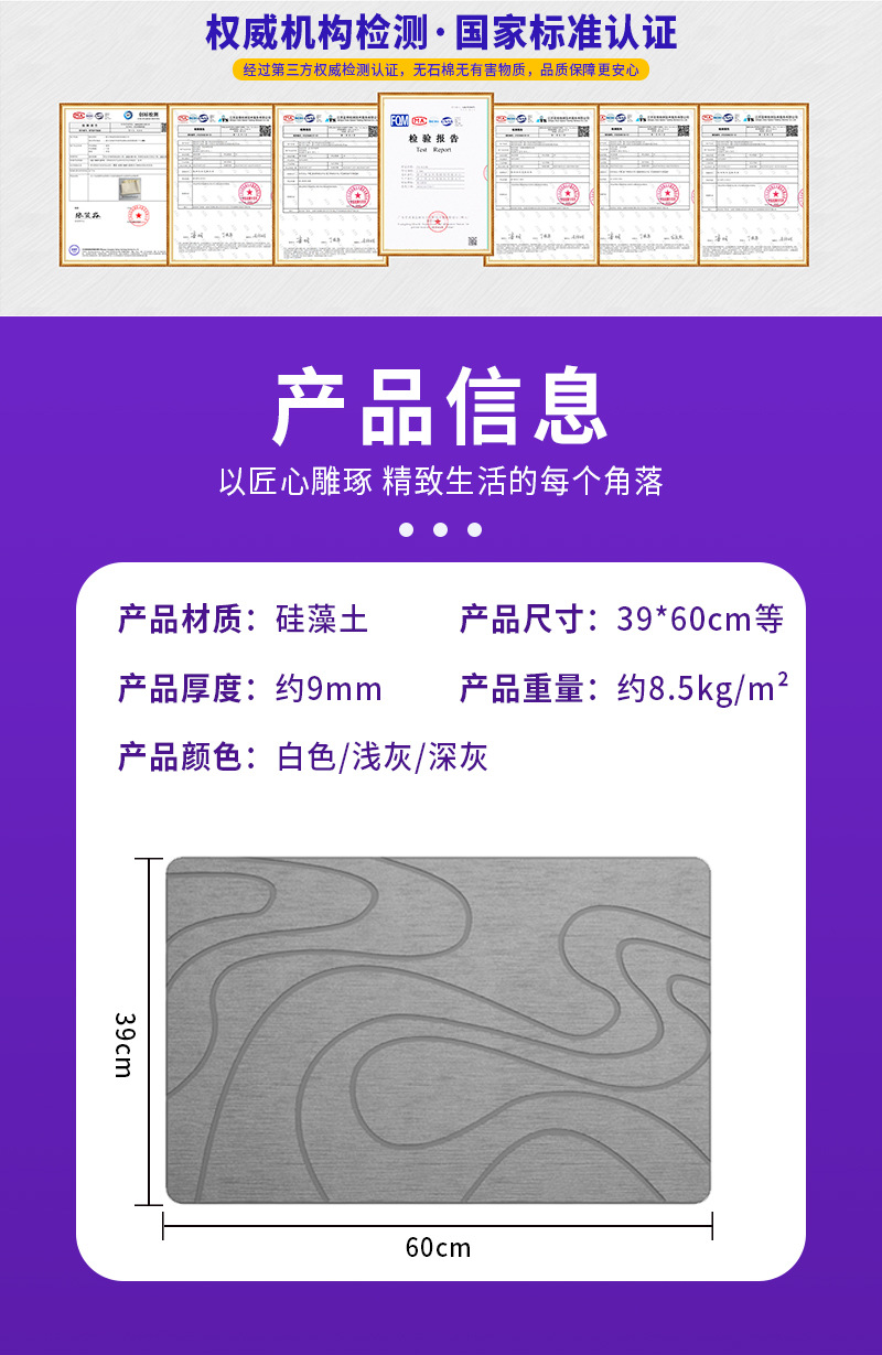 Diatom 진흙 흡수성 매트 화장실 바닥 매트 욕실 미끄럼 방지 매트 빠른 건조 화장실 샤워 룸 욕조 규조토 발 매트