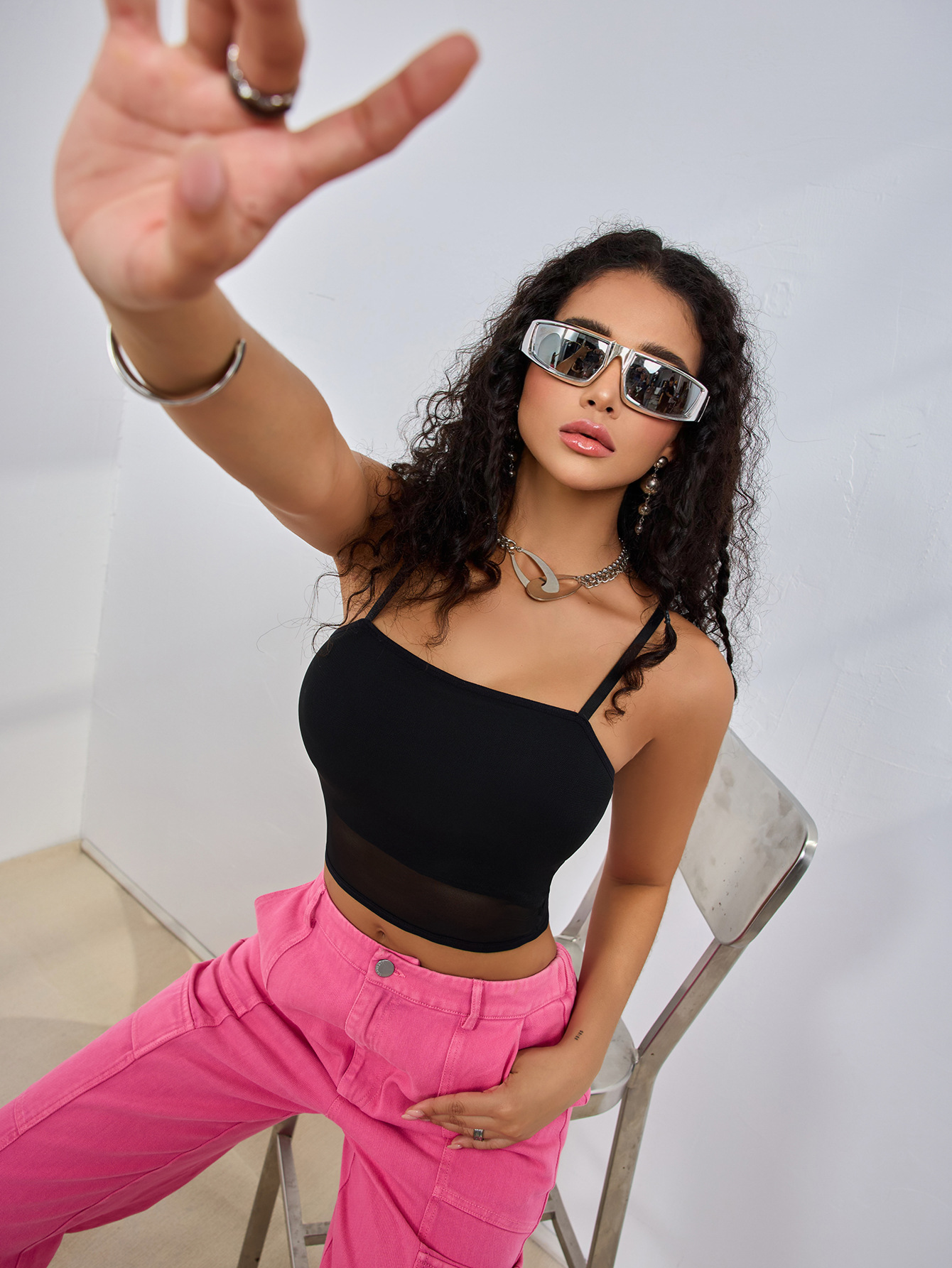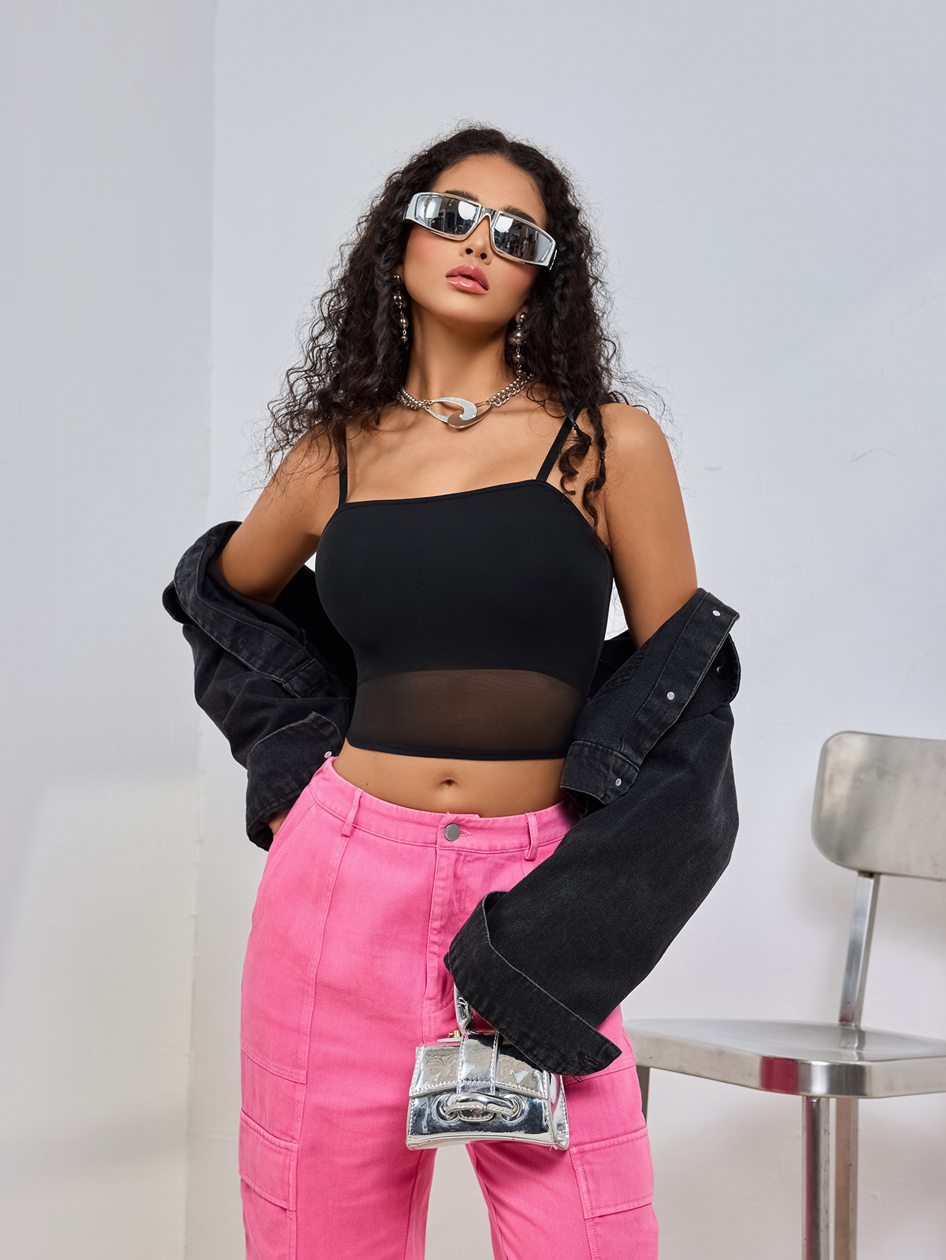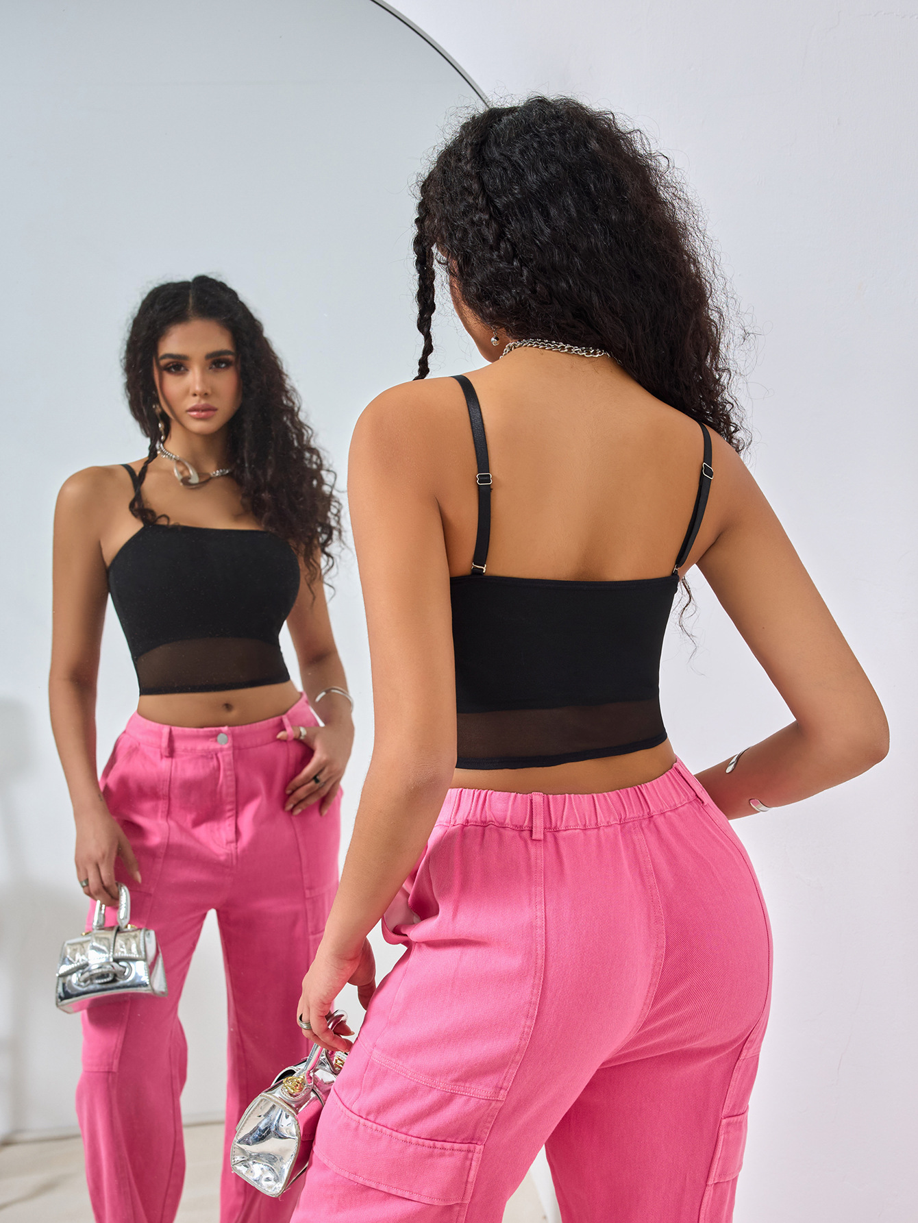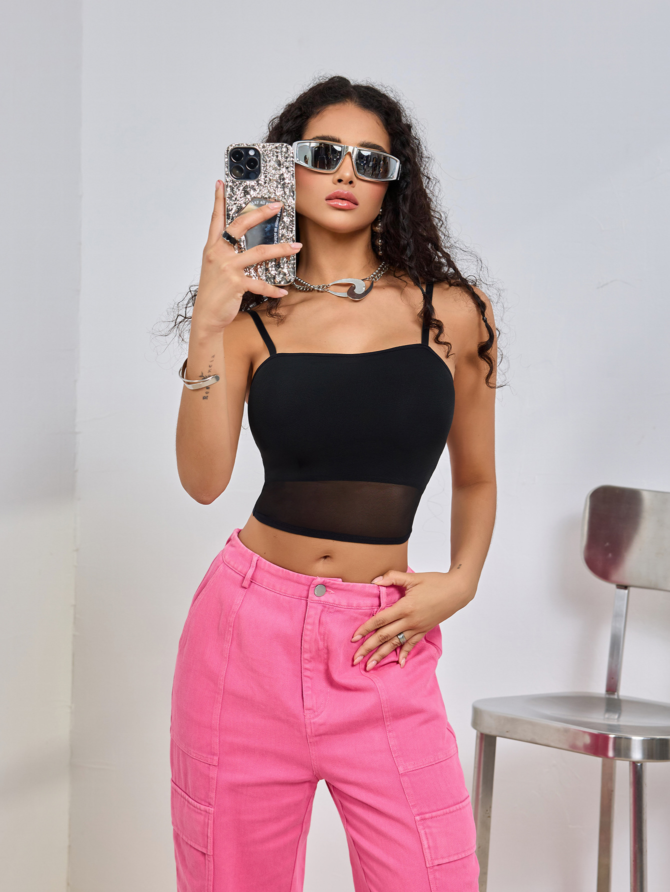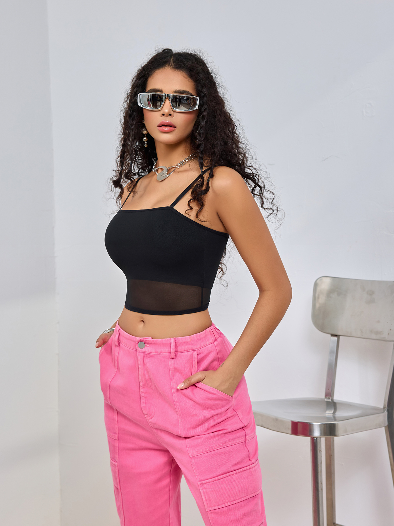 유럽과 미국 크기의 여성 조끼 메쉬 스티칭 조정 가능한 얇은 벨트 원근법 큰 가슴은 여성을위한 작은 국경 새 조끼