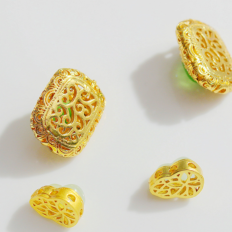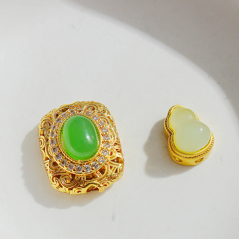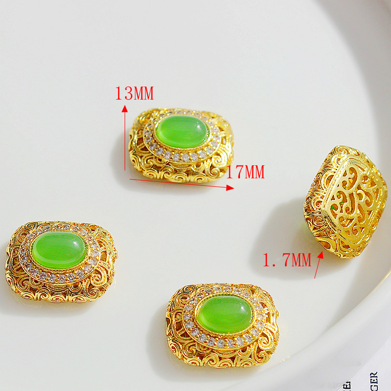 古法金18K包金保色镶锆玉石镂空葫芦长方扁珠通孔diy手链项链隔珠