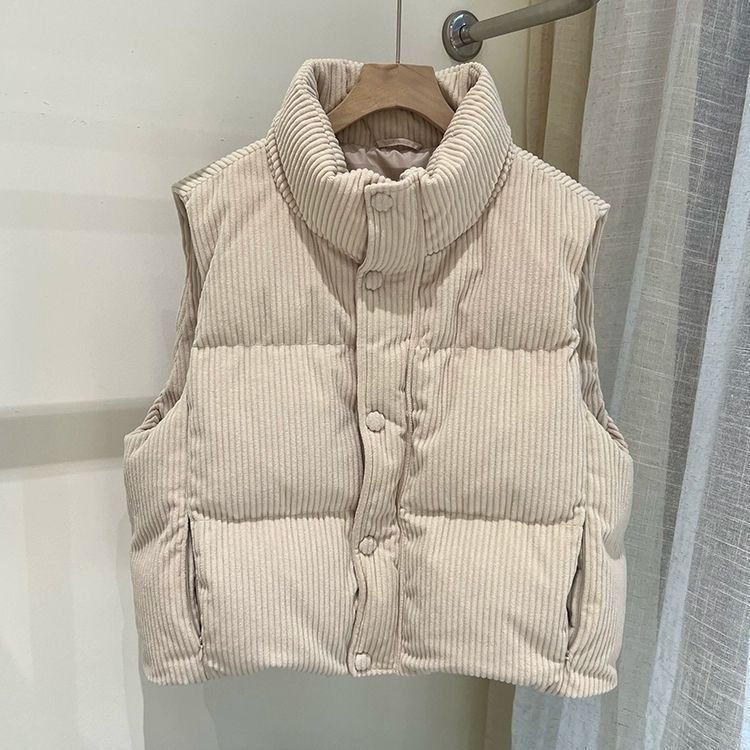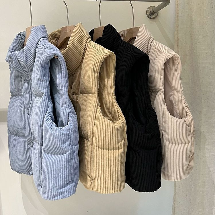 코듀로이 코튼 조끼 여성 쇼트 2024 겨울 새 한국 스타일 칼라 느슨한 패셔너블 루즈 조끼 조끼스토어 가기