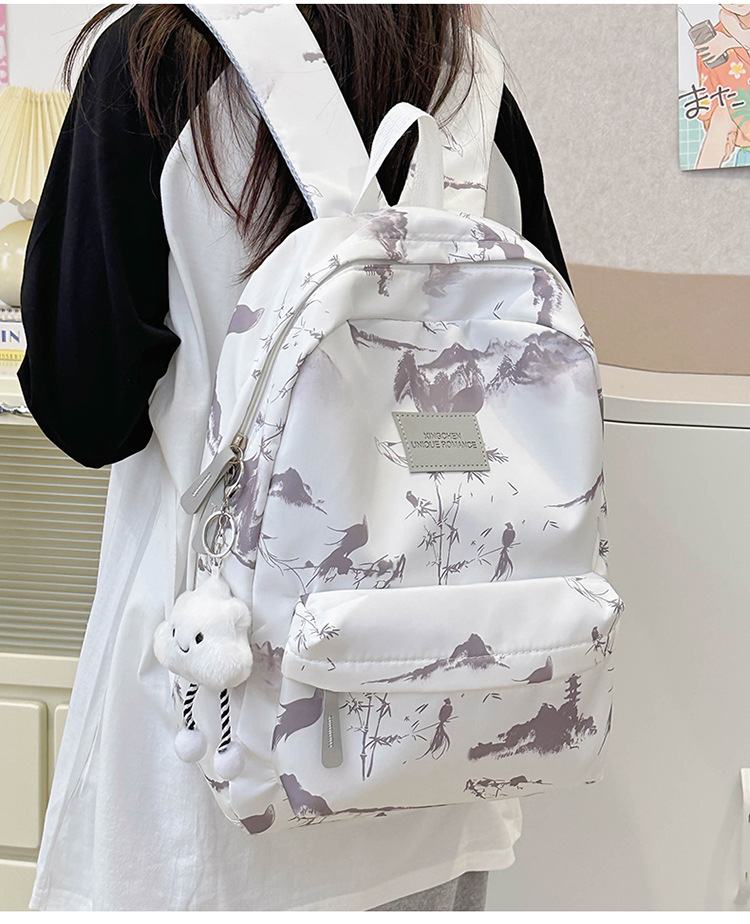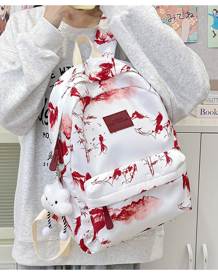 Schoolbag 소녀 대학생 높은 가치 잉크 국가 스타일 배낭 여행 경량 모든 경기 인쇄 작은 신선한 배낭스토어 가기