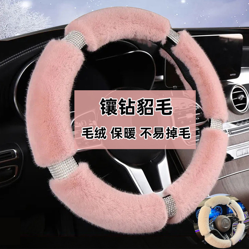 새로운 겨울 봉제 자동차 스티어링 휠 커버 여성 따뜻한 자동차 핸들 커버 다이아몬드 장식 패션 스티어링 휠 커버 도매스토어 가기