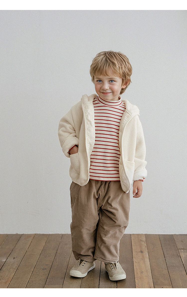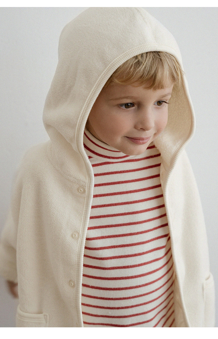 단색 후드 재킷 2025 가을 겨울 신상 한국 스타일 따뜻한 아동복 숨은 단추 앞면 긴 소매 플리스 가디건스토어 가기