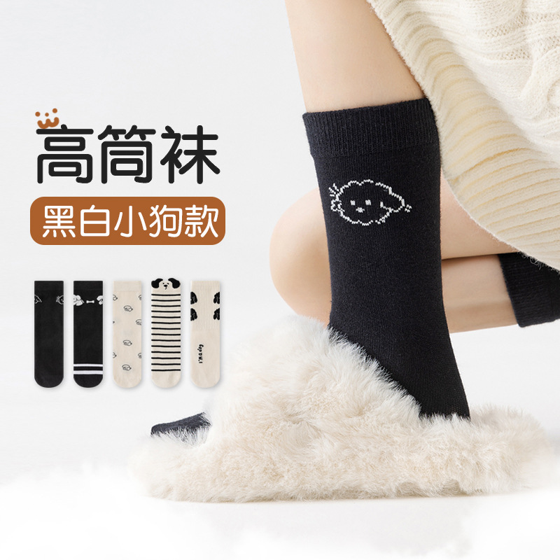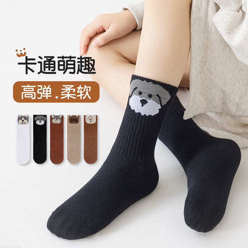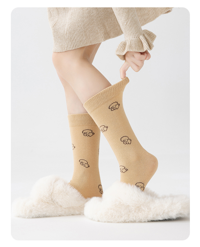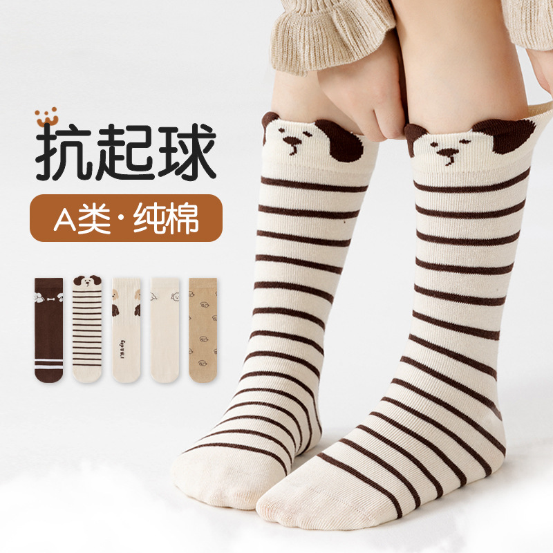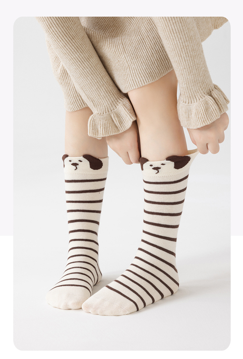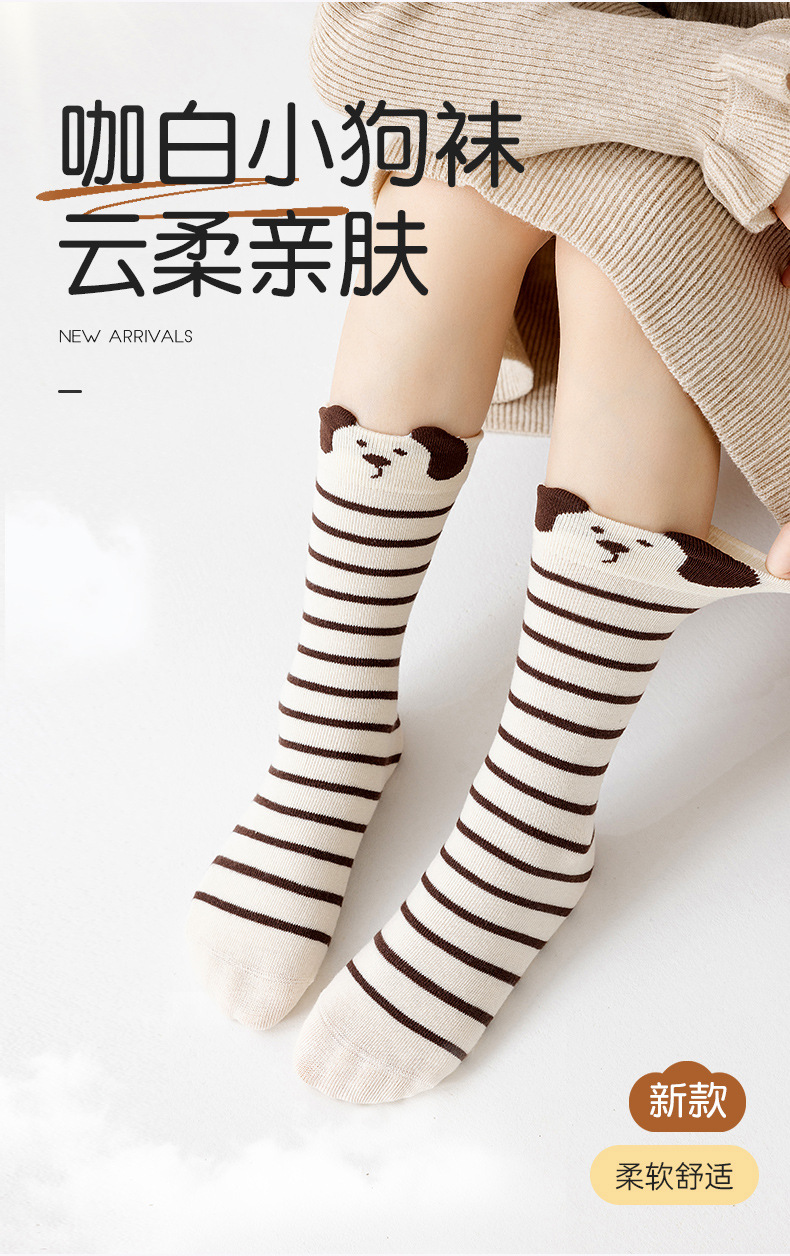 작은 유 토끼 스타킹 소녀 여름 만화 높은 스타킹 스포츠 봄과 가을 어린이 양말 소년 커피 화이트 강아지