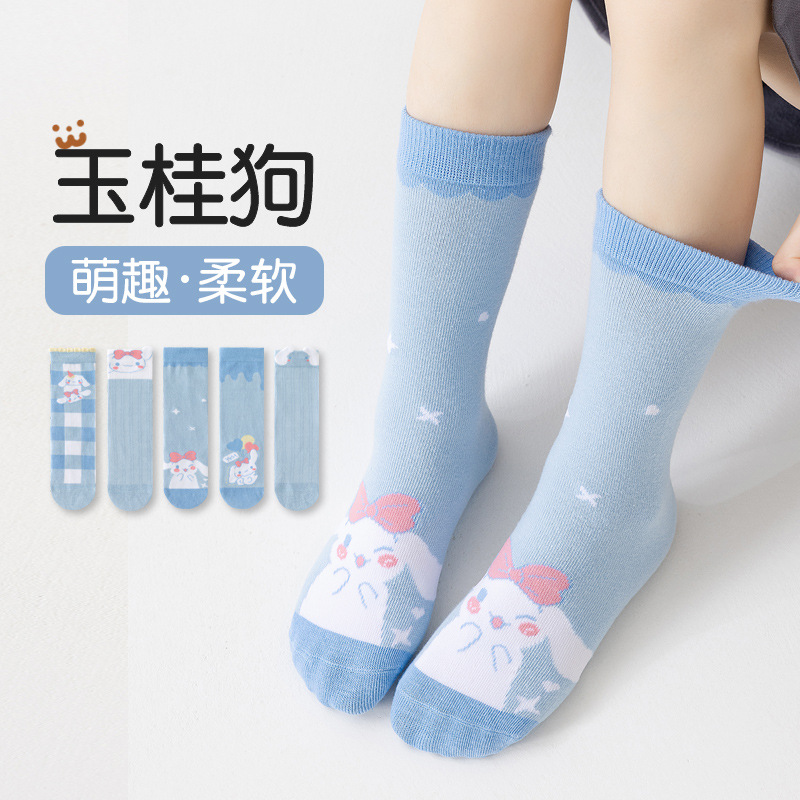 작은 유 토끼 스타킹 소녀 여름 만화 높은 스타킹 스포츠 봄과 가을 어린이 양말 소년 커피 화이트 강아지스토어 가기