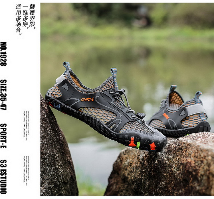 야외 Baotou 비치 신발 하이킹 추적 크릭 5 손가락 남성 플러스 사이즈 흔드는 신발 서핑 표류 수륙 양용 낚시 신발