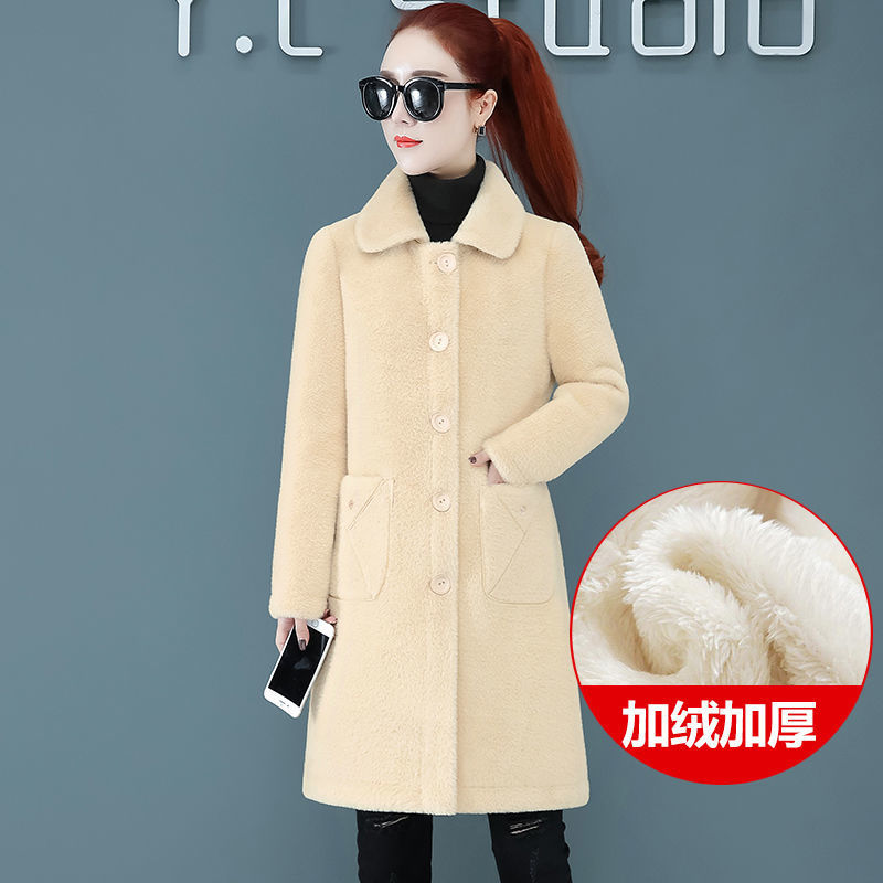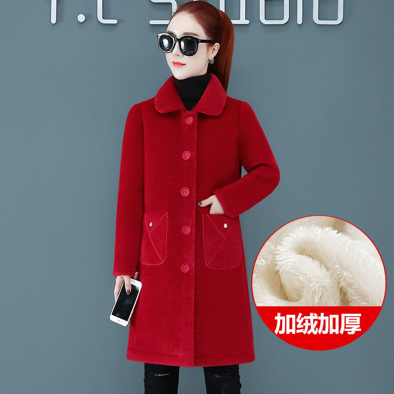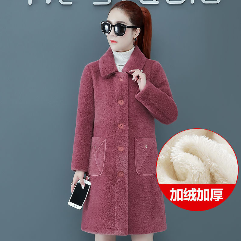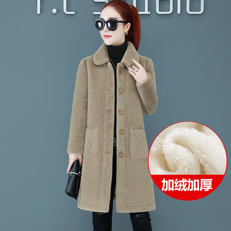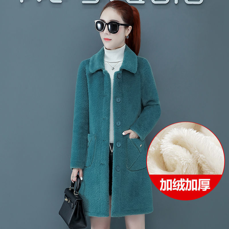 코트 여자 겨울 기모 2024 새로운 도착 소형 미드 길이 올 매치 슬림 핏 밍크 양털 코트