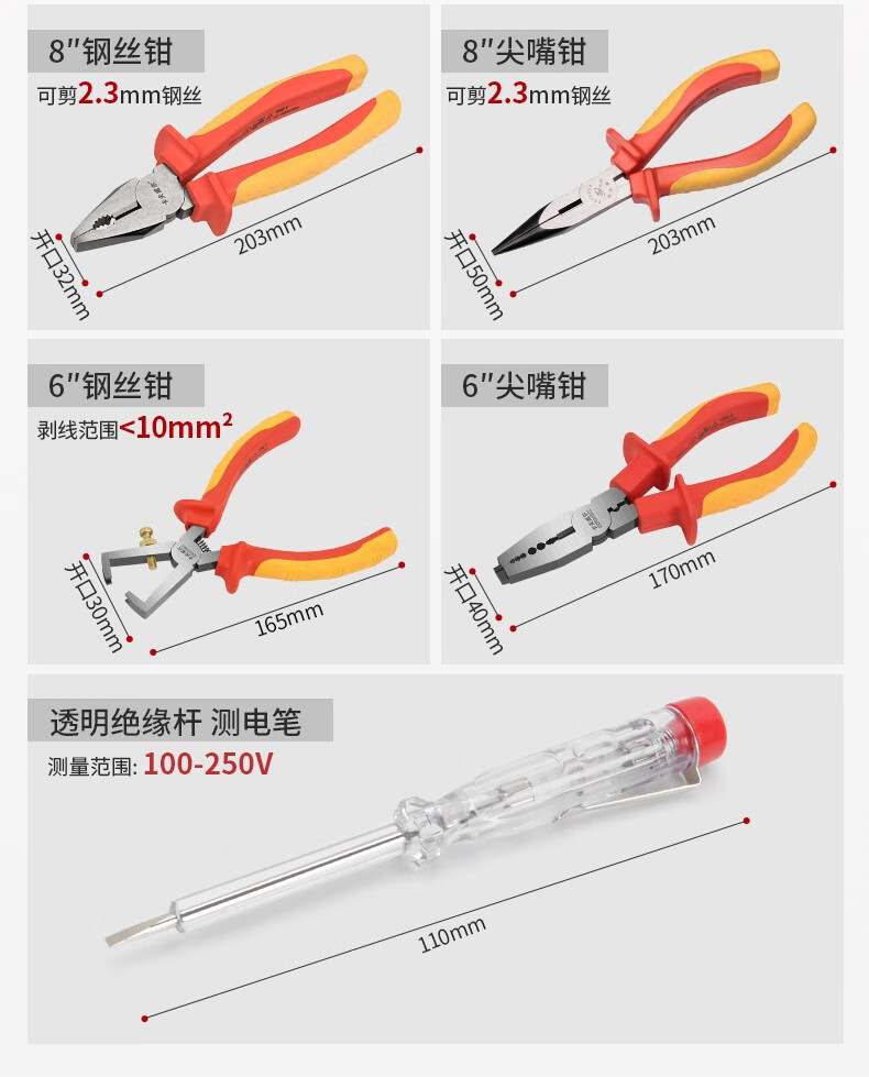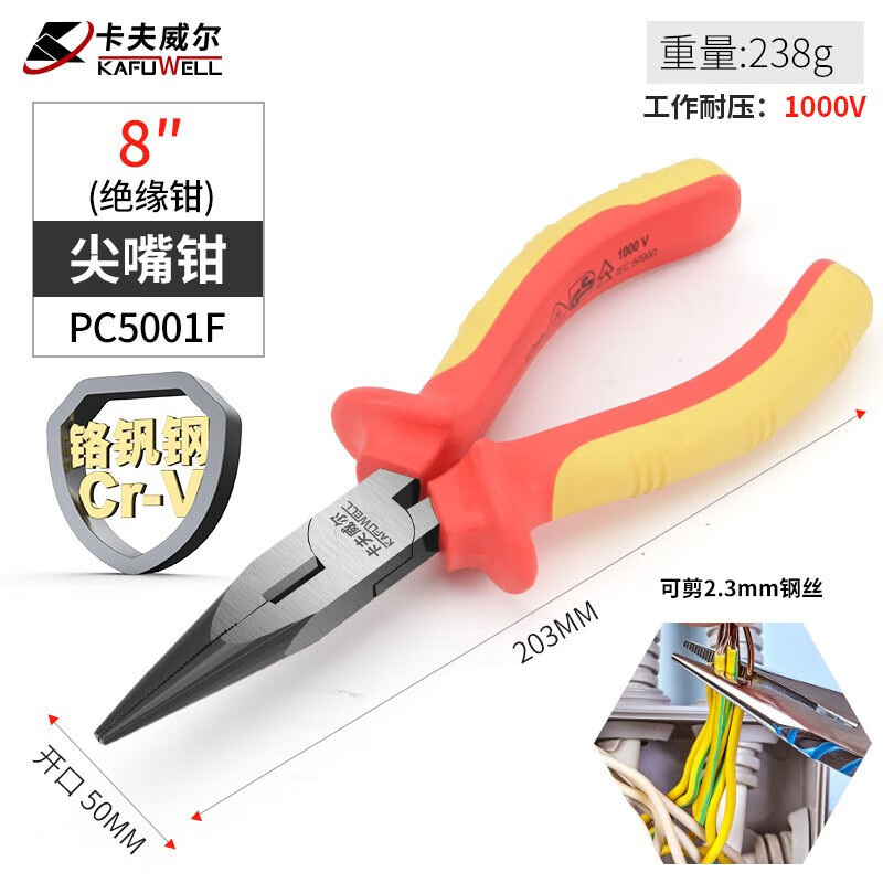 Kafwell 절연 도구 세트 VDE 1000V 고전압 저항 전기 Vise 와이어 펜치 바늘 코 펜치