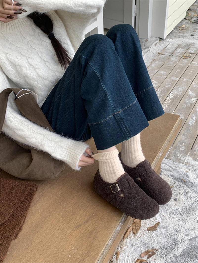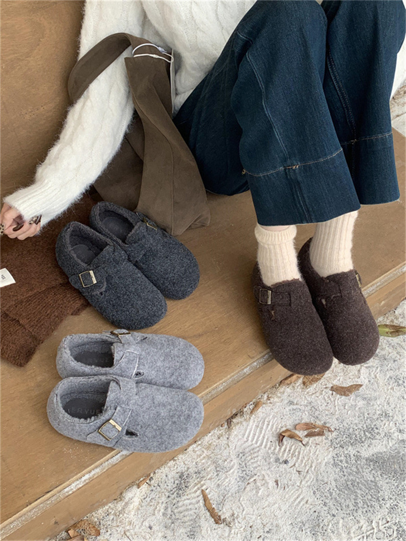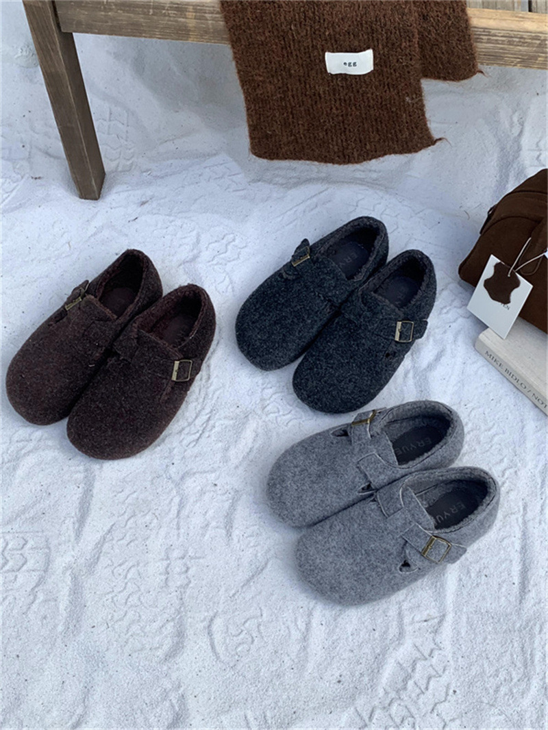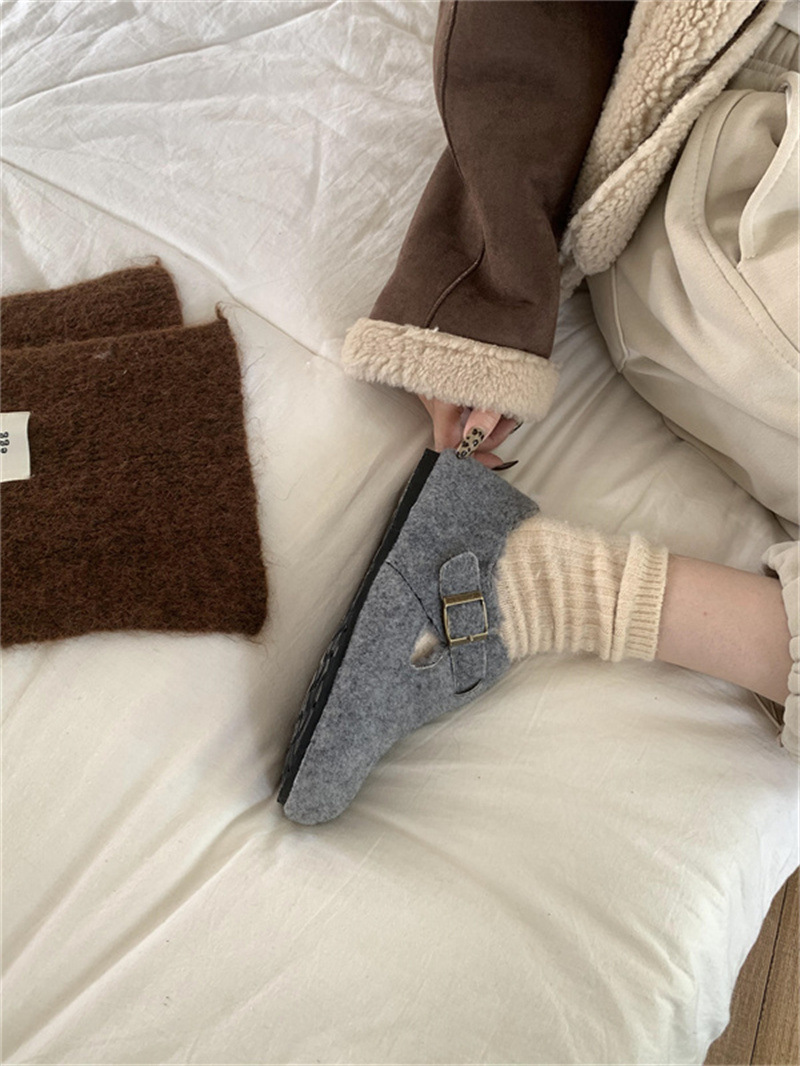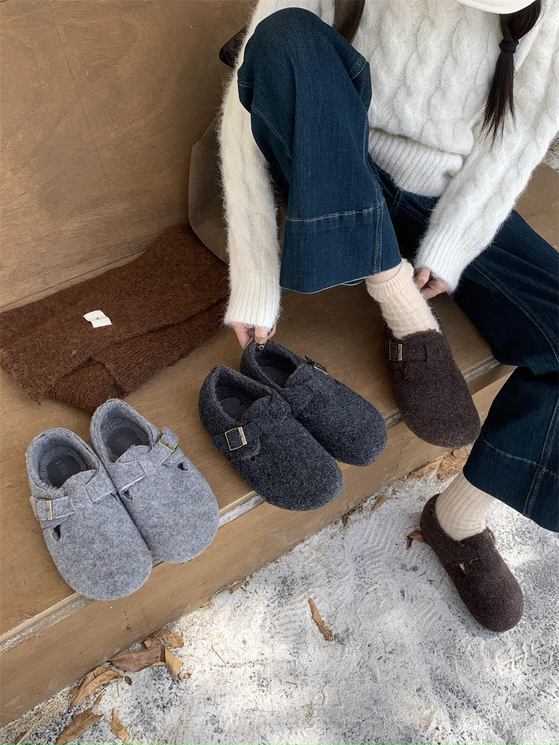 양모 펠트 빈티지 기모 고조 된 Burken 신발 마오 마오 마오 신발 여성 외부 착용 가을 및 겨울 따뜻한 면화 낚시 버켄 신발스토어 가기