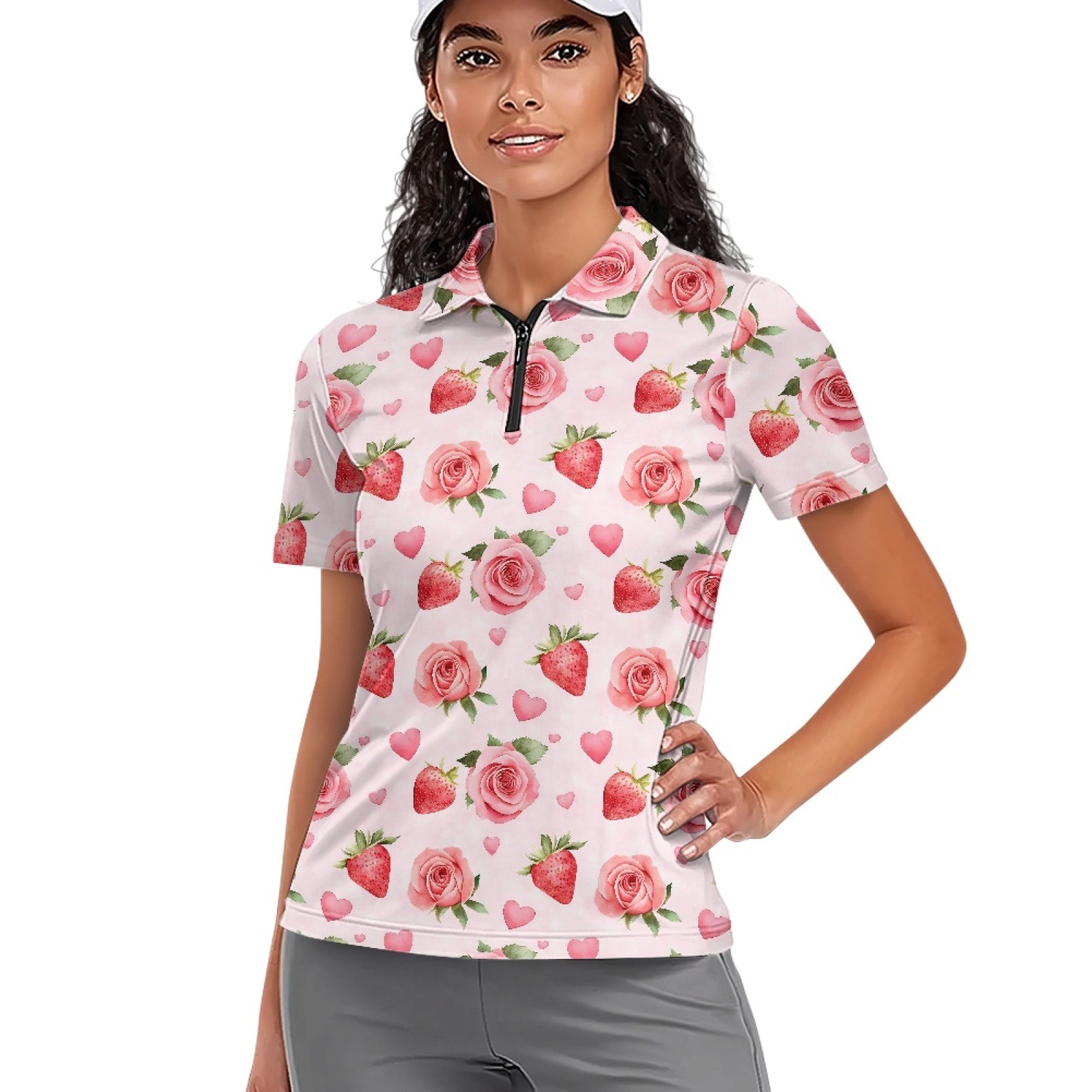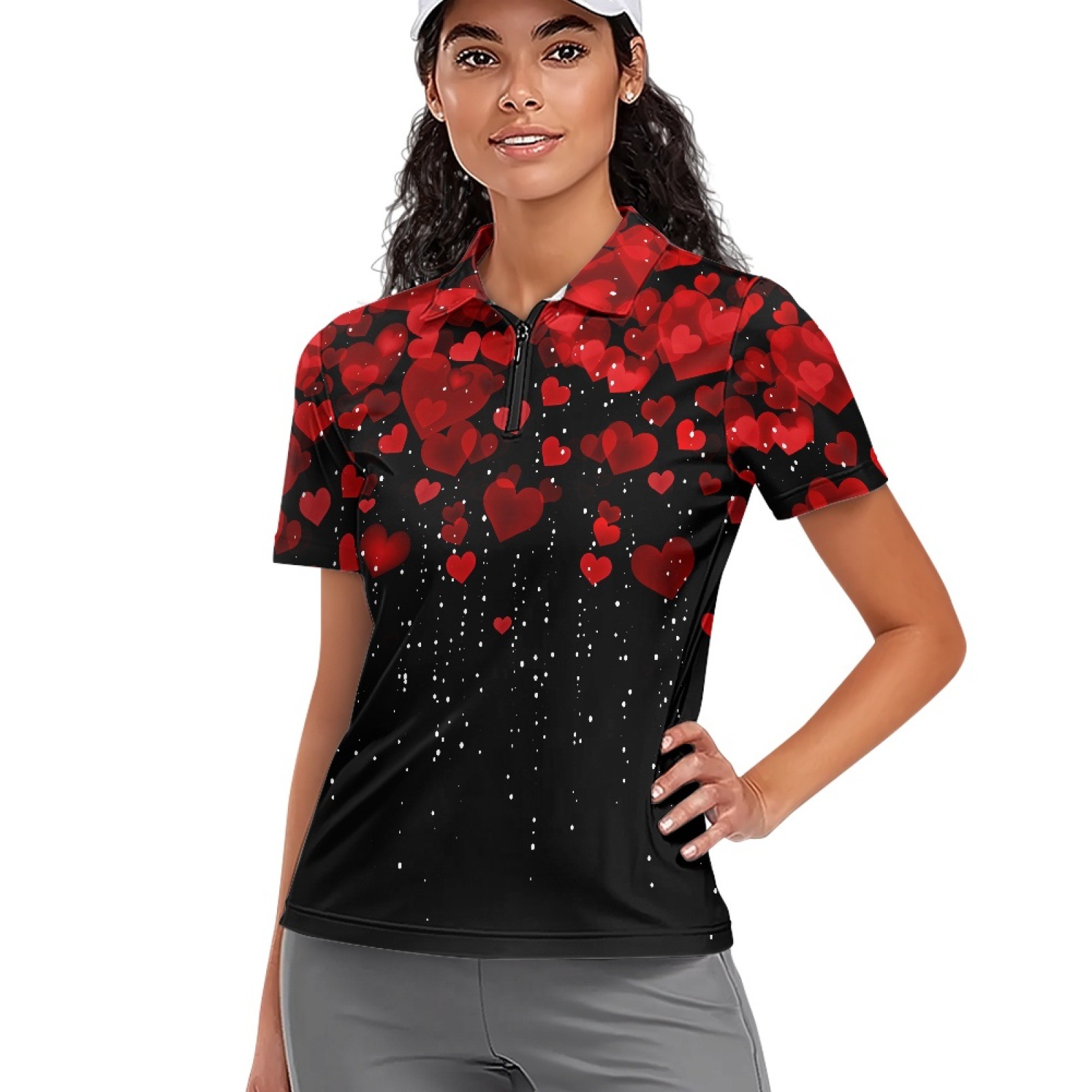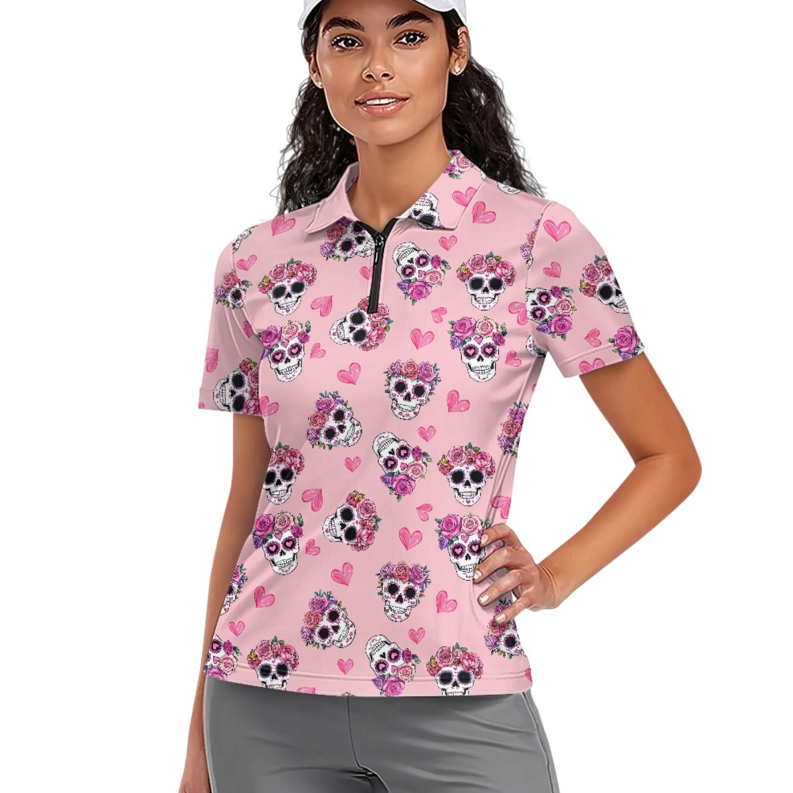 유럽과 미국의 국경을 넘는 새로운 여성 캐주얼 셔츠 발렌타인 데이 두개골 인쇄 짧은 소매 골프 셔츠 최소 주문스토어 가기