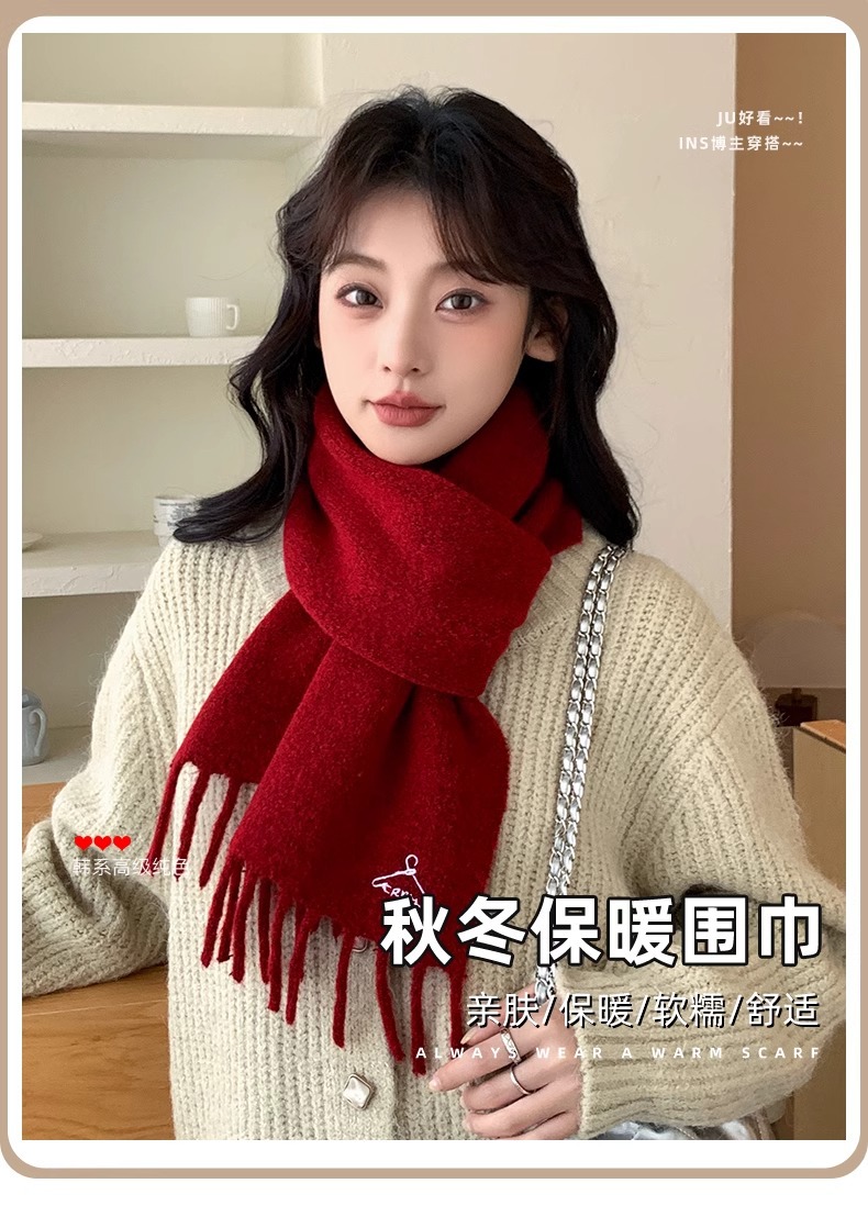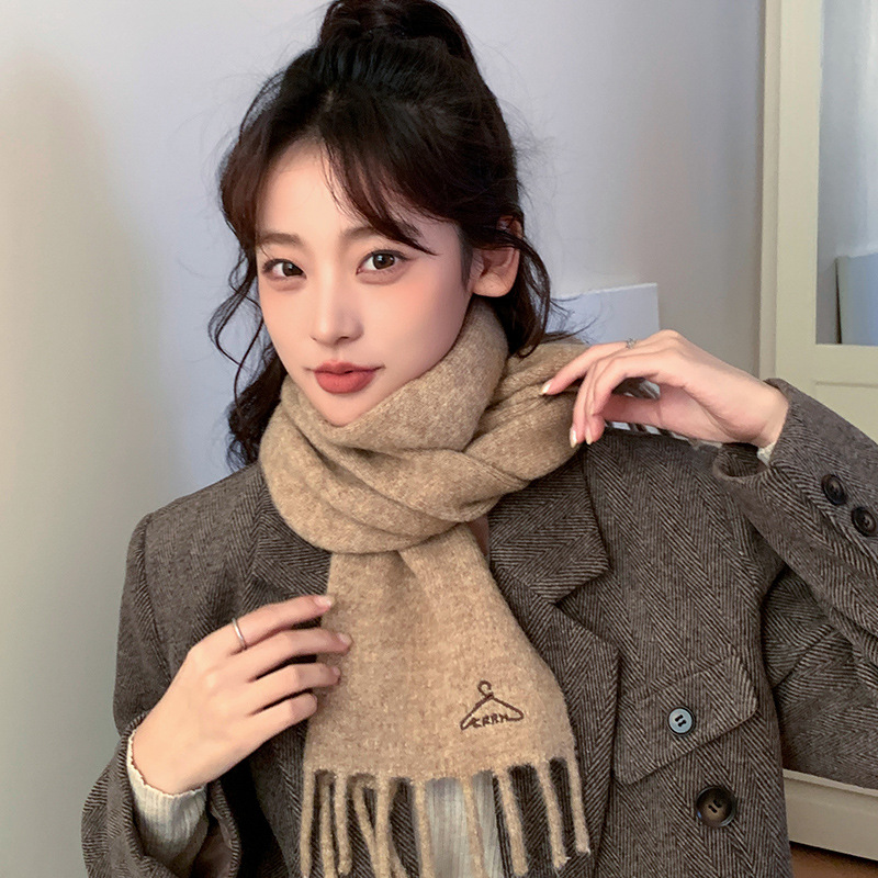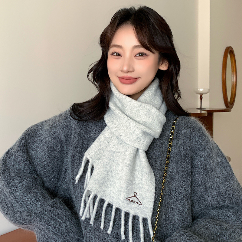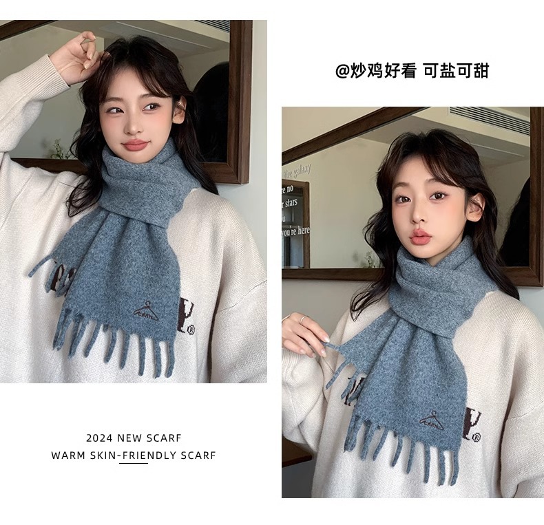 여자 스카프 겨울 2024 새로운 한국식 도파민 솔리드 컬러 올매치 두꺼운 따뜻한 학생 스카프 고급 감각스토어 가기