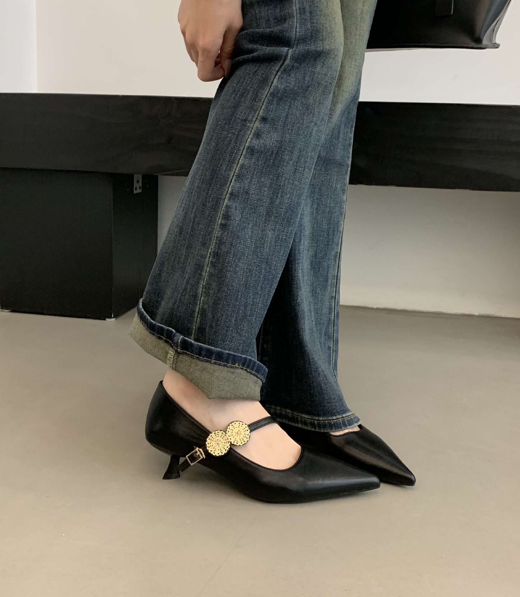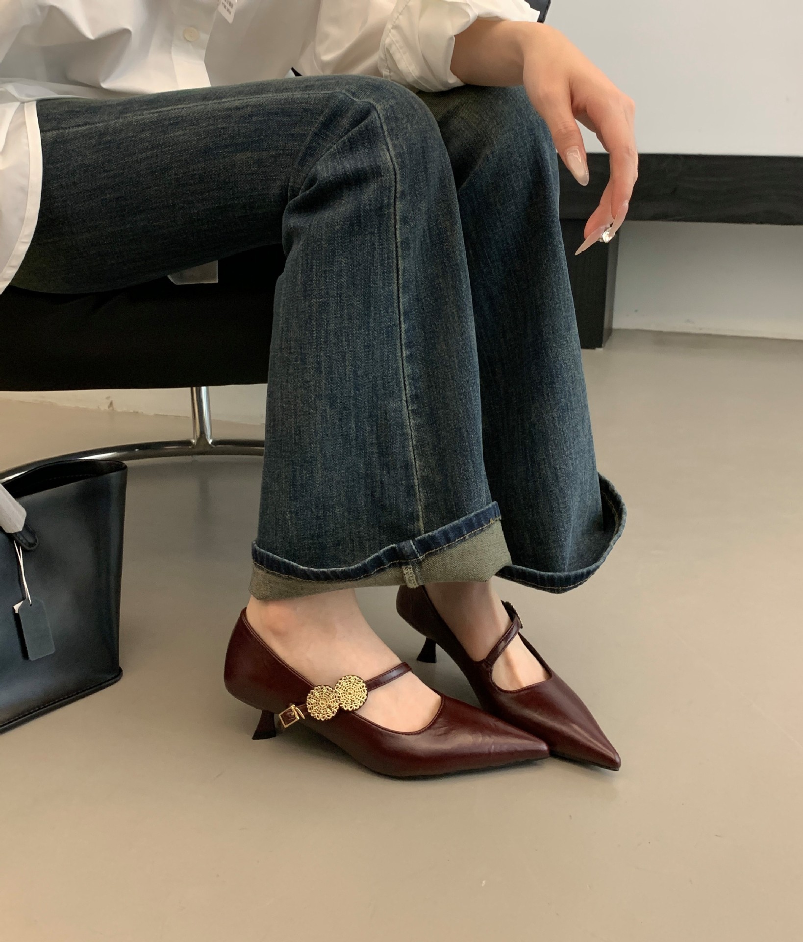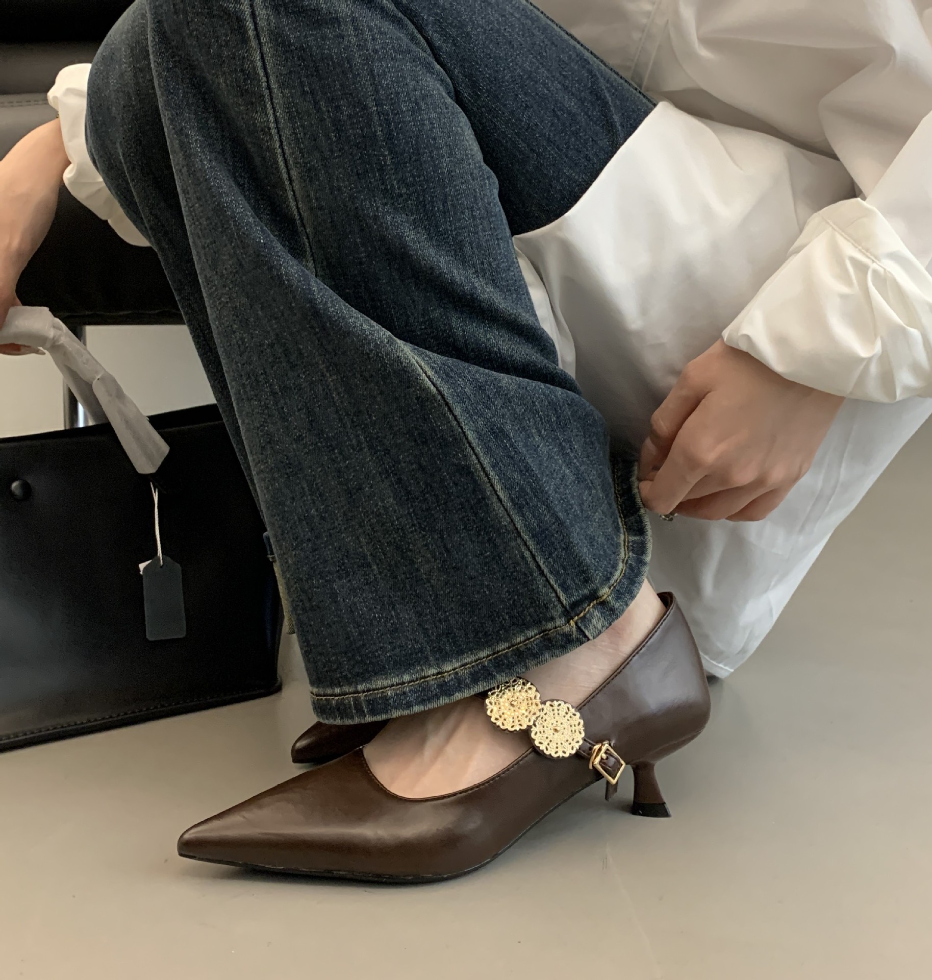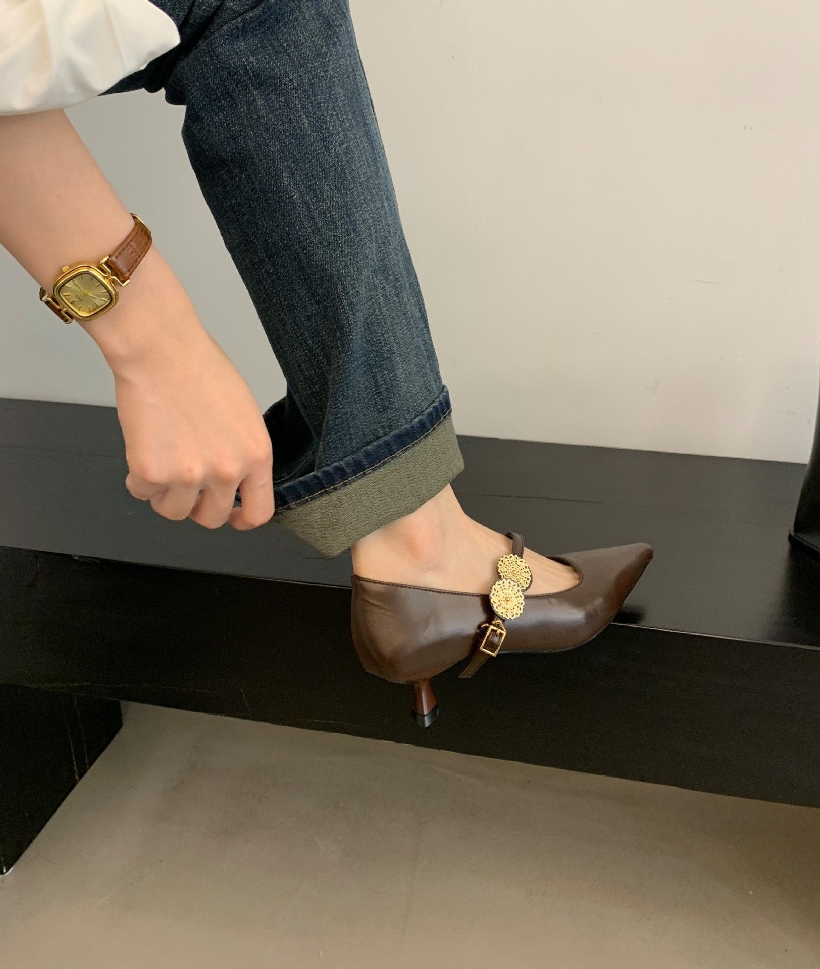 작은 향기로운 스타일 메리 제인 얕은 입 싱글 레이어 신발 여성의 2025 가을 새로운 포인팅 늦은 저녁 스타일 플랫 하단 작은 가죽 신발