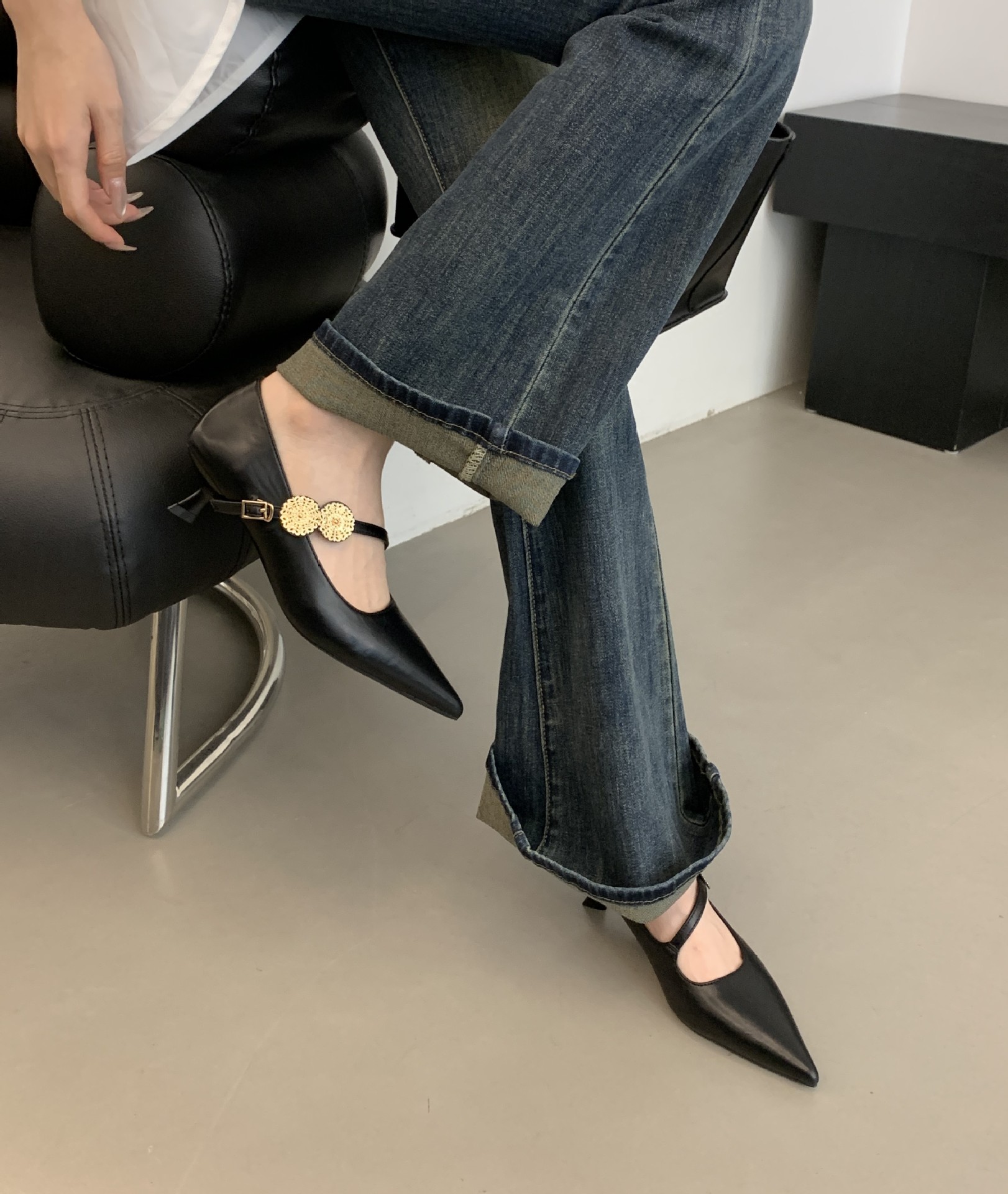 작은 향기로운 스타일 메리 제인 얕은 입 싱글 레이어 신발 여성의 2025 가을 새로운 포인팅 늦은 저녁 스타일 플랫 하단 작은 가죽 신발스토어 가기