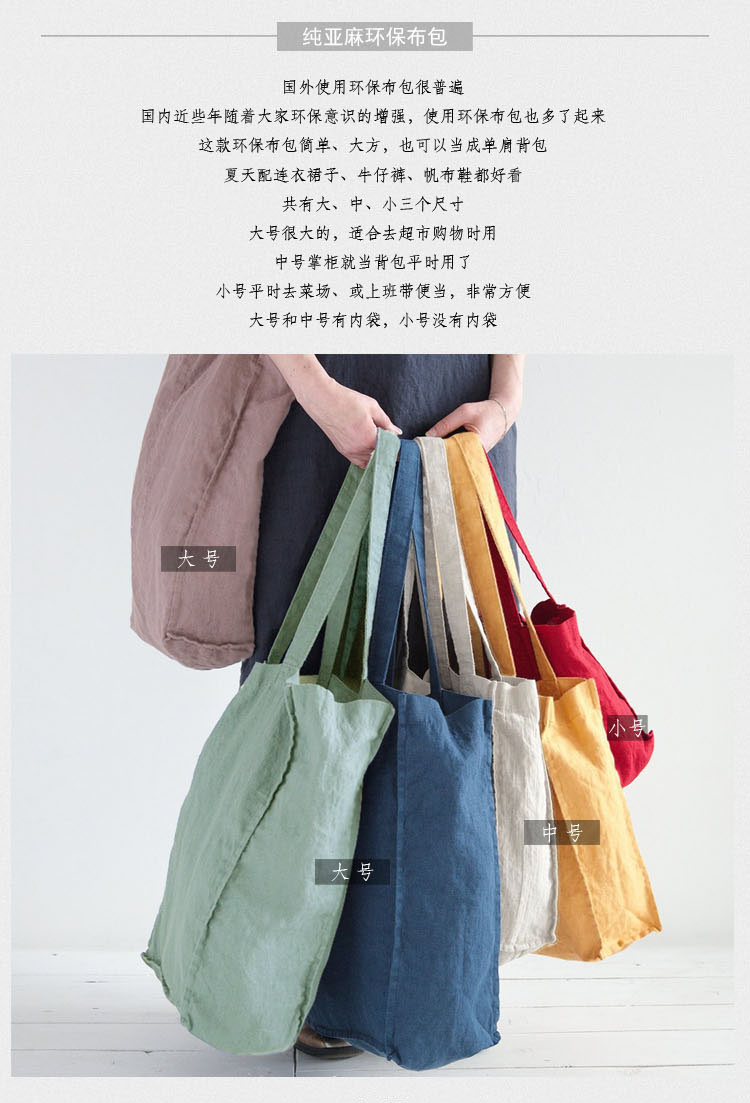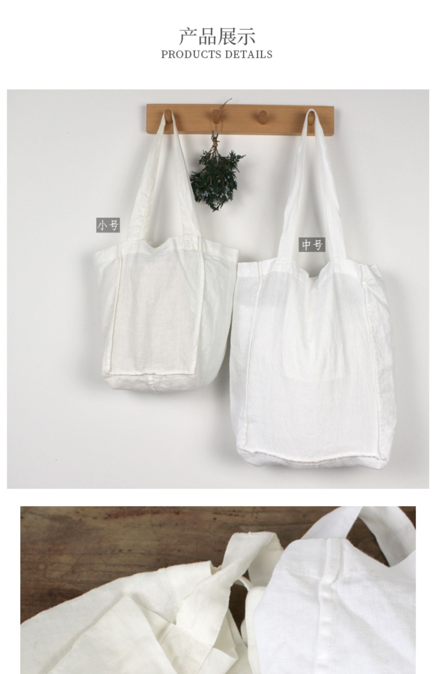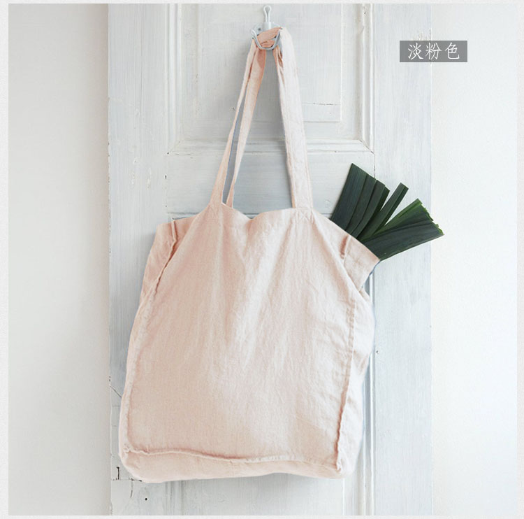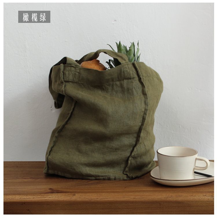 M & Suma Yuxiang 간단한 리넨 어깨 쇼핑백 솔리드 컬러 레트로 대용량 휴대용 리넨 가방스토어 가기