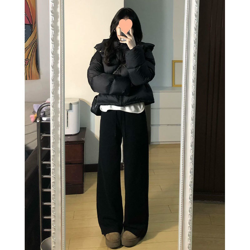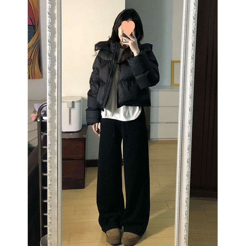 한국식 플러스 사이즈 블랙 세로 칼라면 패딩 코트 여자 겨울 루즈 캐주얼 올매치 코튼 패딩 코트 아카데믹 스타일 하이 엔드 빵 세트