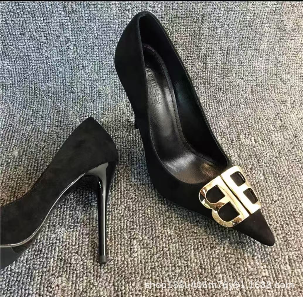 【재고 있음】호피 무늬 하이힐 여성용 가을 겨울 신상 레터 메탈 더블 B 버클 우아한 스틸레토 뾰족코 구두스토어 가기