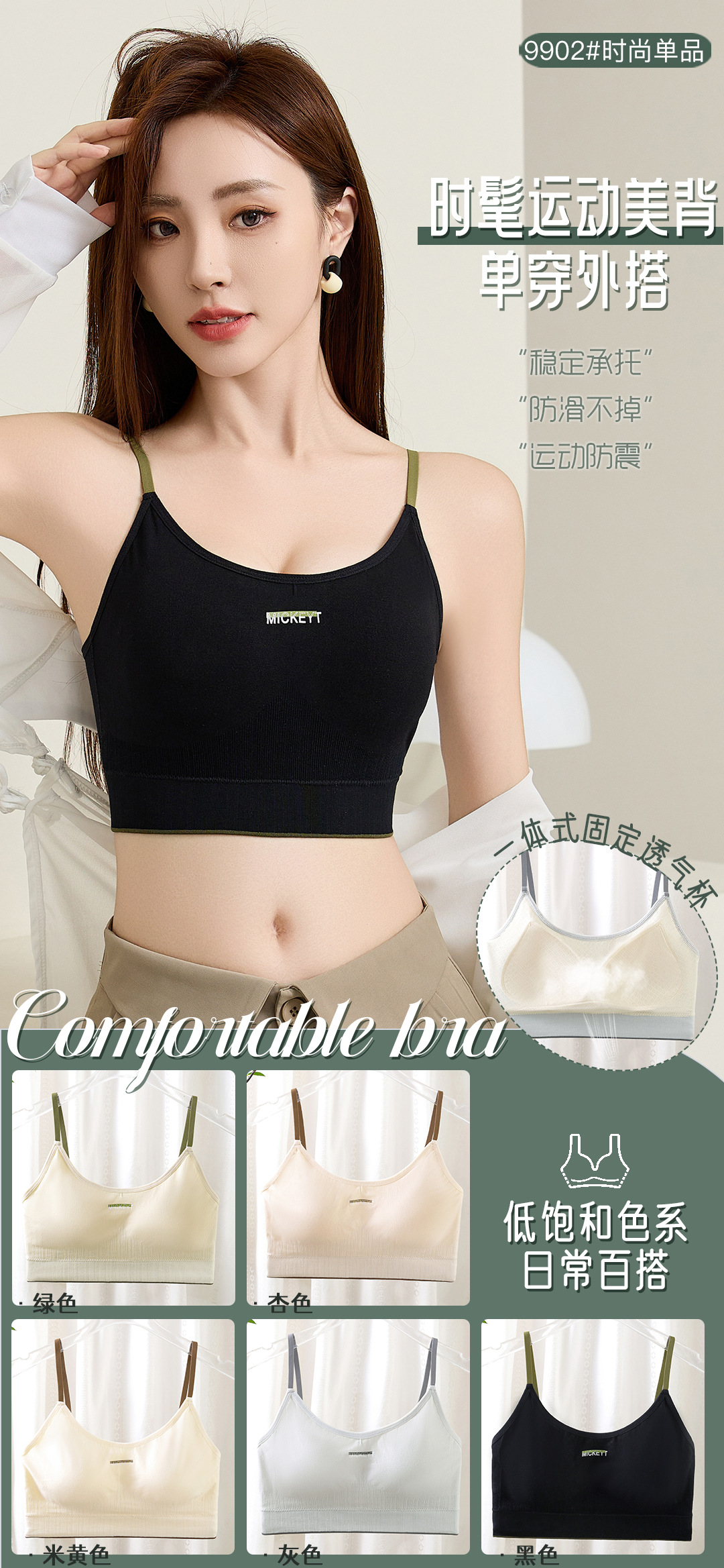 원피스 통기성 고정 컵 스틸 링없이 조정 가능한 편안한 아름다운 백 속옷 브래지어 스포츠 스타일 자연 부드러운스토어 가기
