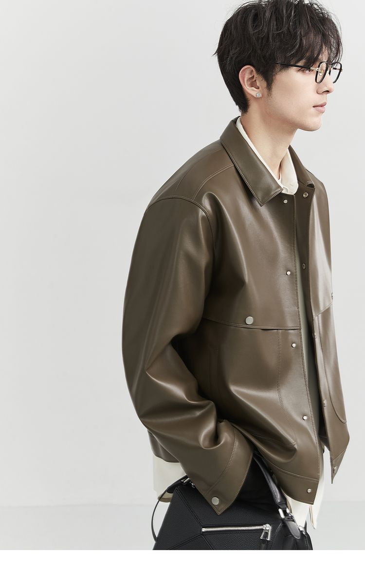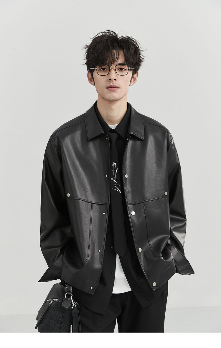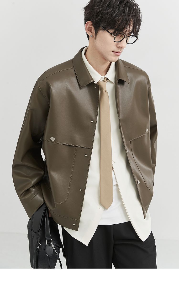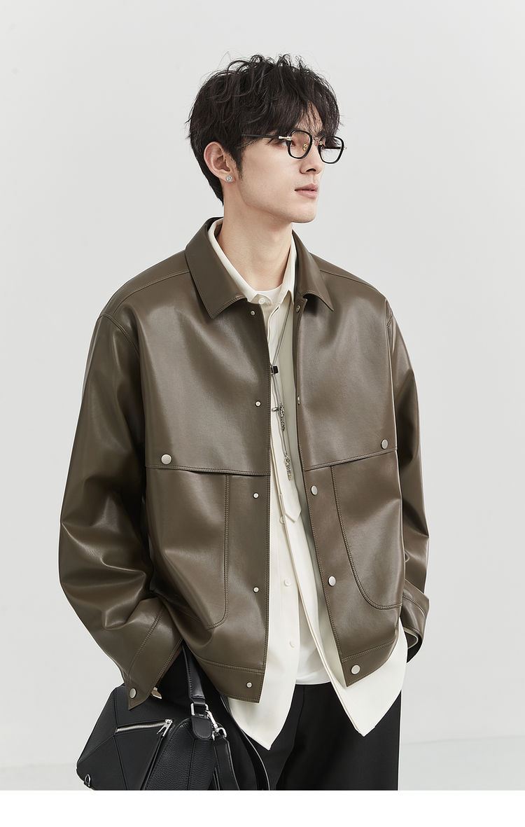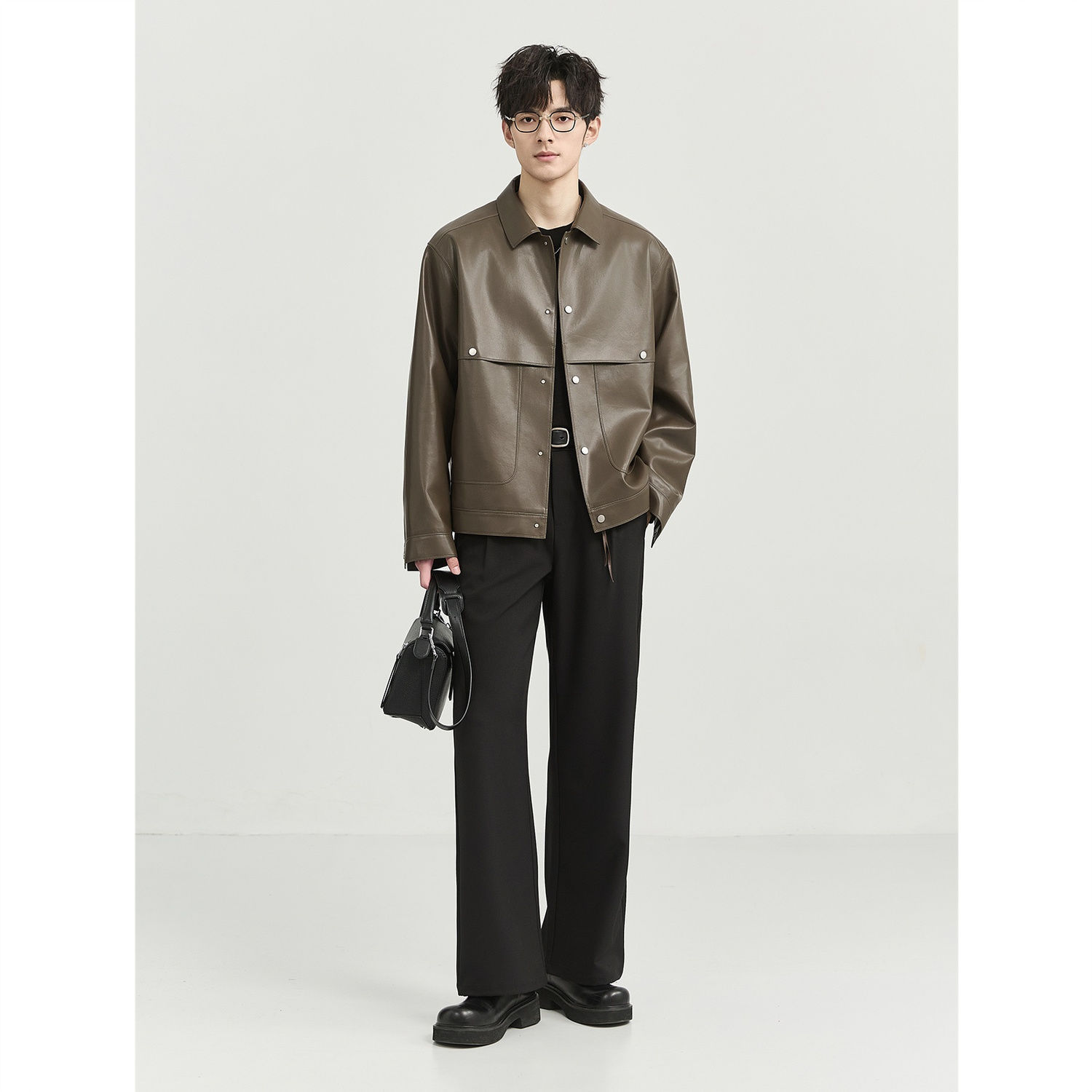 가죽 2024 가을 새로운 높은 PU 가죽 자켓 짧은 오토바이 캐주얼 최고 유행 패션 자켓 남자