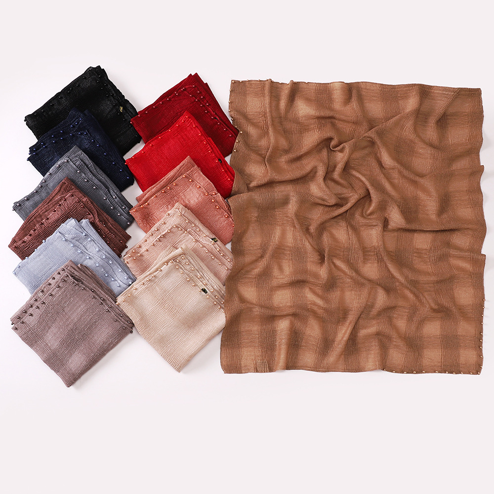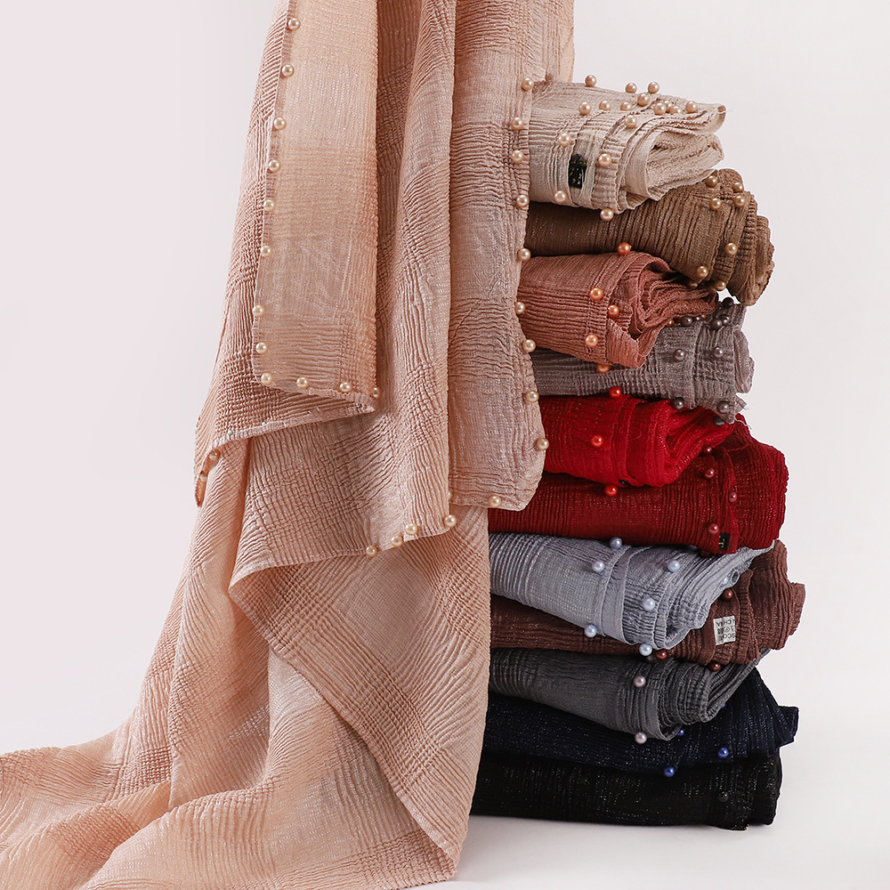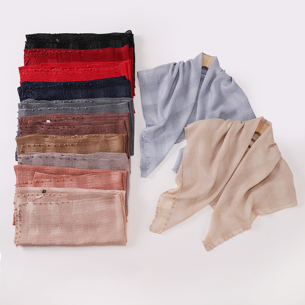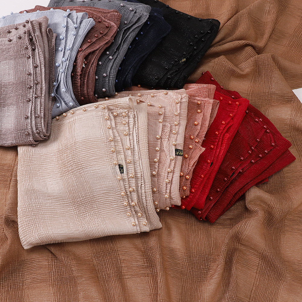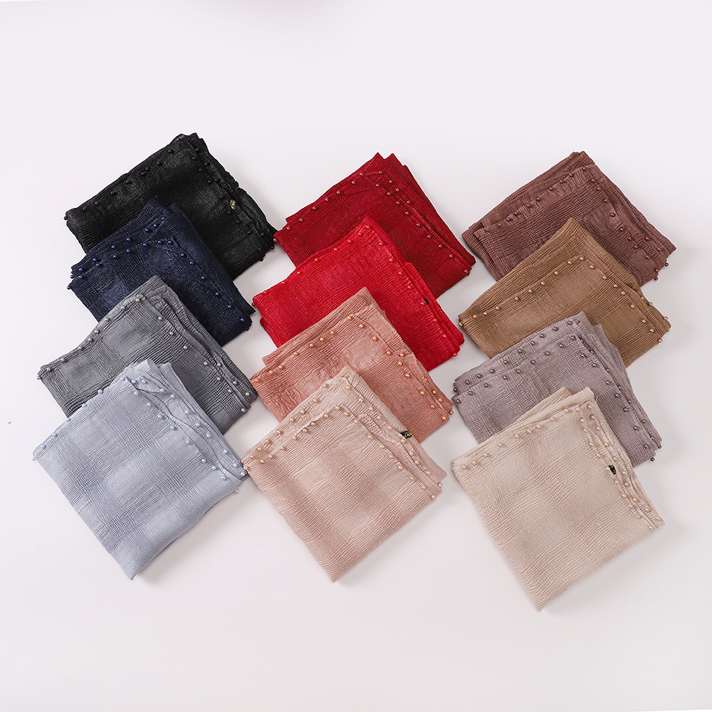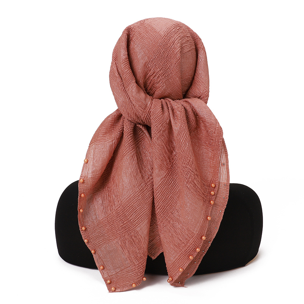 새로운 말레이시아 광장 스카프 구겨진 손톱 진주 테이프 인도네시아 포장 스카프스토어 가기