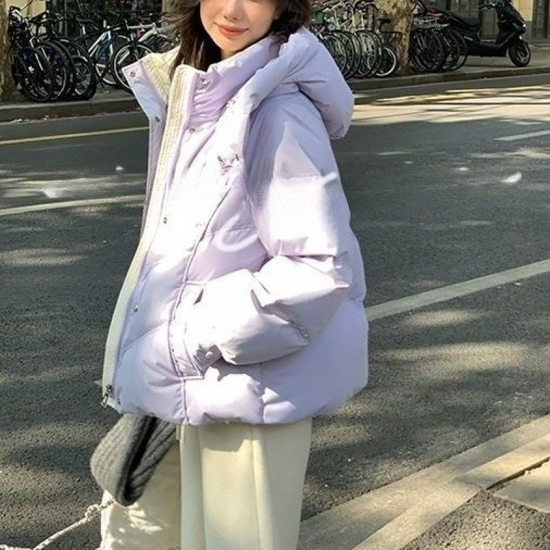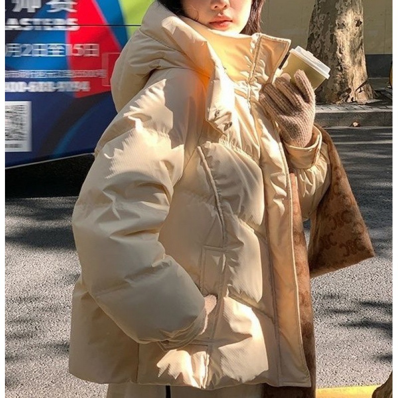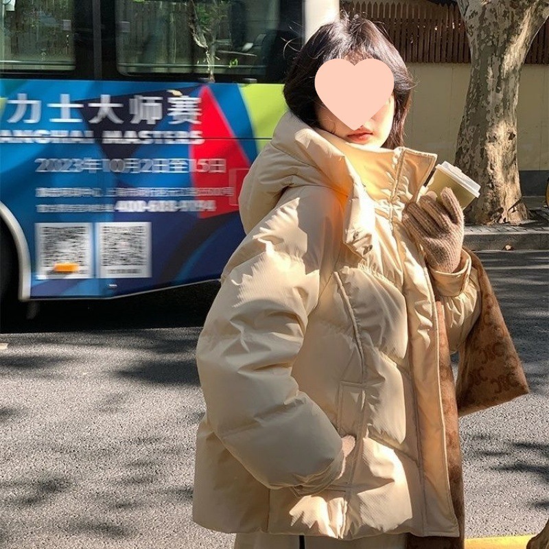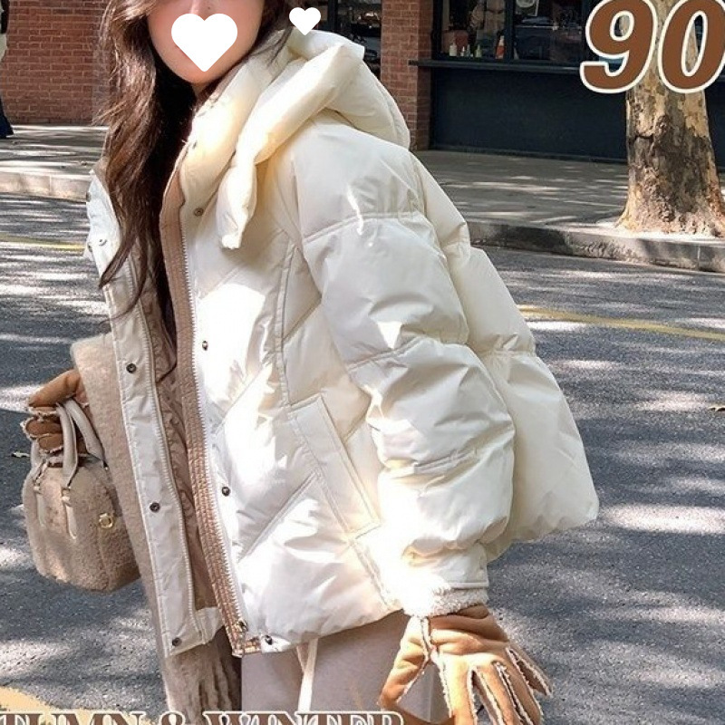 다운 코튼 패딩 재킷 여성의 겨울 2024 새로운 짧은 작은 두꺼운 모조 흰색 오리 다운 하이 엔드 코트스토어 가기