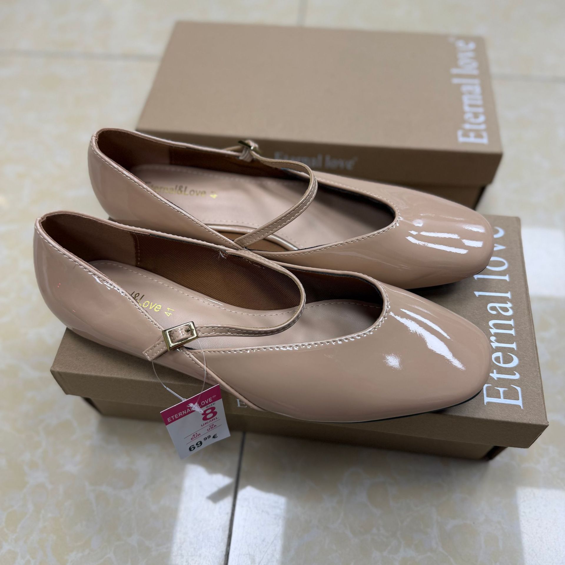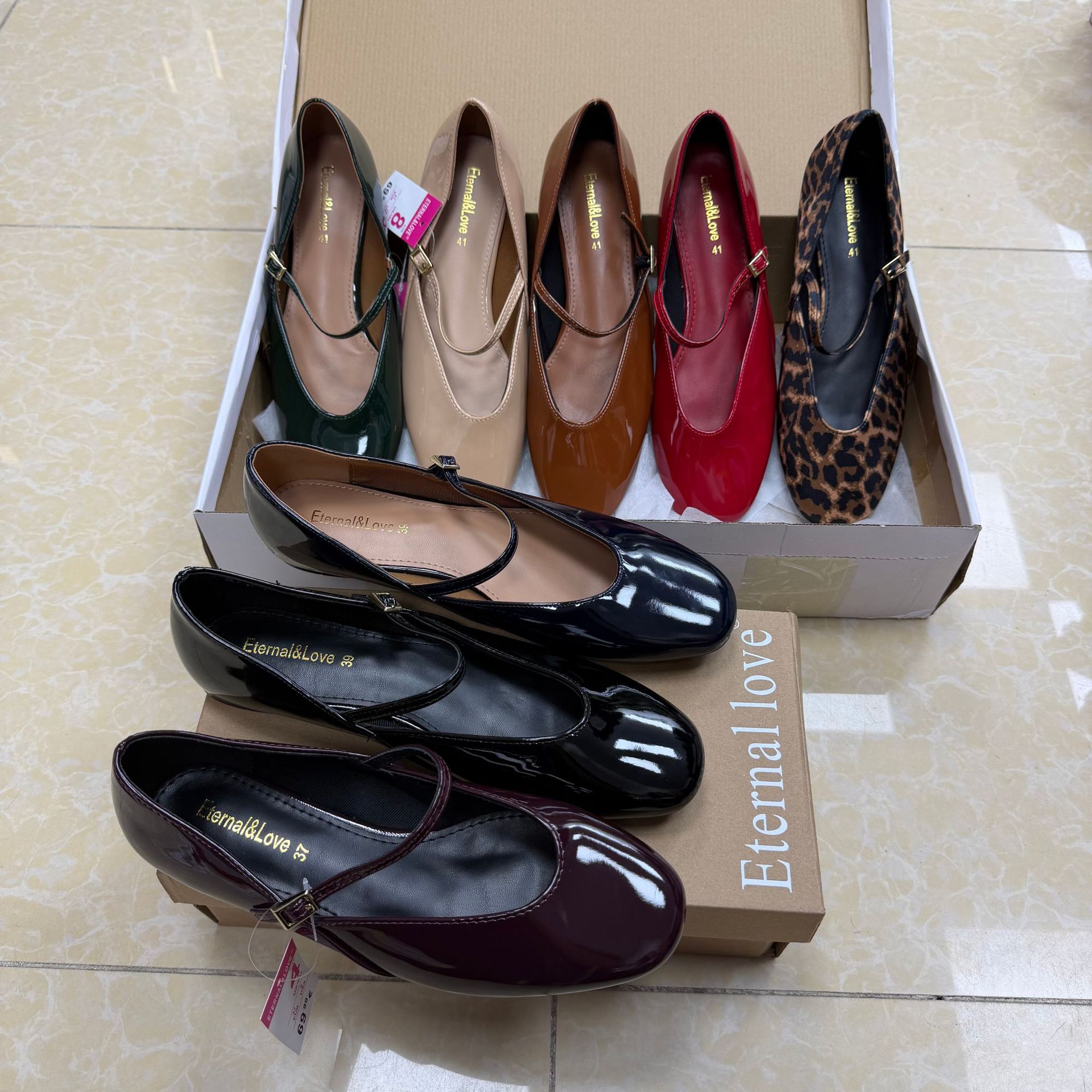여성을위한 새로운 라운드 토 로우 힐 트리 컬러 Mary Jane Shallow Mouth 스트랩 플랫 힐 샌들스토어 가기