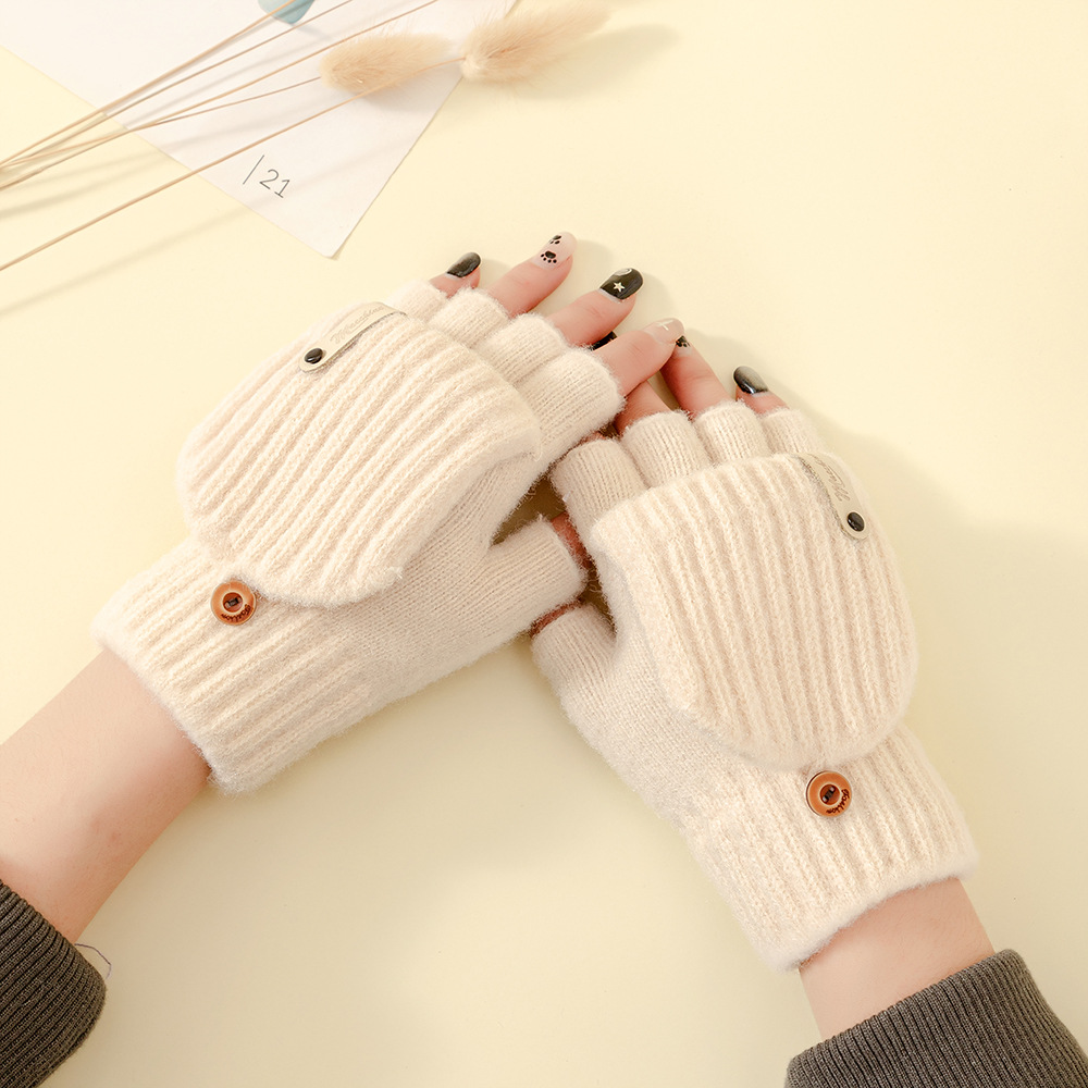 하프 핑거 플립 따뜻한 장갑 가을과 겨울 학생 니트 봉제 라인 야외 사이클링 감기 방지 새 커플 쓰기