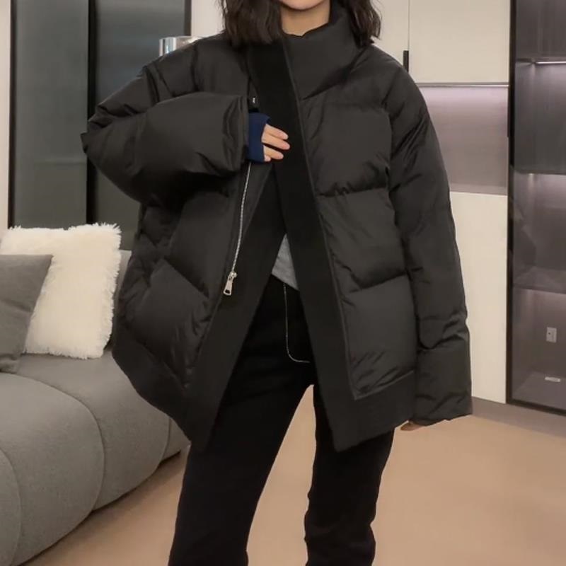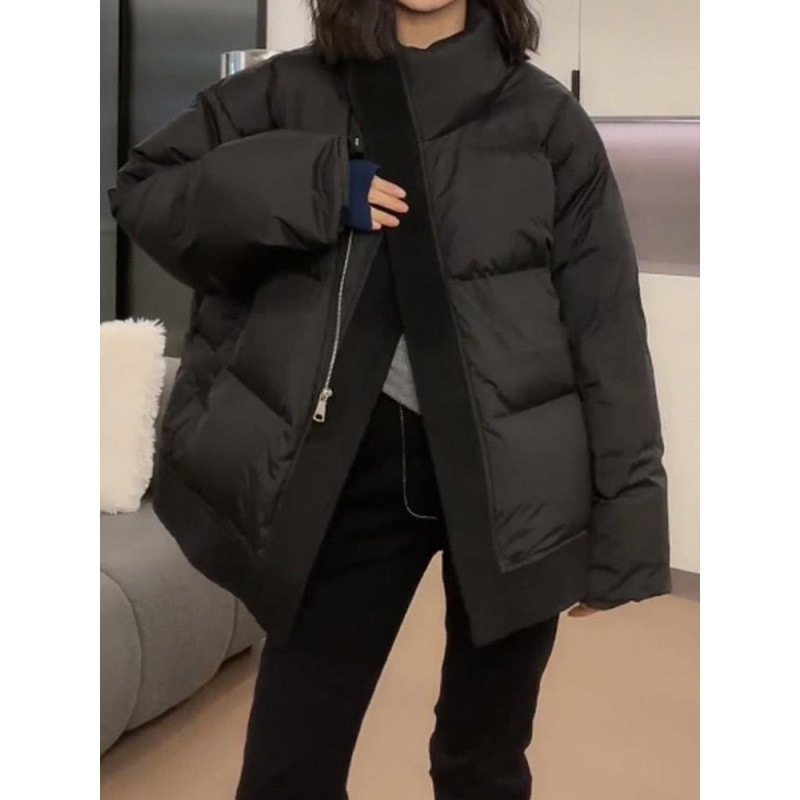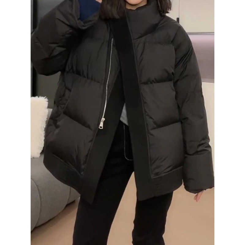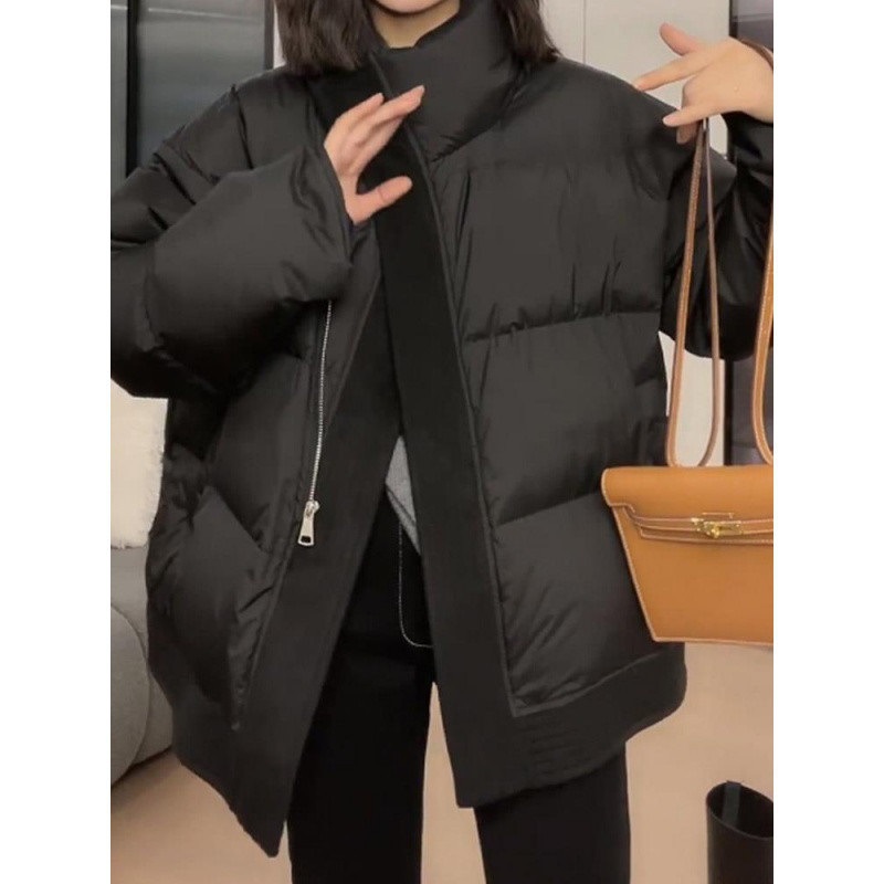 2024 겨울 새 다운 코튼 패딩 재킷 스탠드 칼라 비스듬한 지퍼 사교계 기질 어깨 모조 오리 다운 재킷 버전스토어 가기