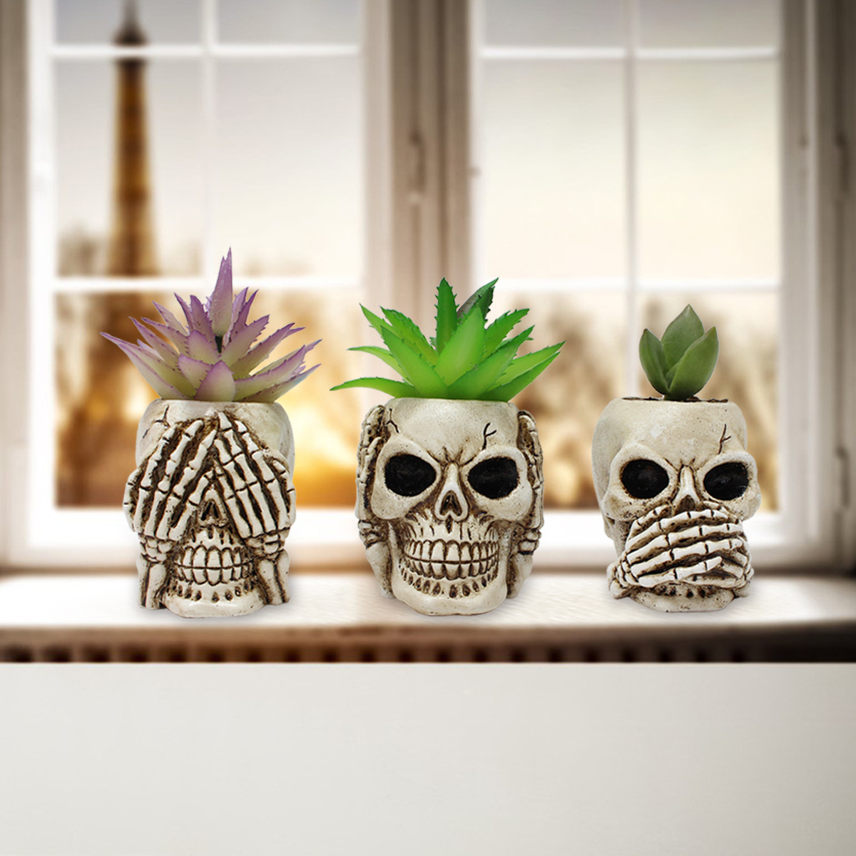 국경 간 신제품 유령 머리 꽃 냄비 세트 세 수지 공예 정원 DIY 장식 할로윈 휴일 장식