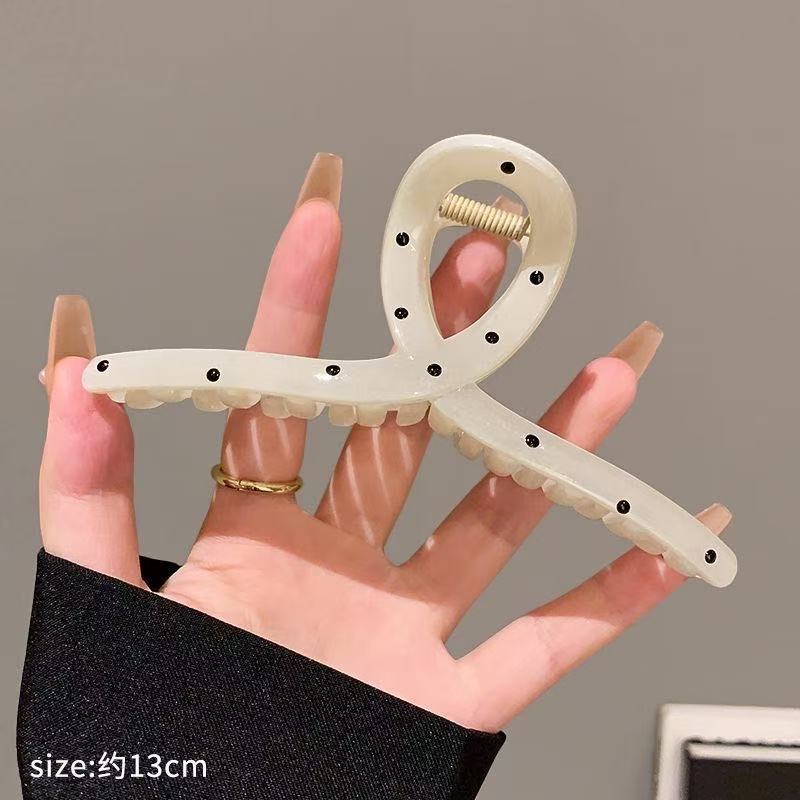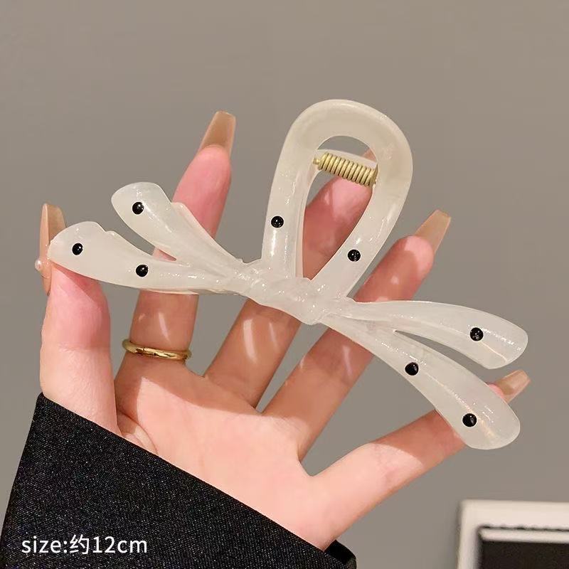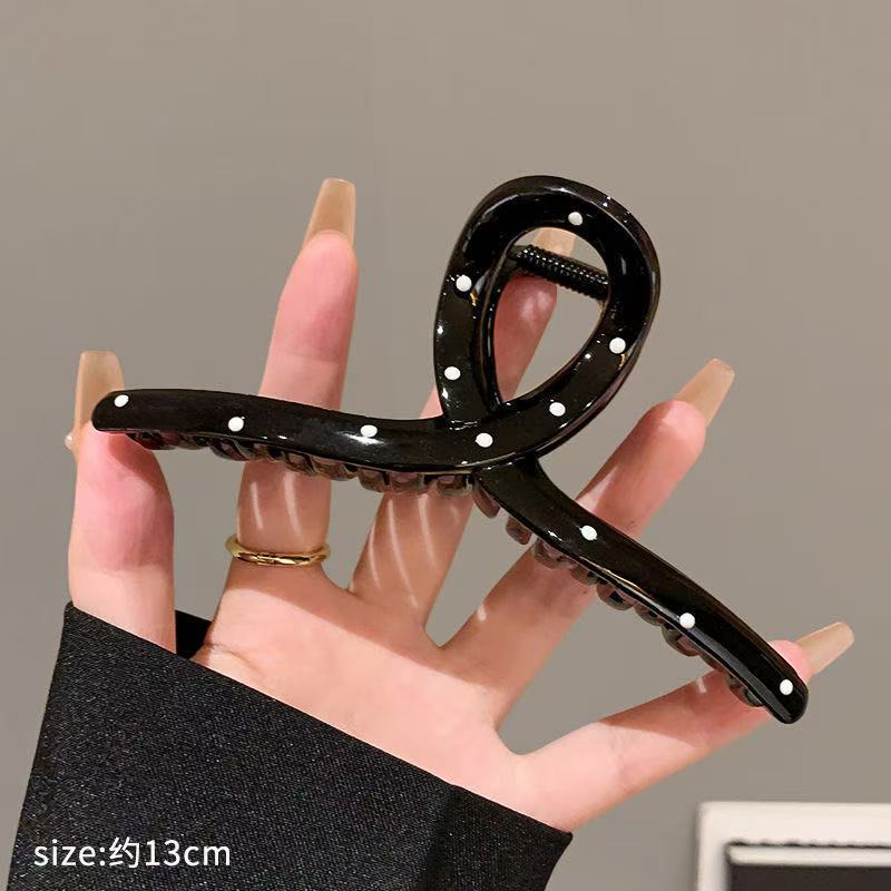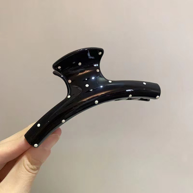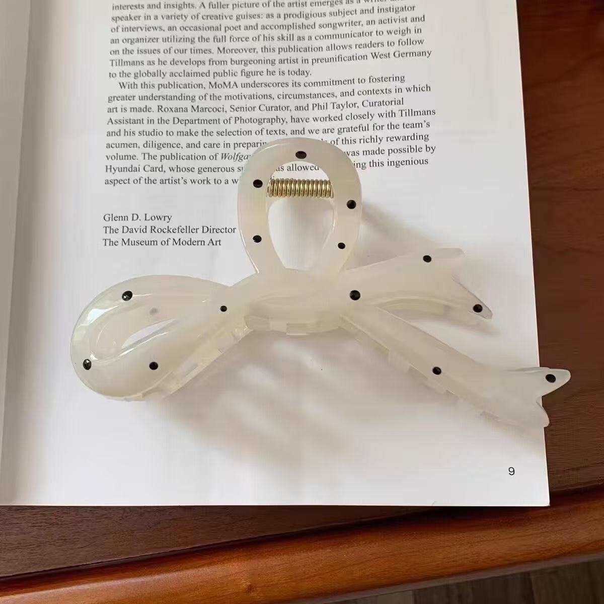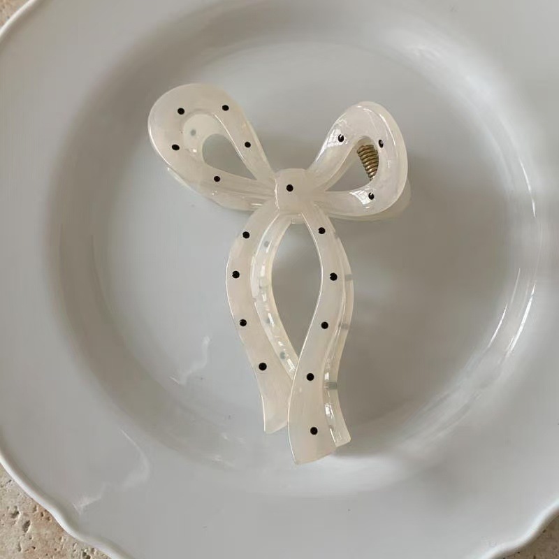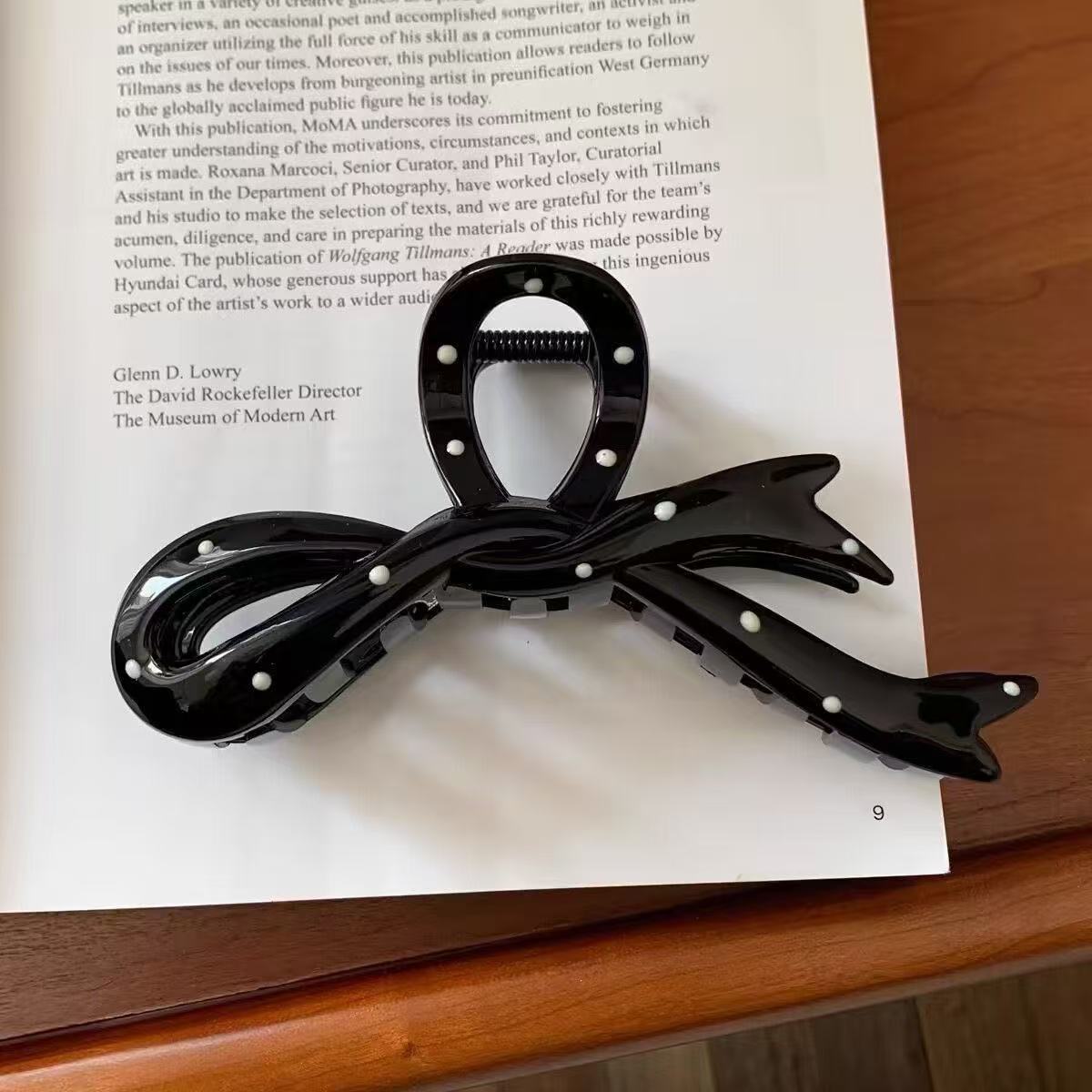 흑백 도트 보우 그랩 클립 여성 하이 엔드 올 매치 백 헤드 헤어 비추 헤어 클로 라이트 럭셔리 상어 클립