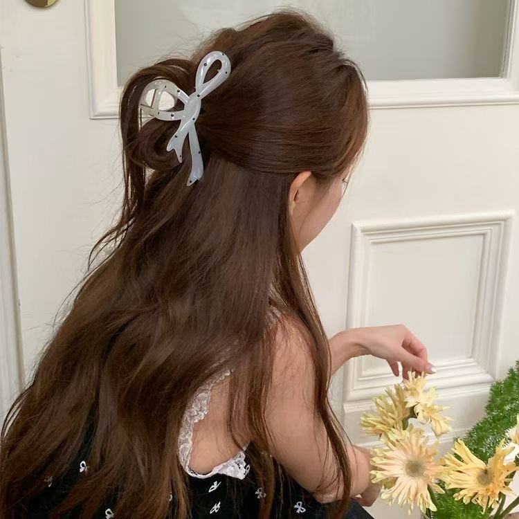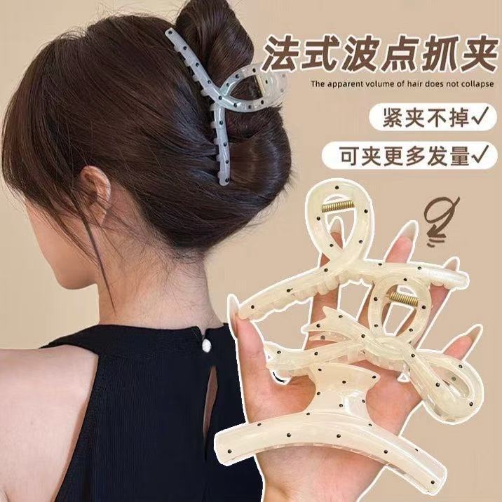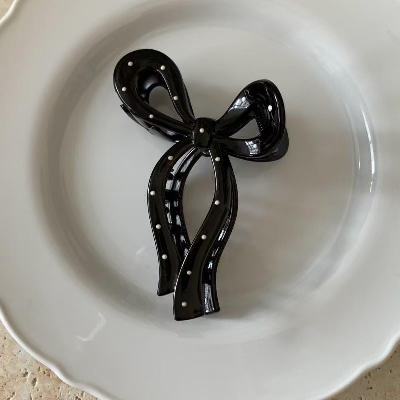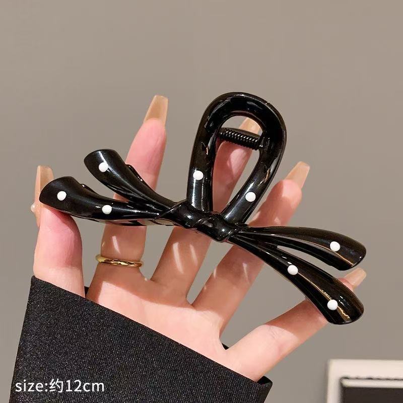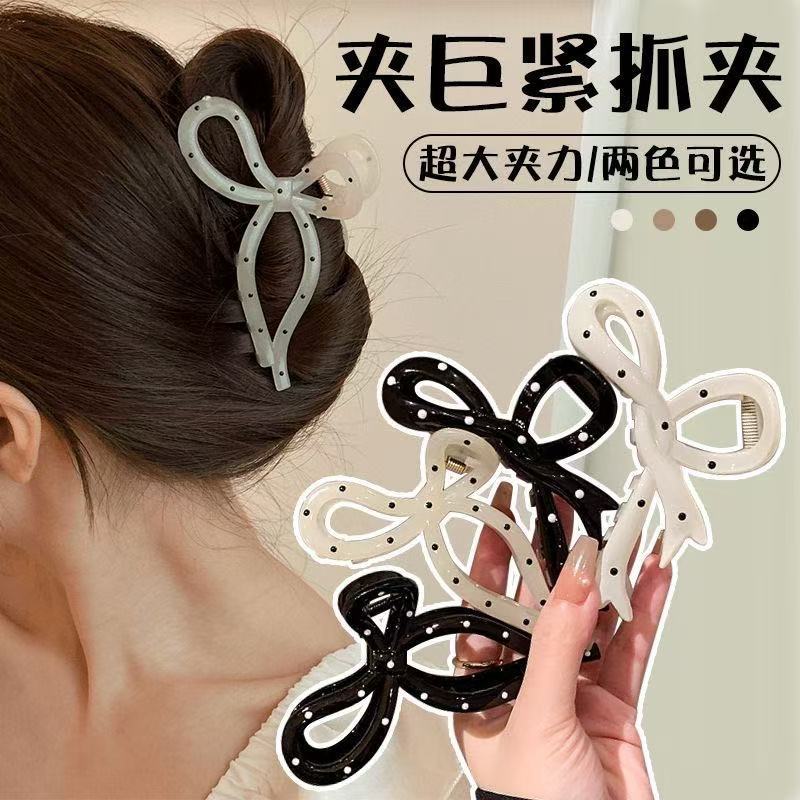 흑백 도트 보우 그랩 클립 여성 하이 엔드 올 매치 백 헤드 헤어 비추 헤어 클로 라이트 럭셔리 상어 클립스토어 가기
