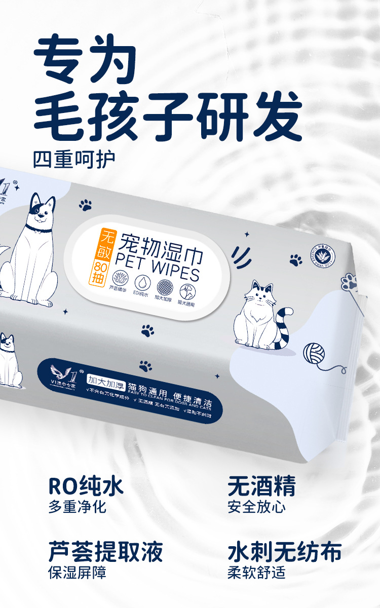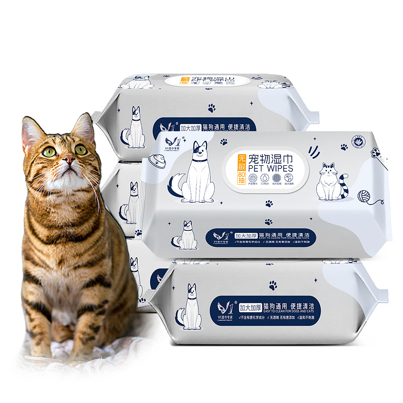 고양이와 강아지 전용 눈물자국 제거용, 가정용, 세척 불필요, 초강력 탈취 물티슈 80매 대용량